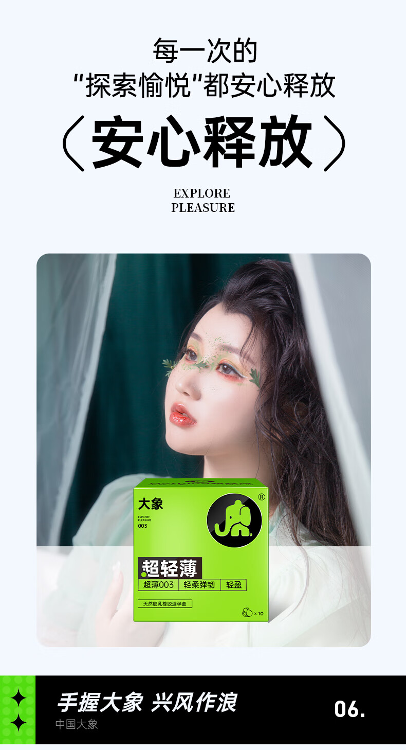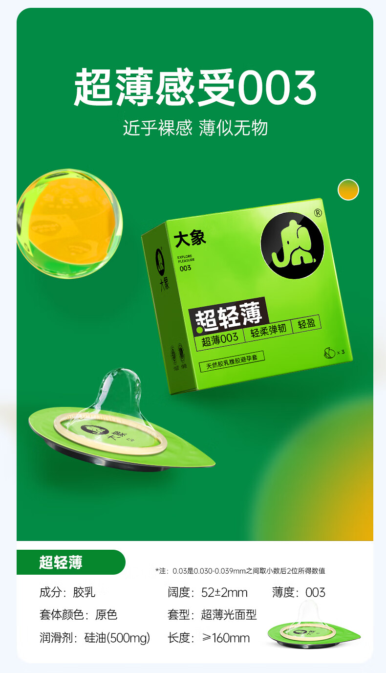【年末亏本清仓】大象 爆款绿nothing003系列超润薄款 安全避孕套 1只装