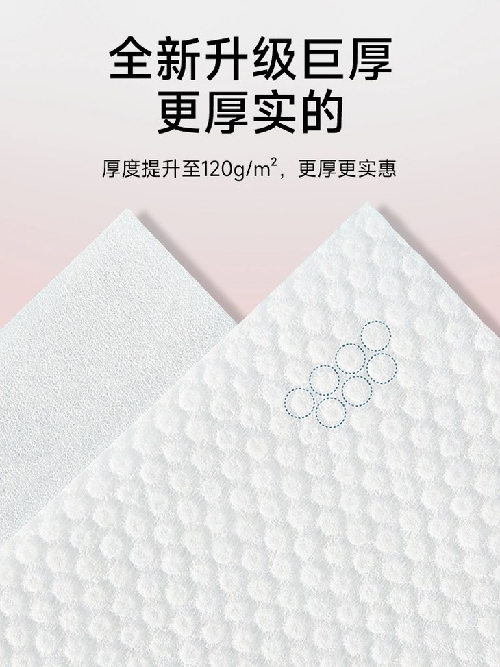 👑LADY MAY全棉大颗粒卷式洗脸巾 👍双面设计,双重呵护【A面丝滑面,B面珍珠纹】 ✅一面清洁一面护肤,一巾双效,方便清洁 💥厚度提升至120g/m,更厚更实惠 💕不含荧光剂,0添加,敏感肌也能放心用 💎全棉材质遇水后不易破,干用湿用,怎么用都行