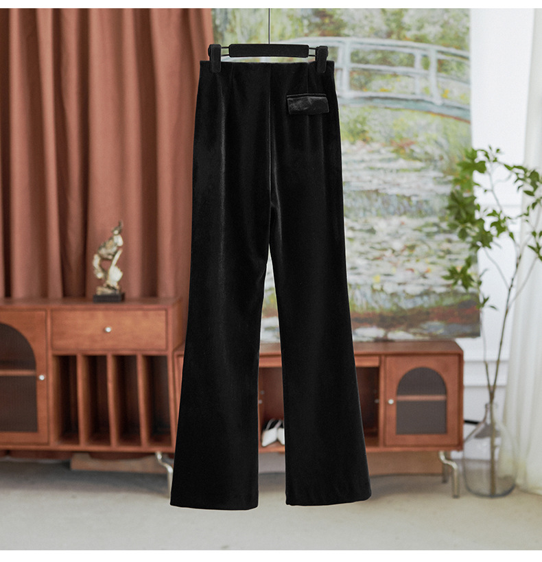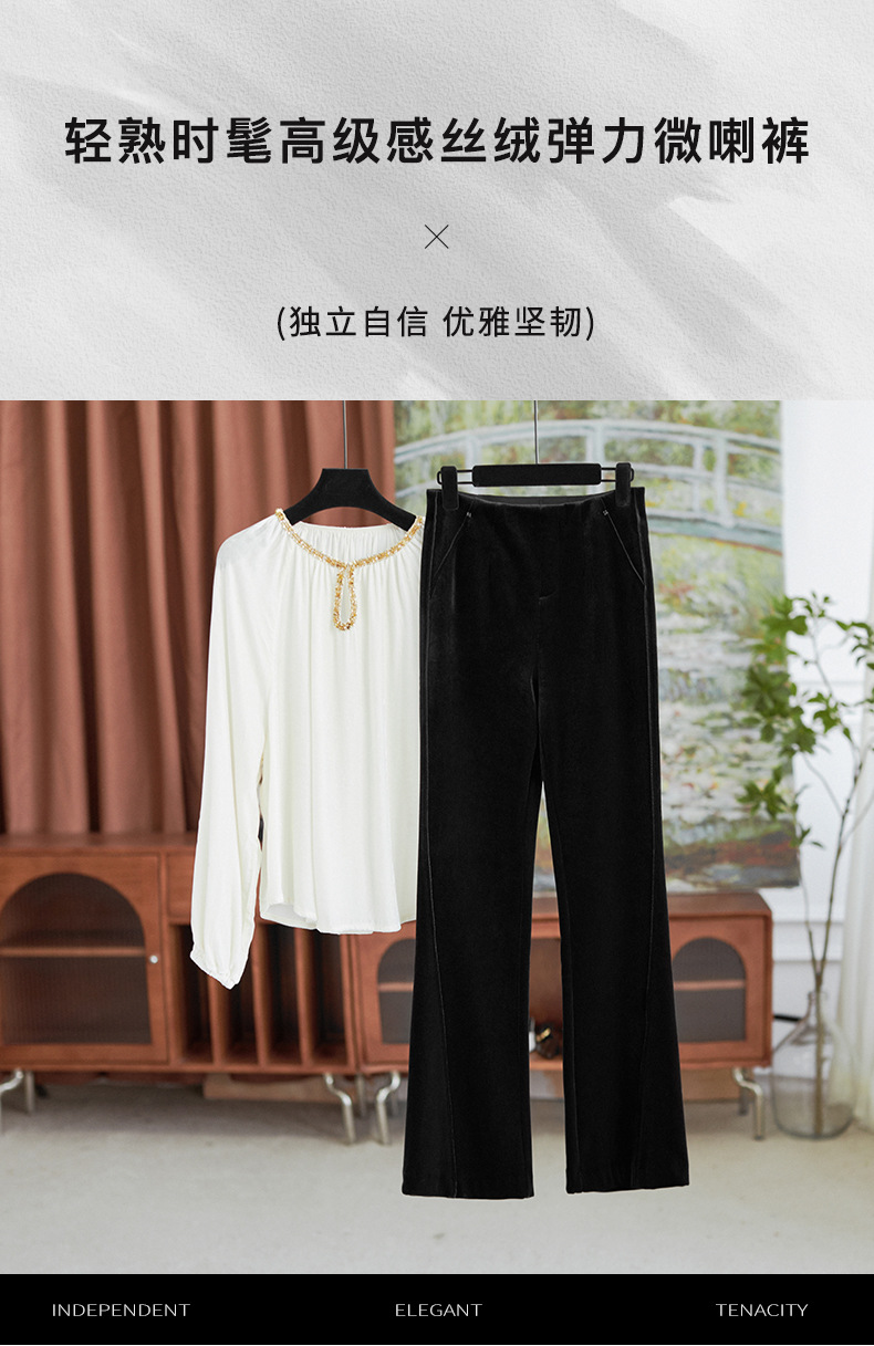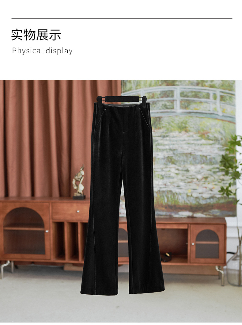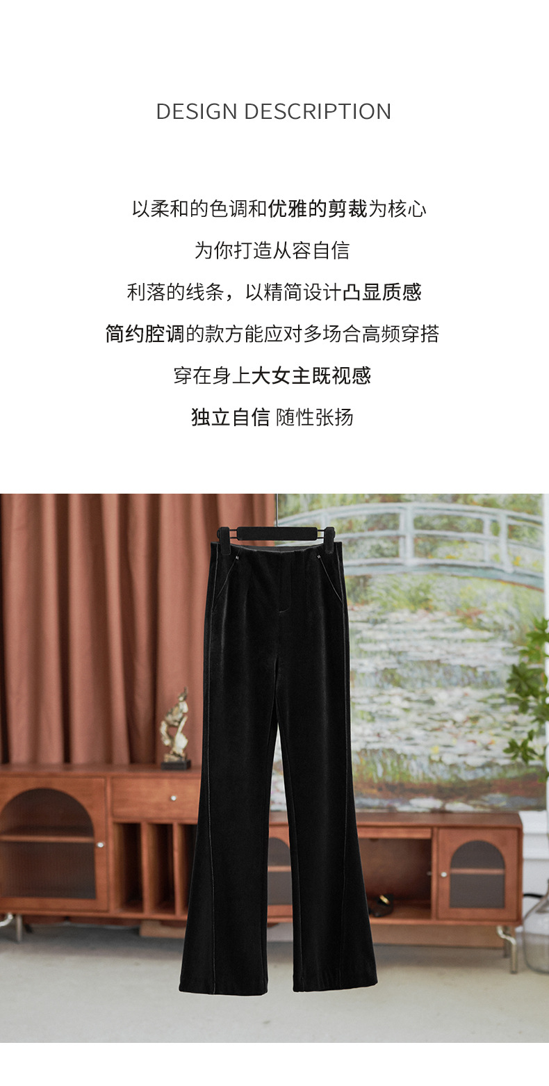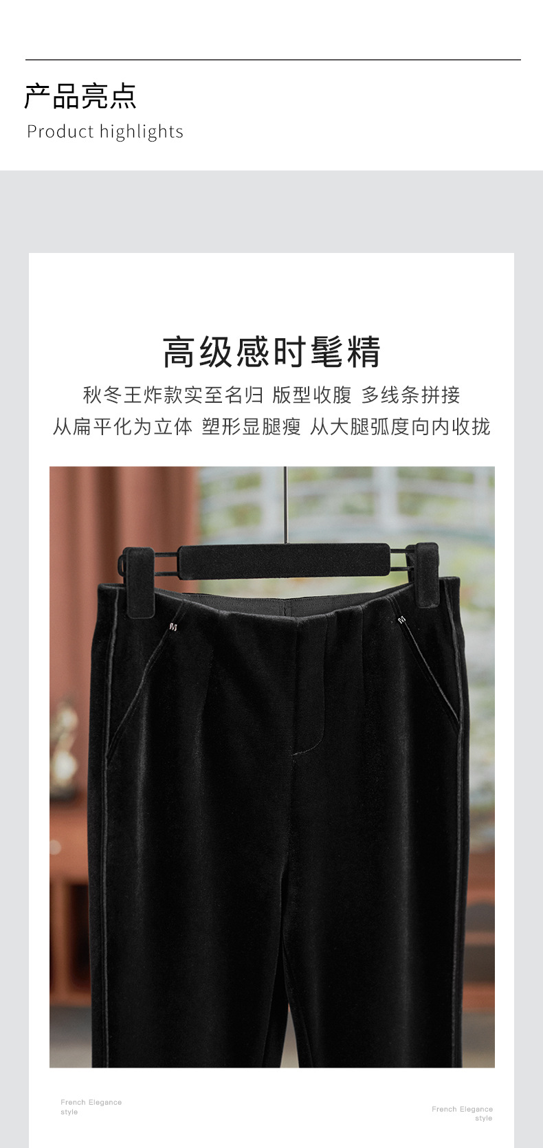 【高货wl】全新升级【铂金会员257/天猫349/差价92】(90419) 洛诗琳时尚休闲气质丝绒女长裤秋冬新款松紧腰加绒长裤