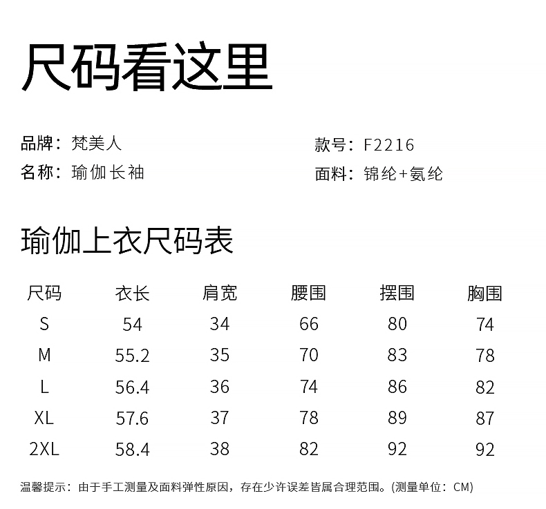 梵美人 F2216 瑜伽长袖 一体胸垫 金标莱卡 温暖棉感