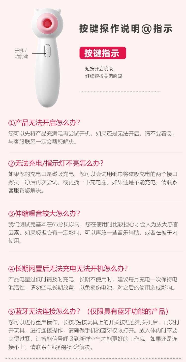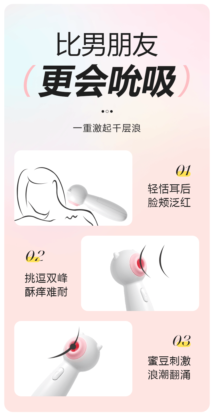 【前戏神器 新手推荐】谜姬 喵喵棒 白粉色 吮吸震动棒 自带2节电池