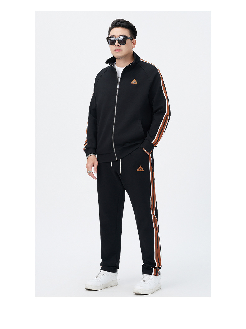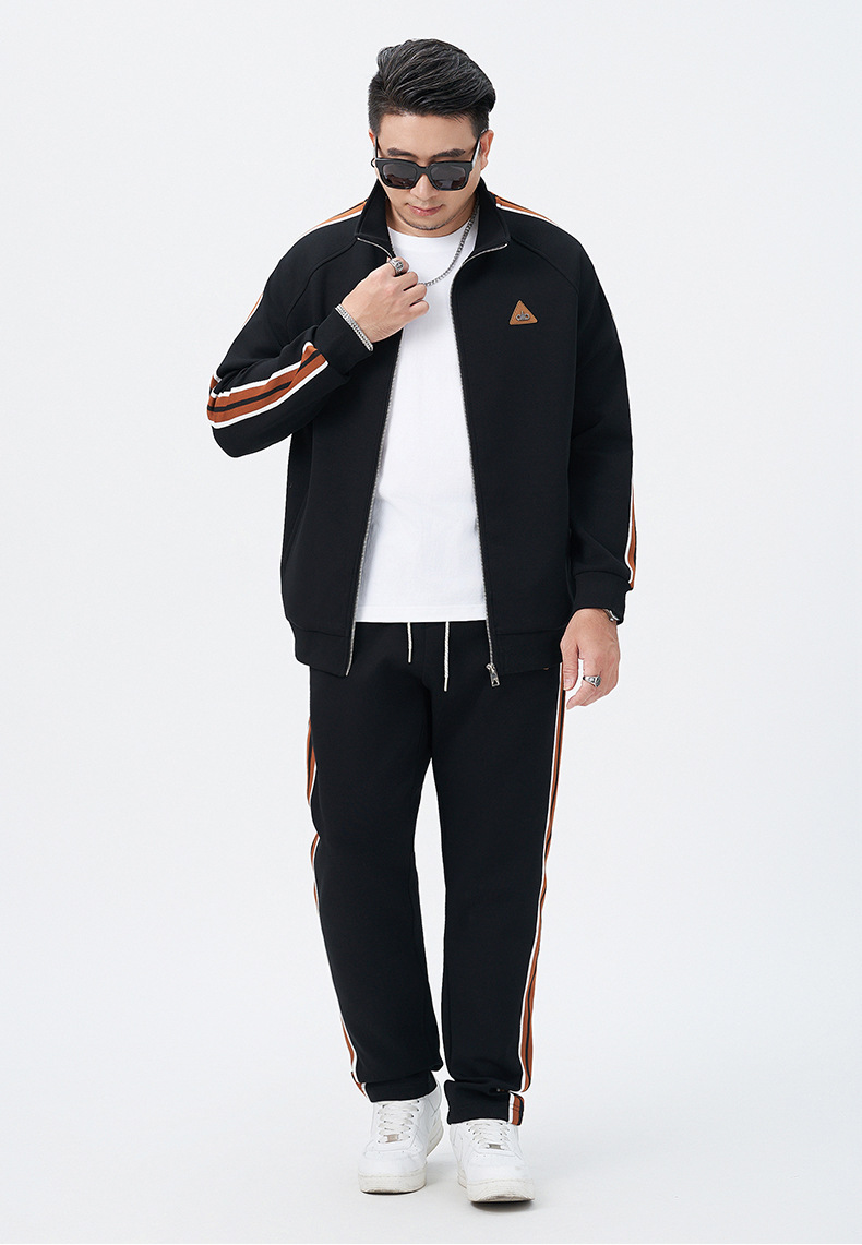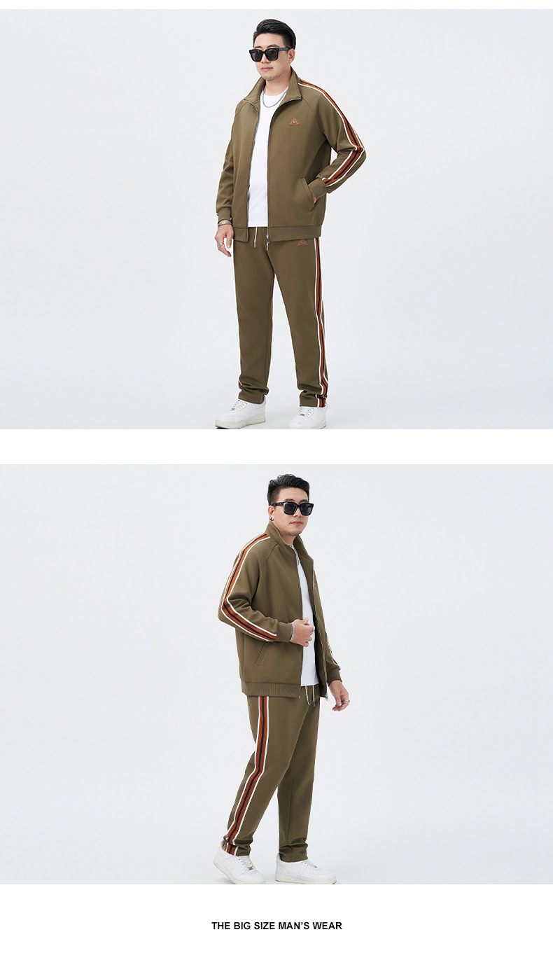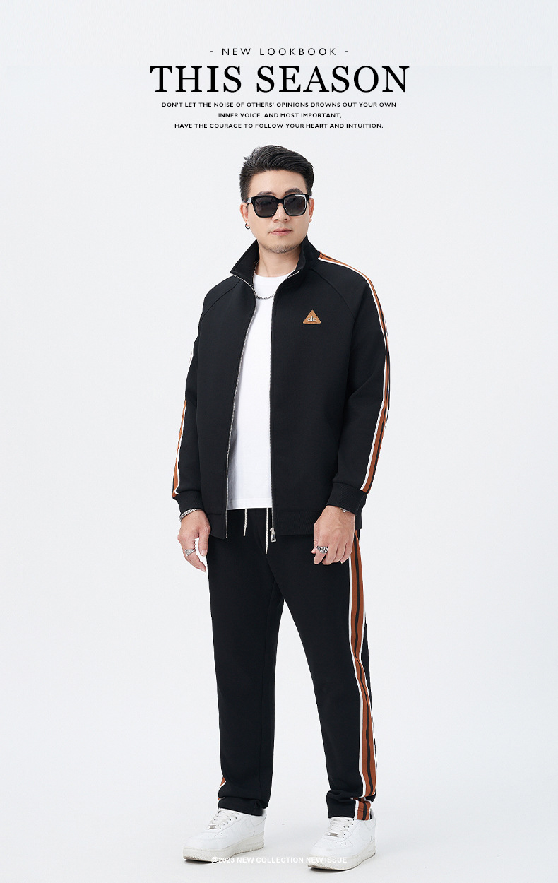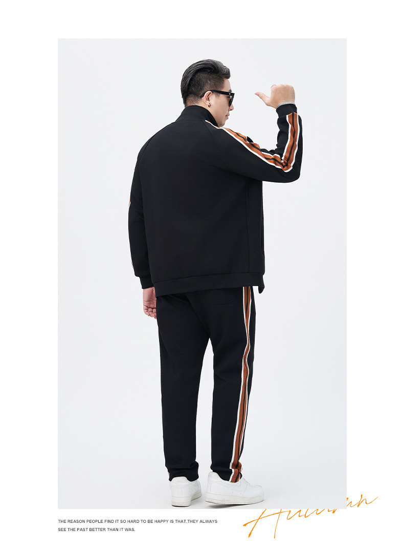 【DMH】大依优型大码男士开衫套装300斤秋季新款美式潮流开衫卫衣立领外套直筒长裤条纹宽松男式休闲套装300斤
