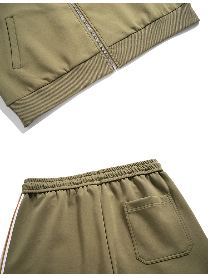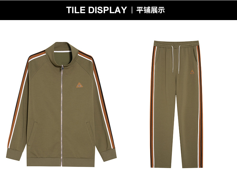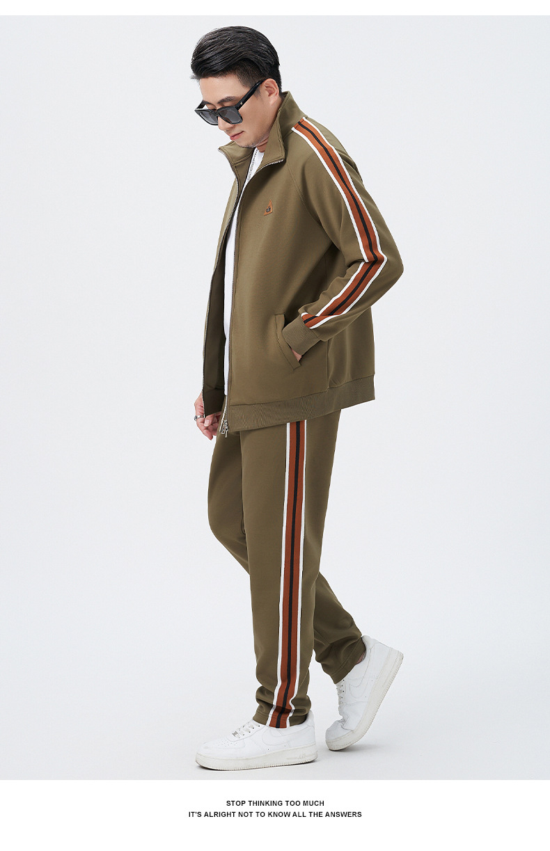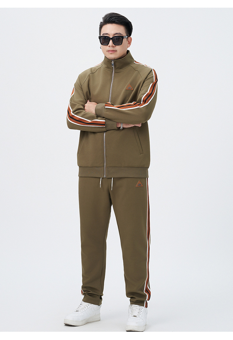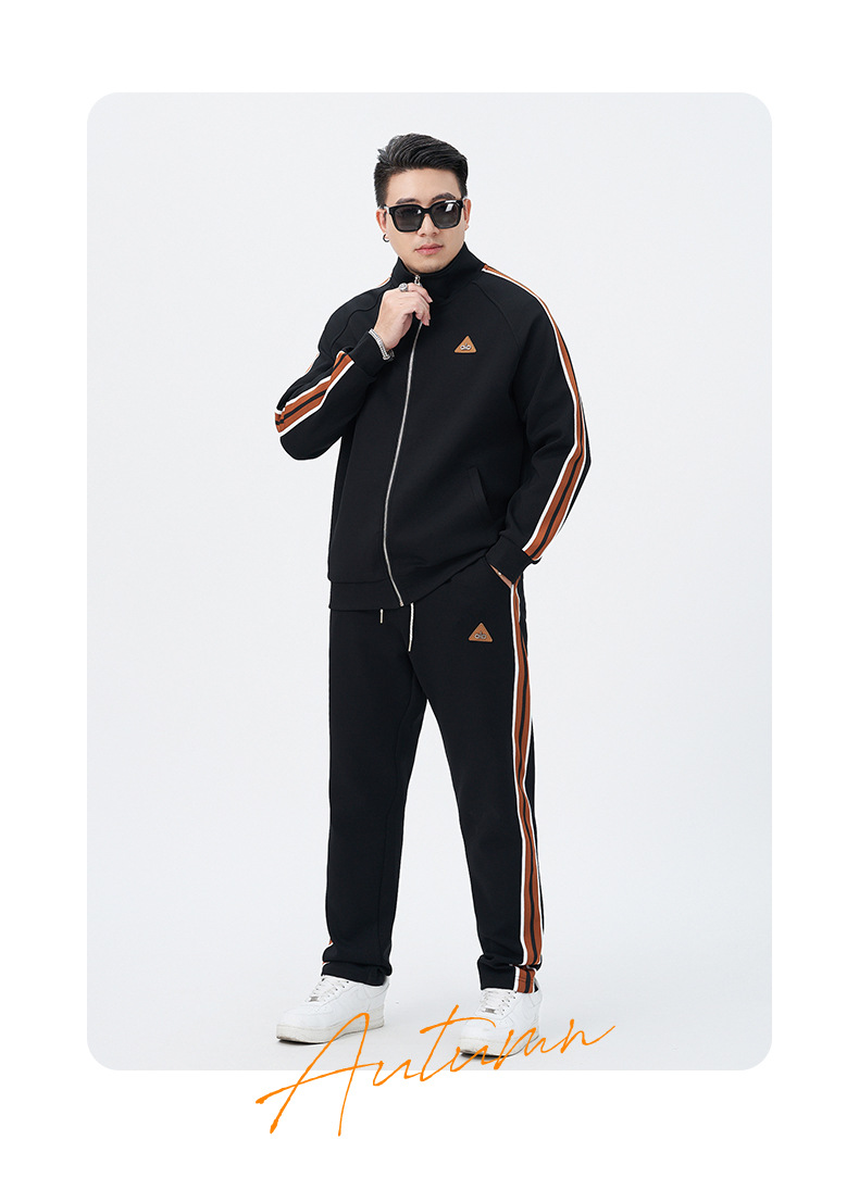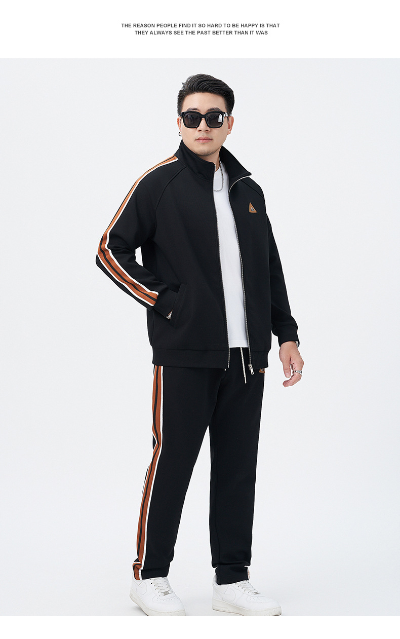 【DMH】大依优型大码男士开衫套装300斤秋季新款美式潮流开衫卫衣立领外套直筒长裤条纹宽松男式休闲套装300斤