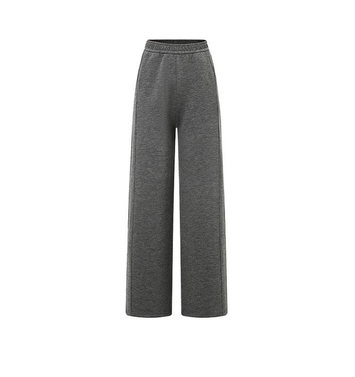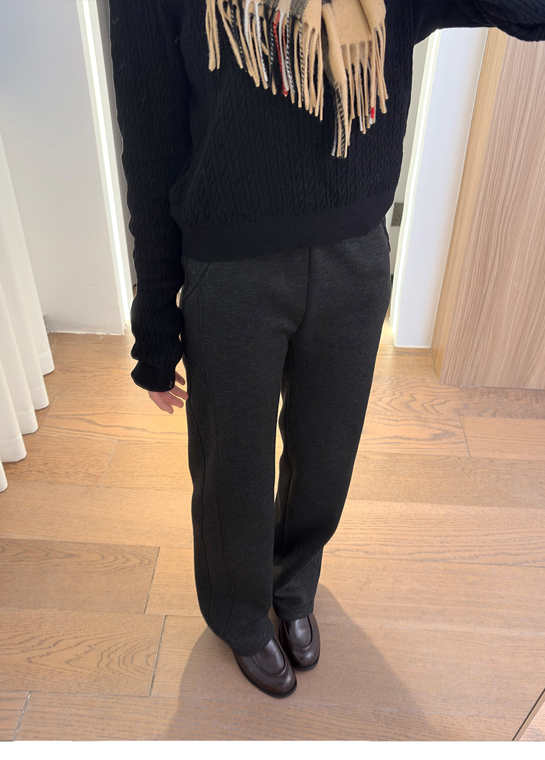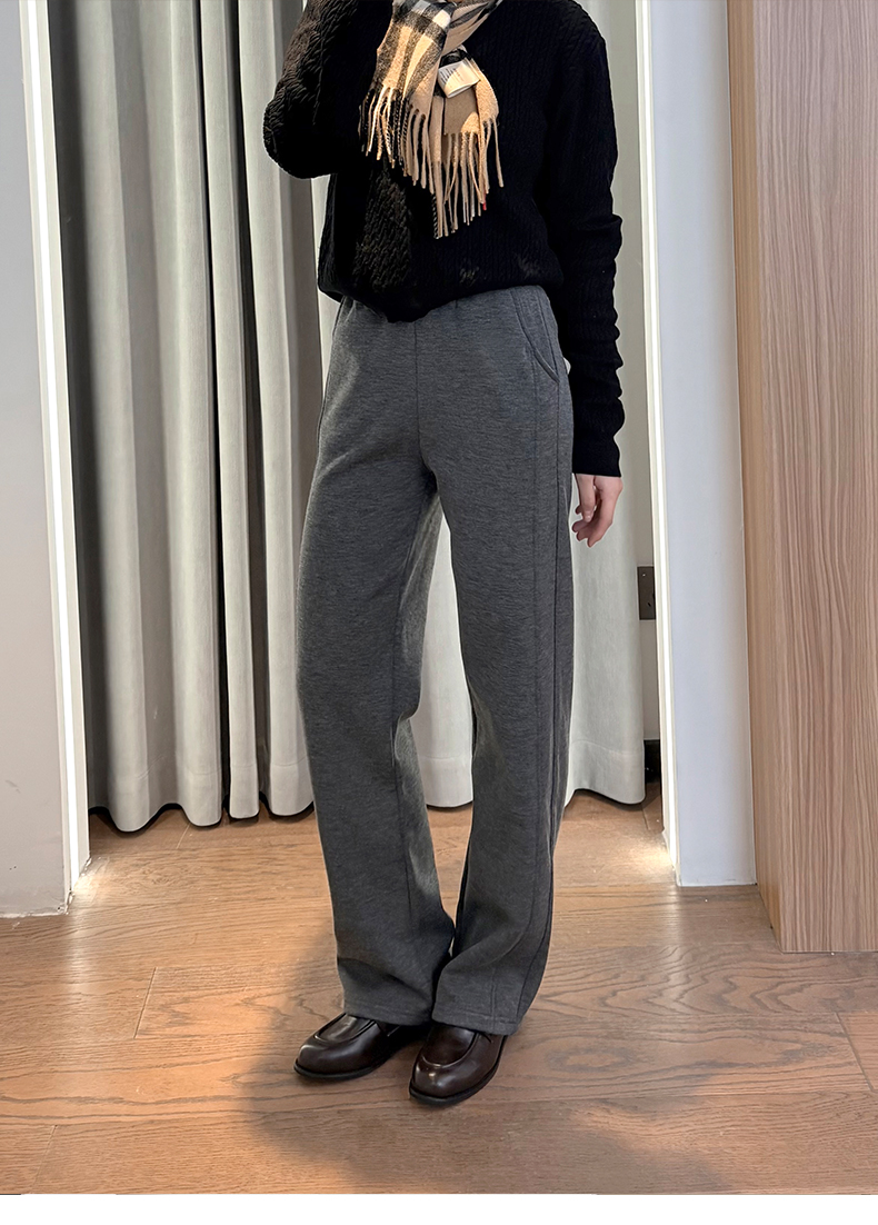 会员福利【绵羊毛+桑蚕丝】拉夏贝尔/La Chapelle高腰垂感加绒直筒糯米长裤子微阔显瘦显腿直