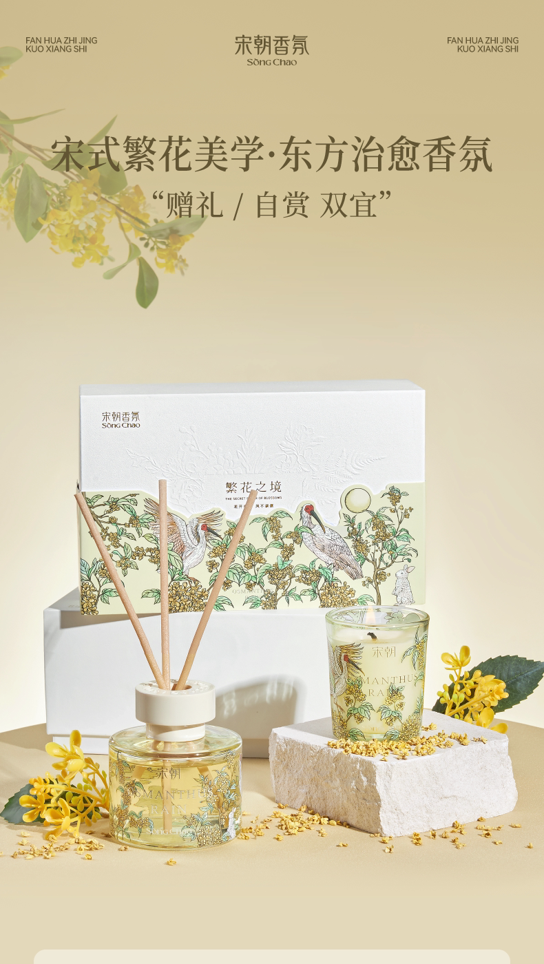 宋朝 繁花之境 无火香薰蜡烛礼盒 桂花香氛 生日礼物 新婚 高级伴手礼