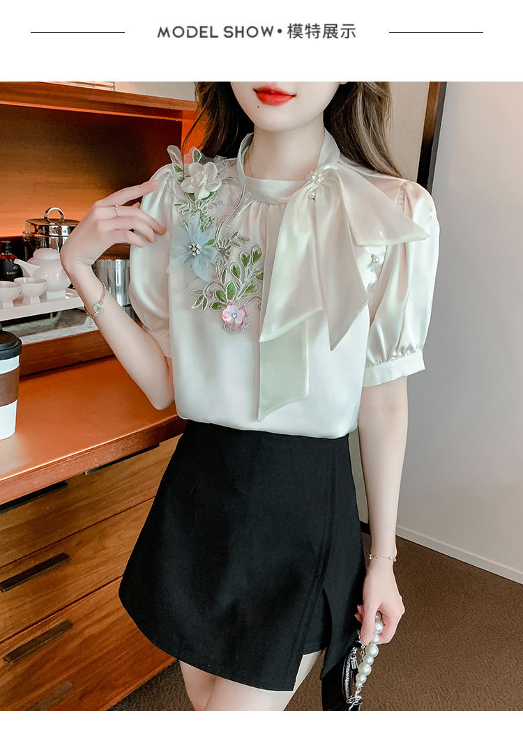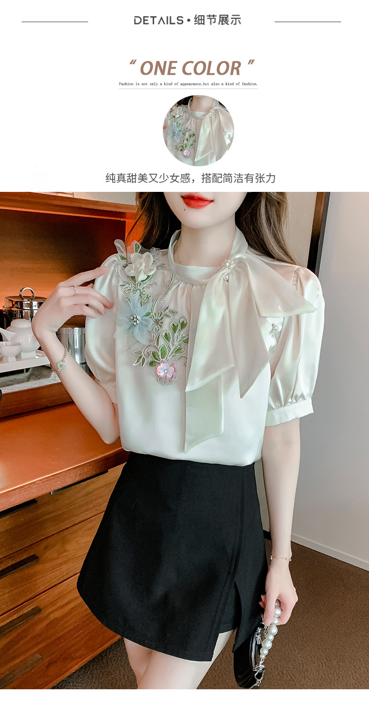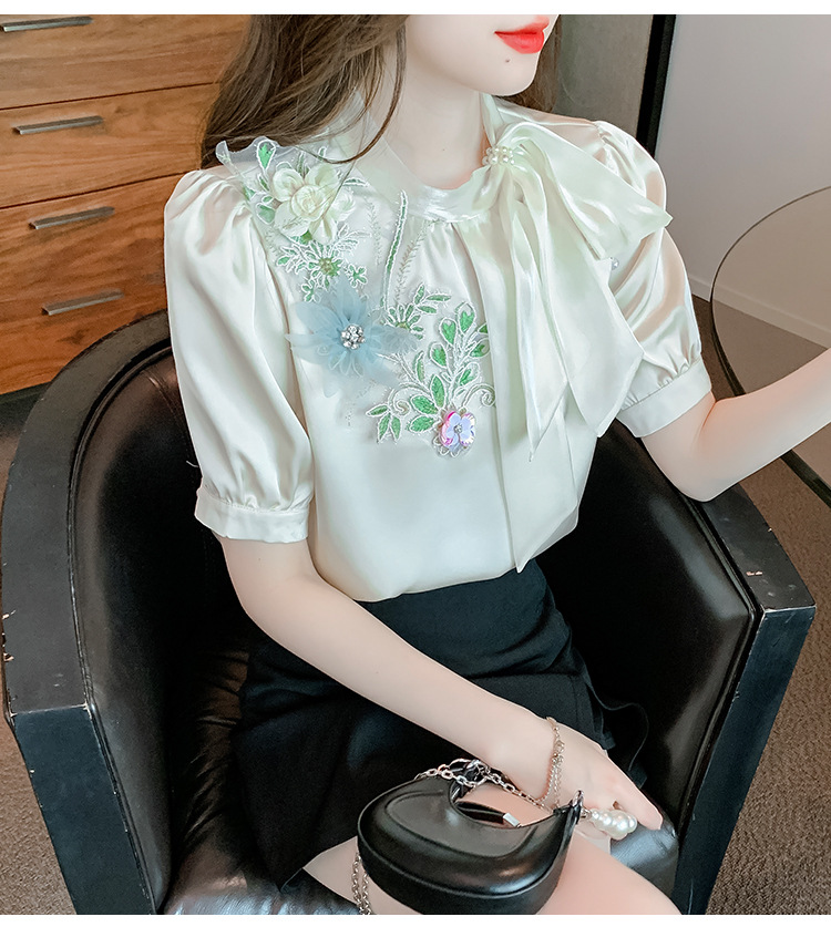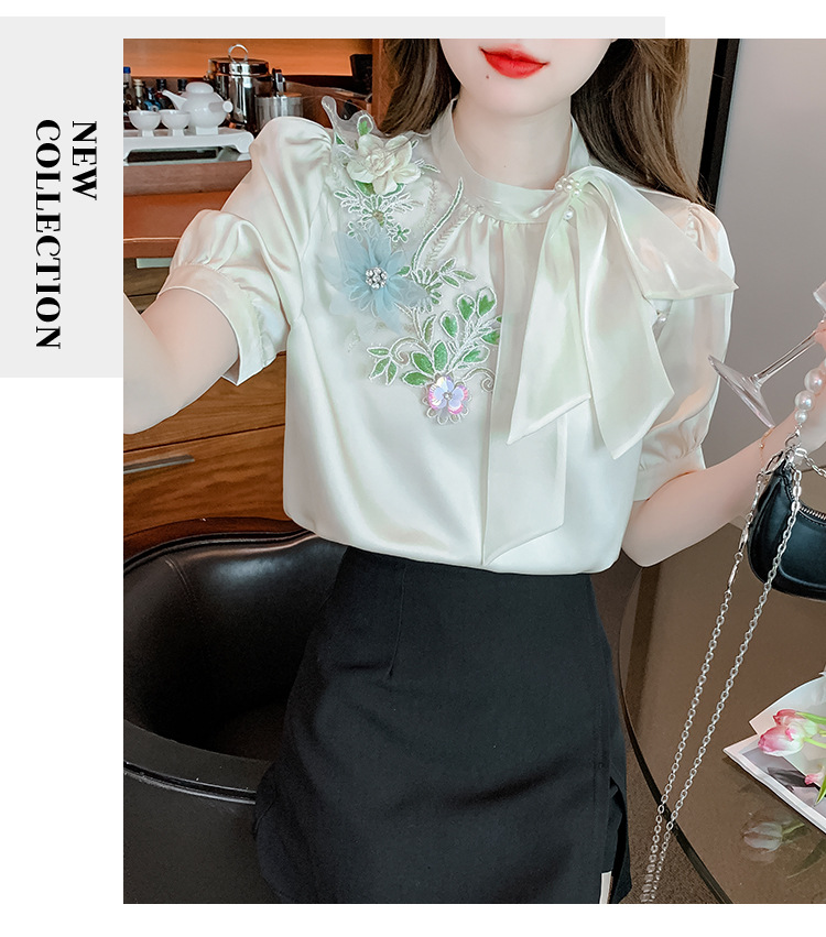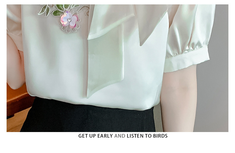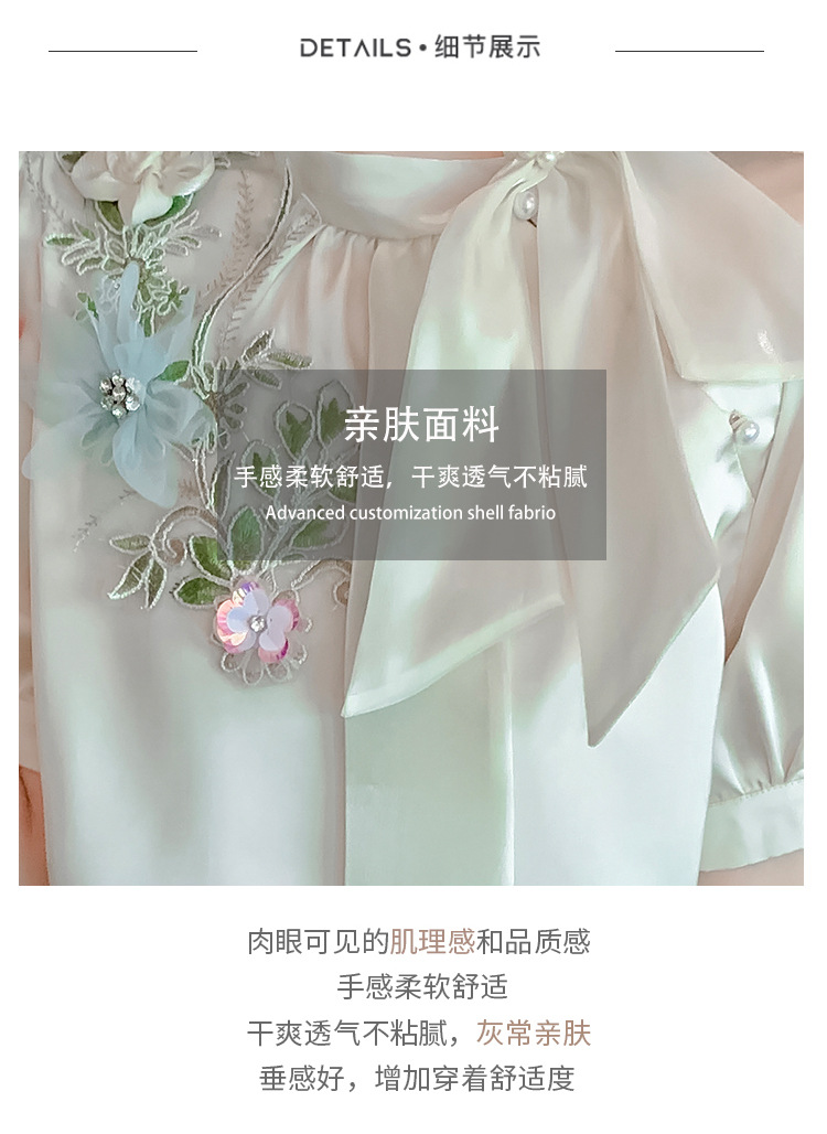 优雅减龄,重工立体花朵缎面衬衫SDJ37863119