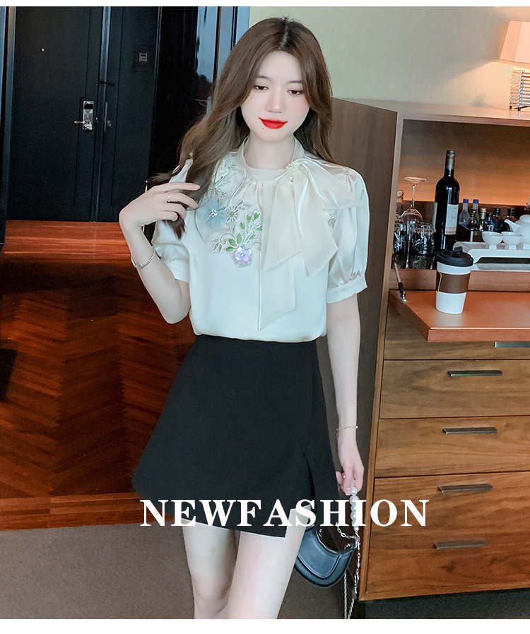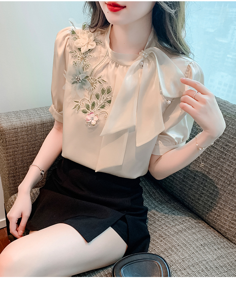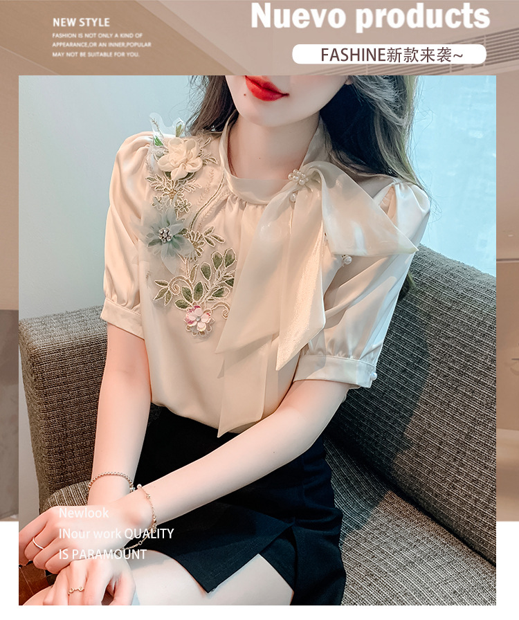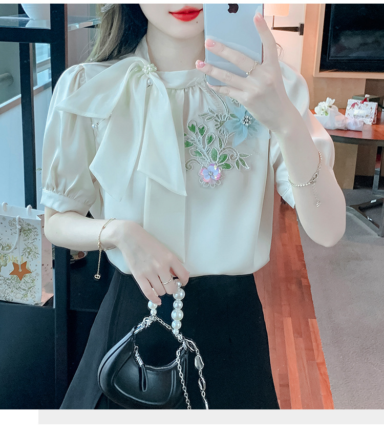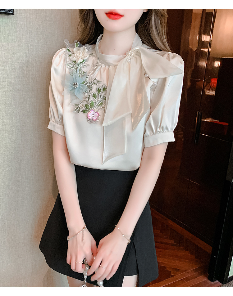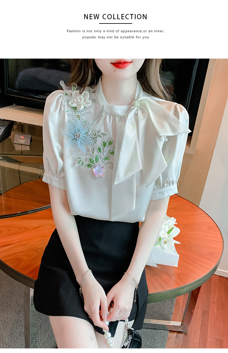 优雅减龄,重工立体花朵缎面衬衫SDJ37863119
