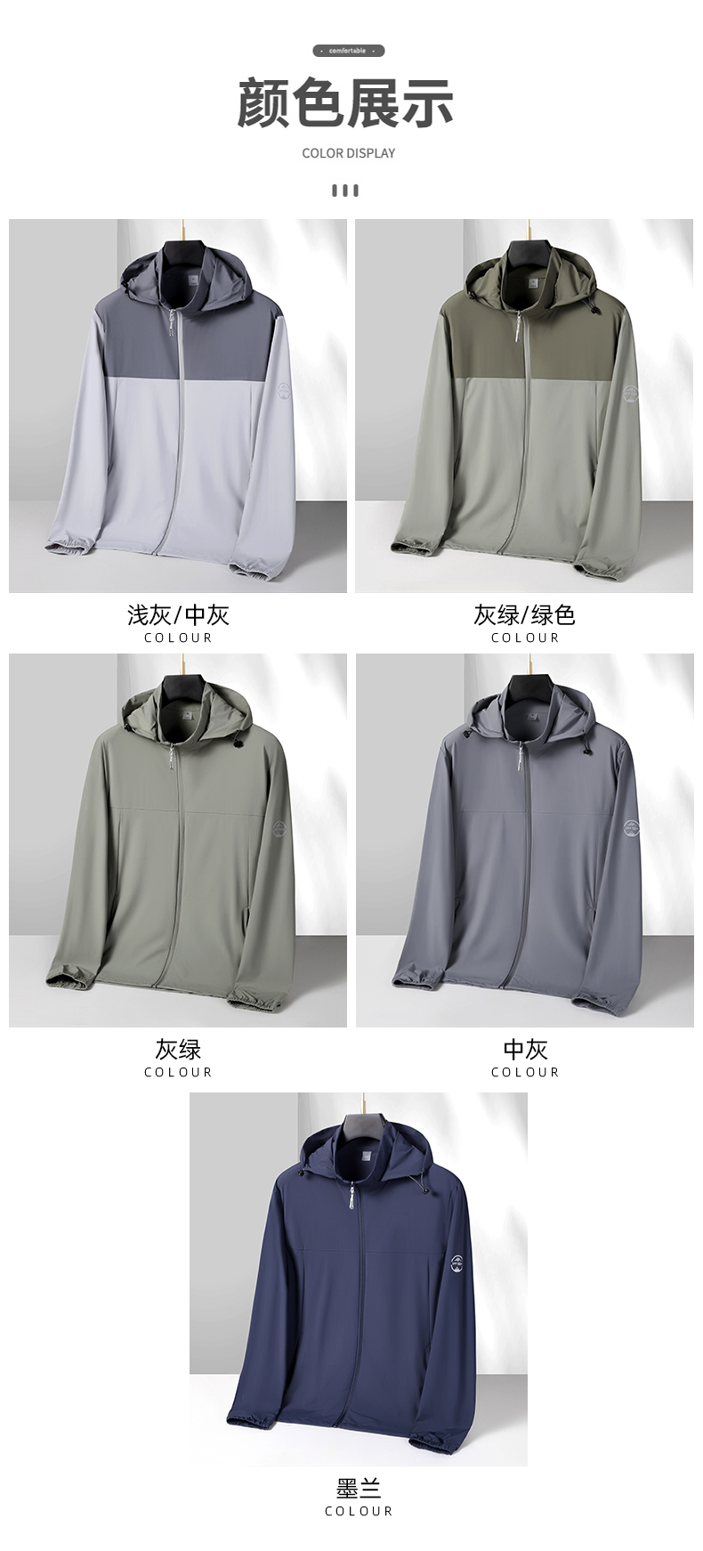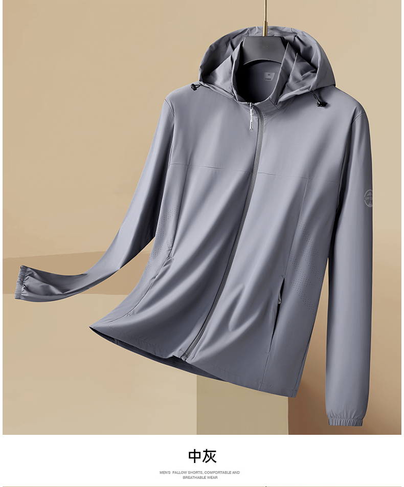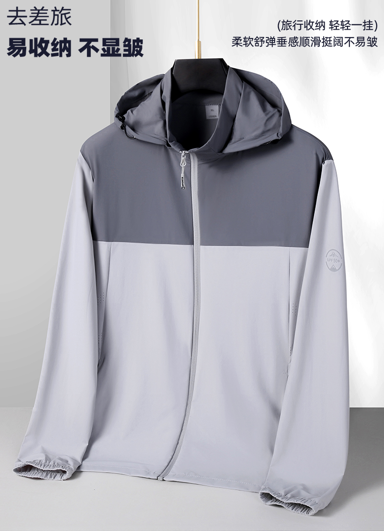 【防晒衣】【DK】大依优型大码防晒皮肤衣加肥加大弹力薄款可拆卸帽外套防晒服男运动跑步夏季冰丝钓鱼夹克衫肥佬休闲
