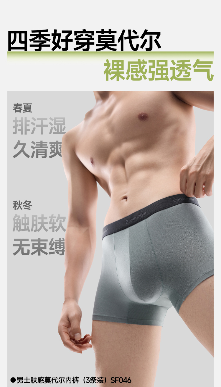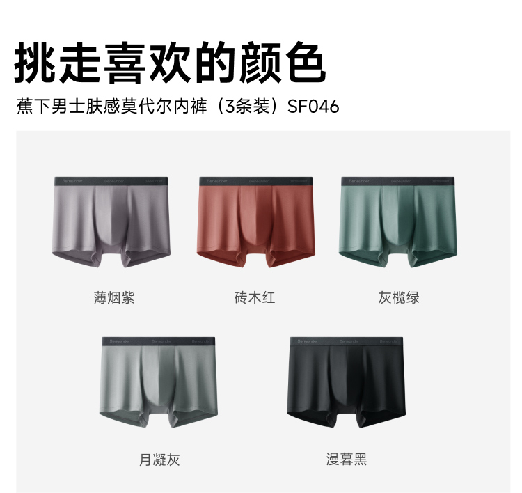 【25年新品】蕉下男士肤感莫代尔内裤(3条装)SF046【拆封不支持退换货】