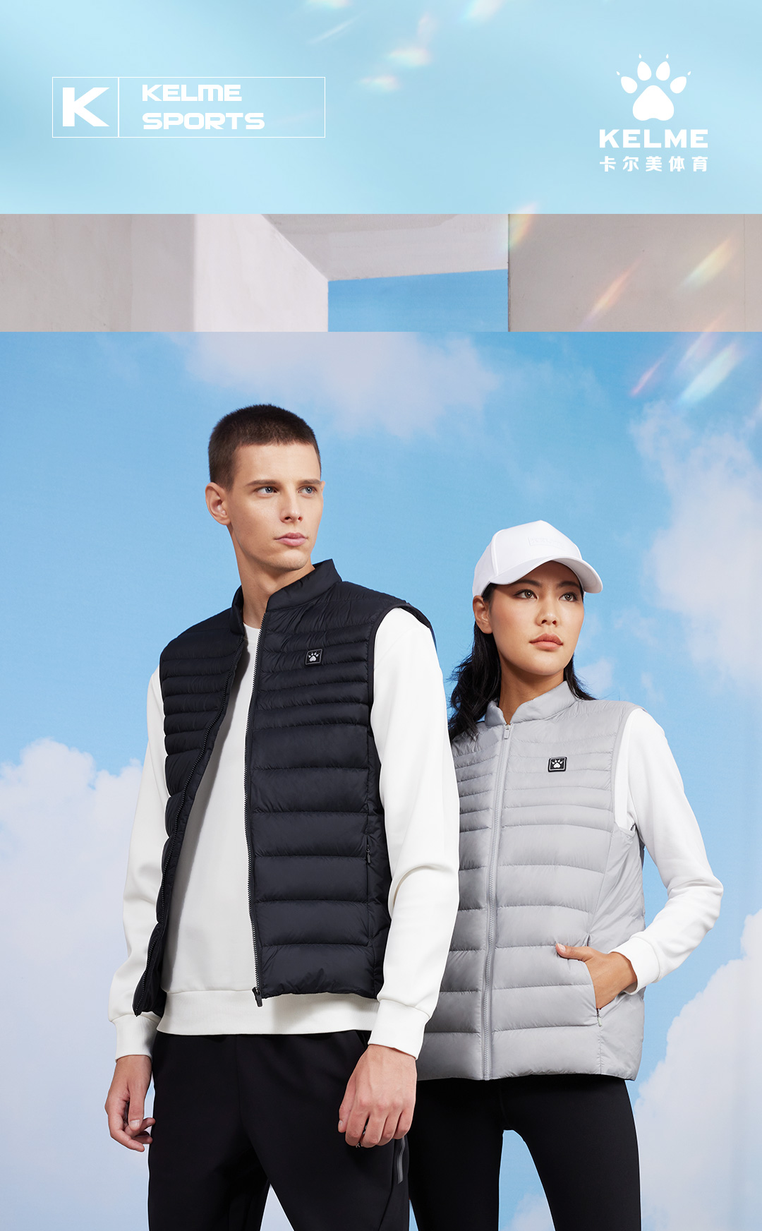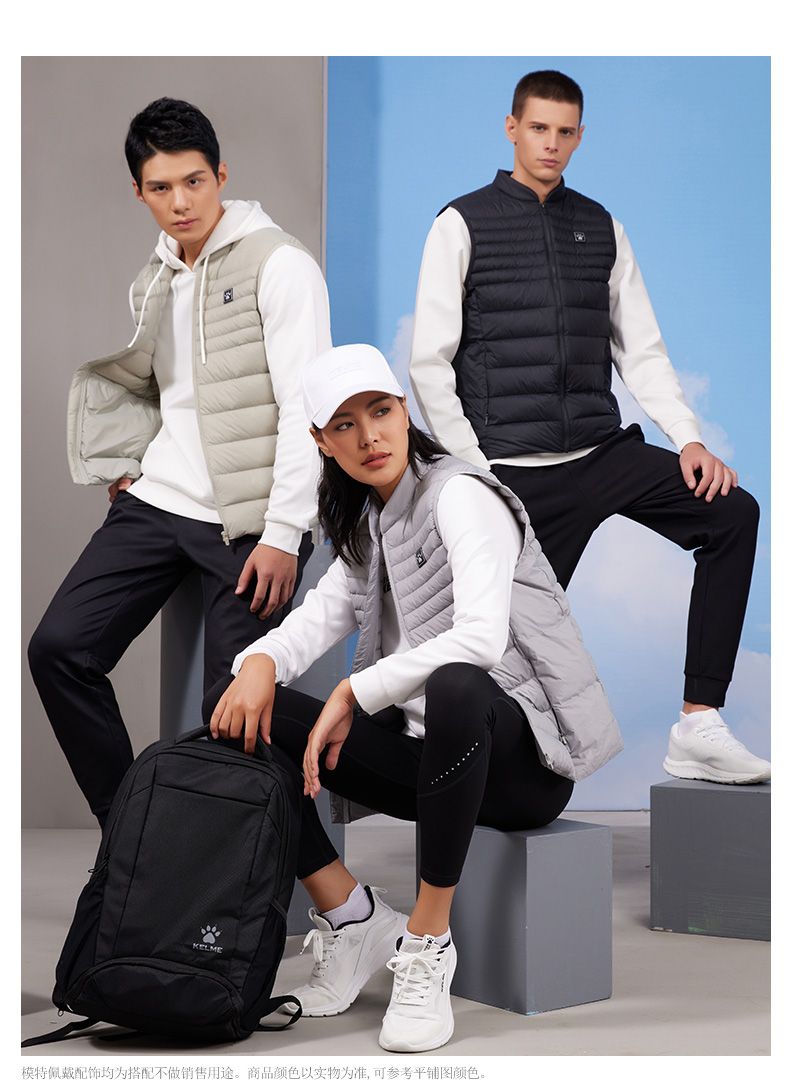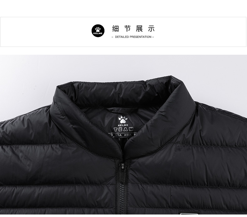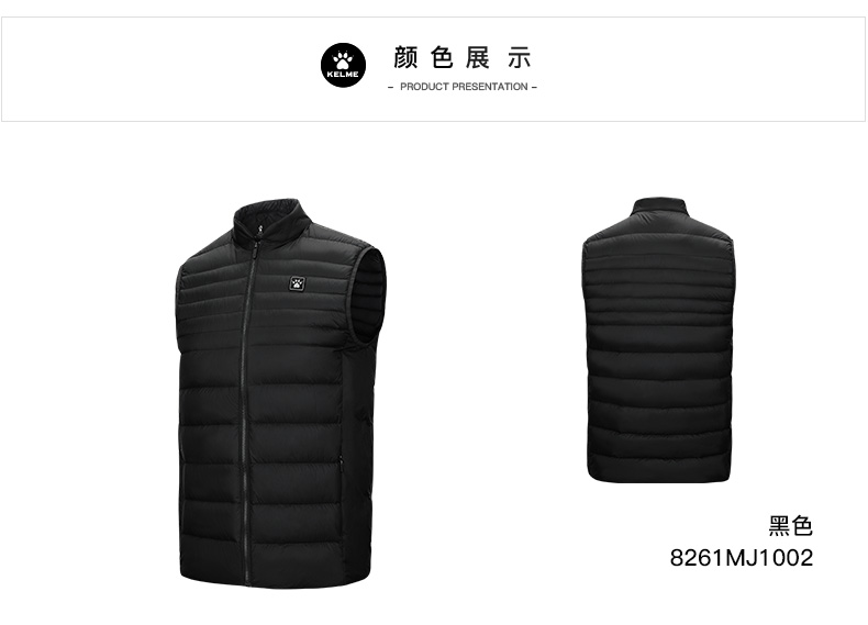 卡尔美运动羽绒马甲男冬保暖足球跑步训练背心坎肩外套上衣