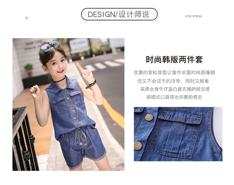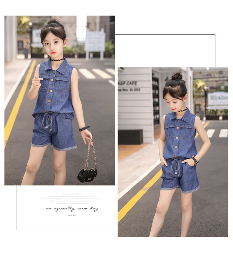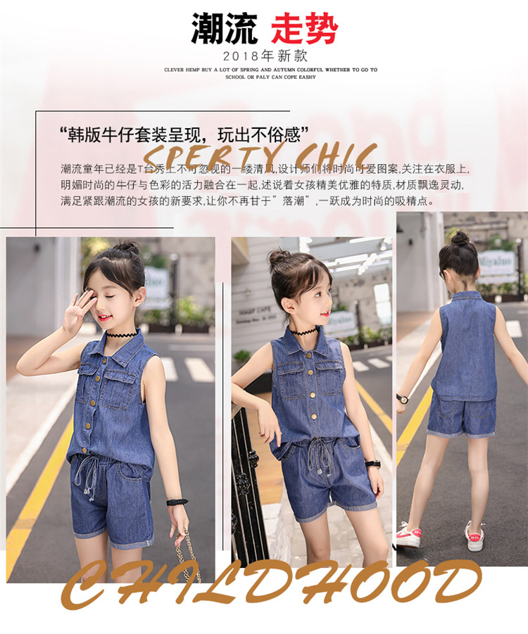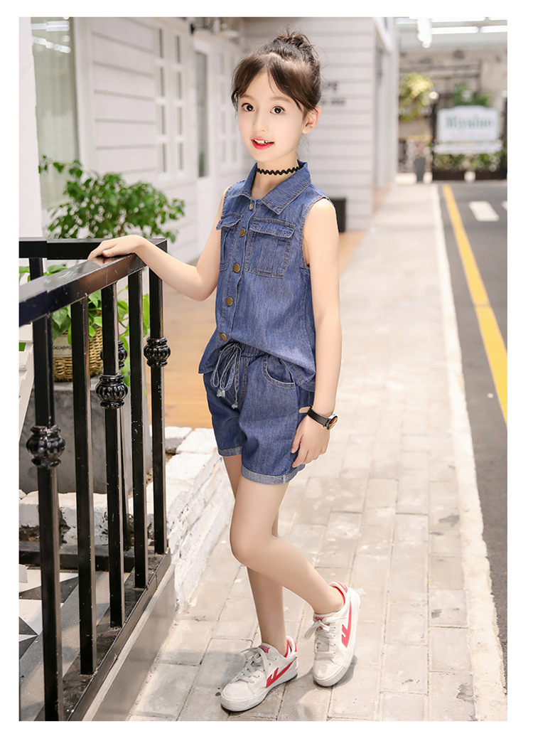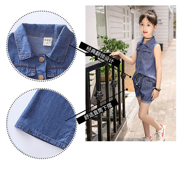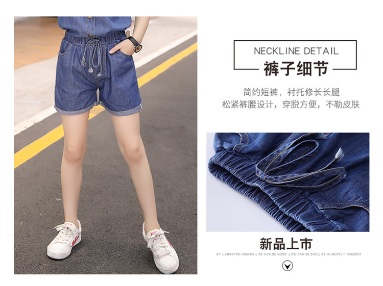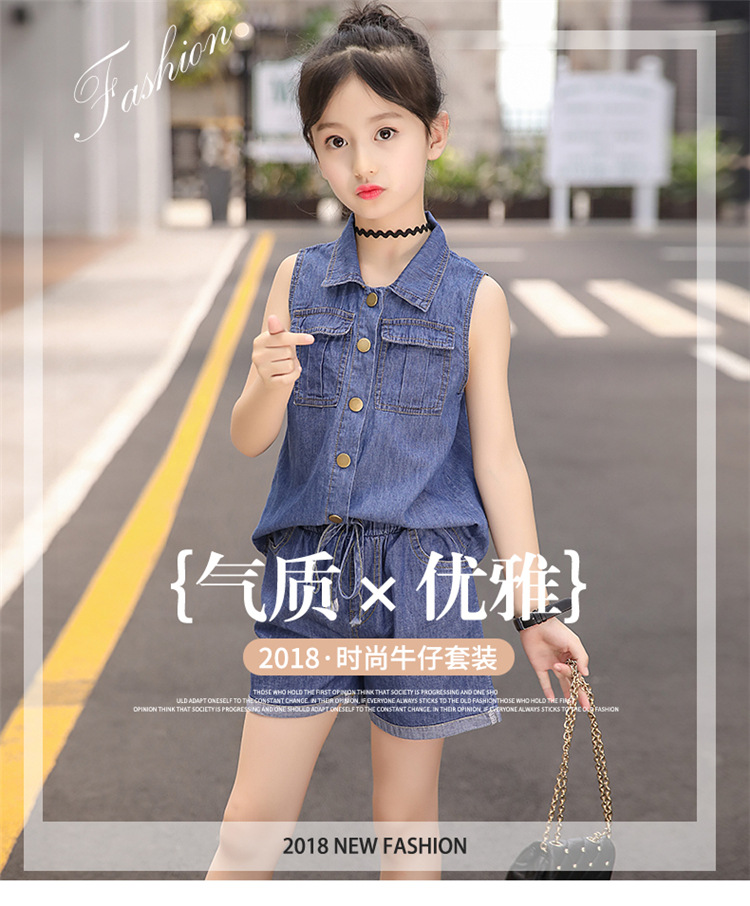 228-新品女童薄款大童女孩牛仔短裤两件套ZXH