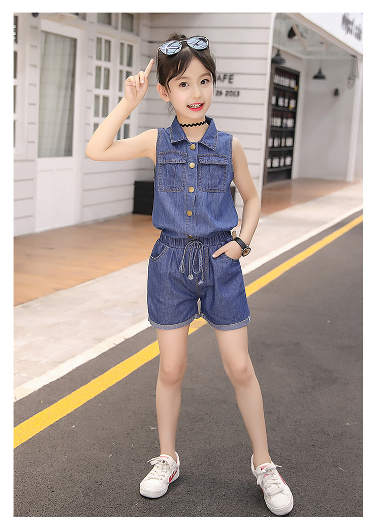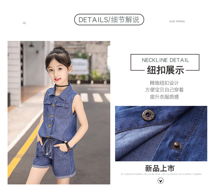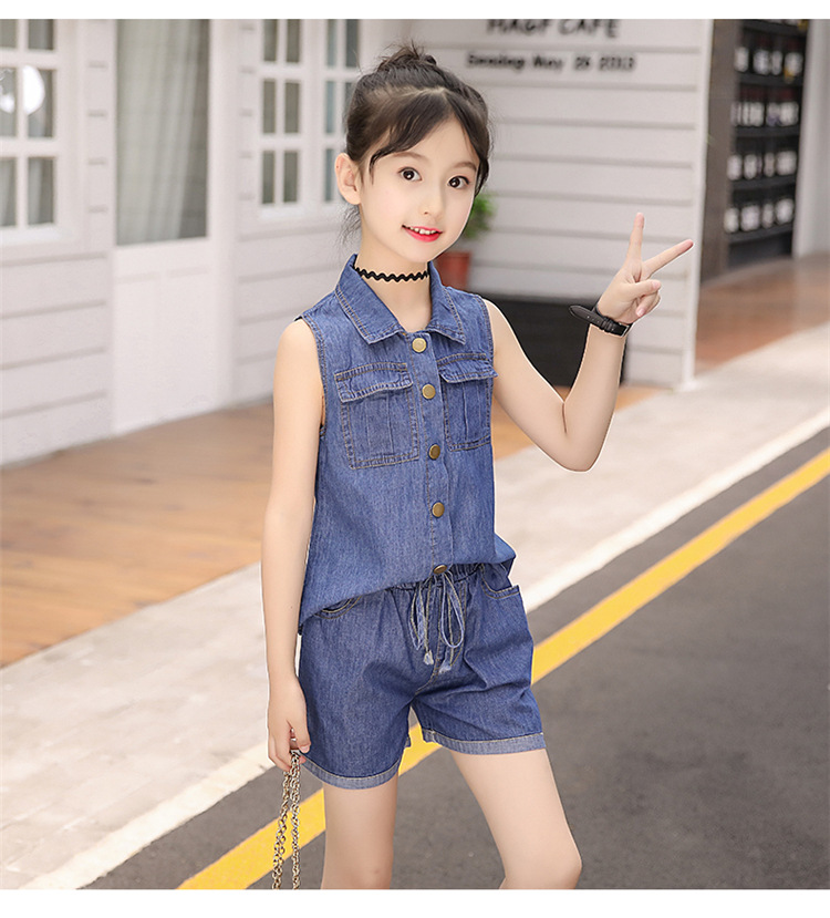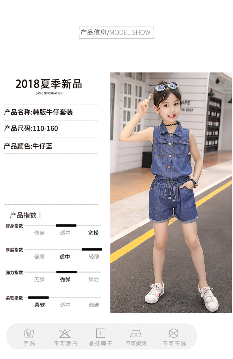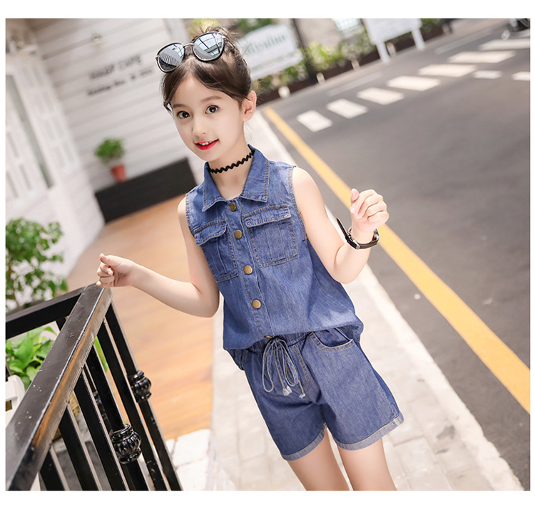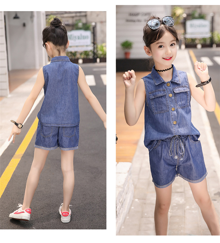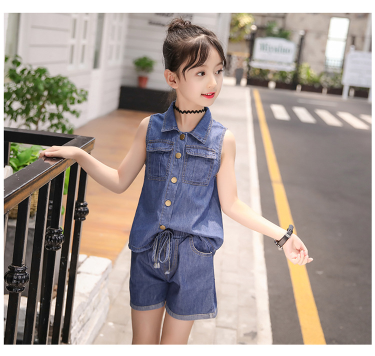228-新品女童薄款大童女孩牛仔短裤两件套ZXH