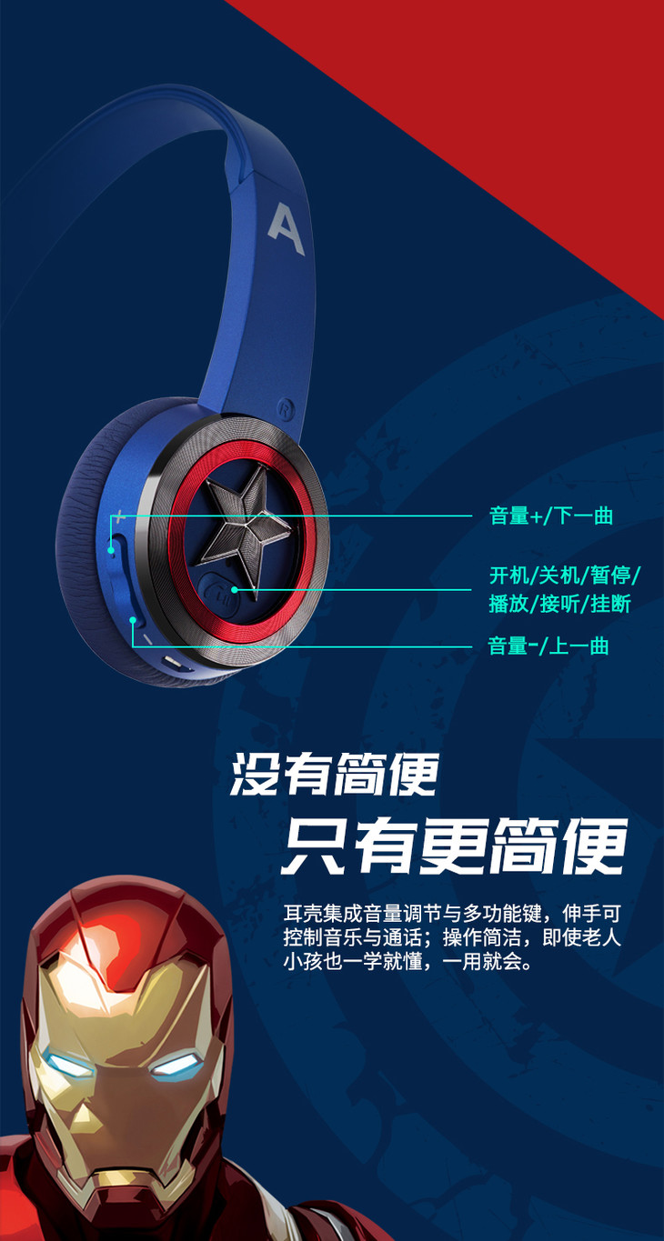 Edifier/漫步者W580BT漫威美国队长无线蓝牙耳机钢铁侠耳麦头戴式音乐耳机