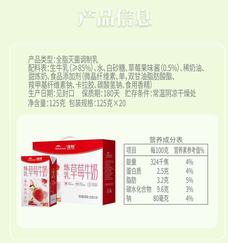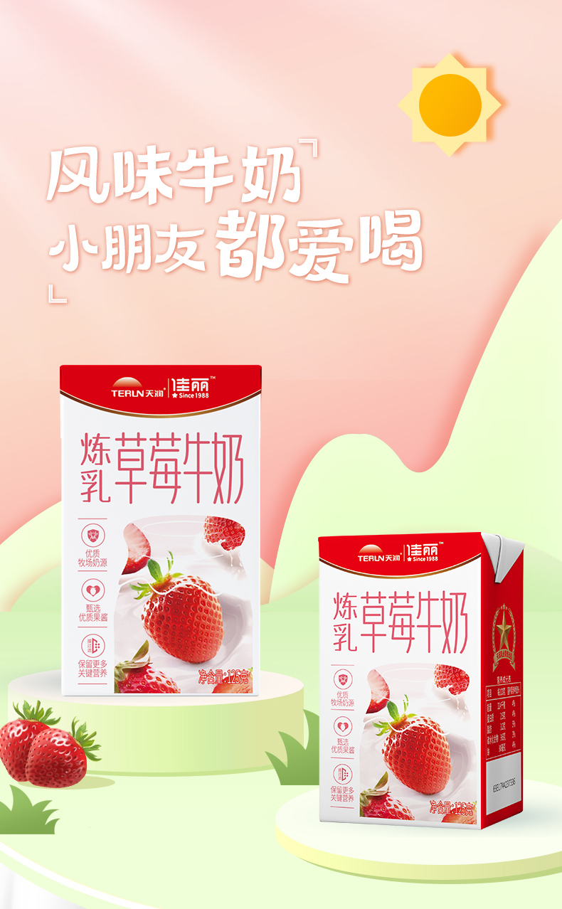 天润佳丽炼乳草莓牛奶/2箱(每箱125g*20盒)生产日期:24年10月