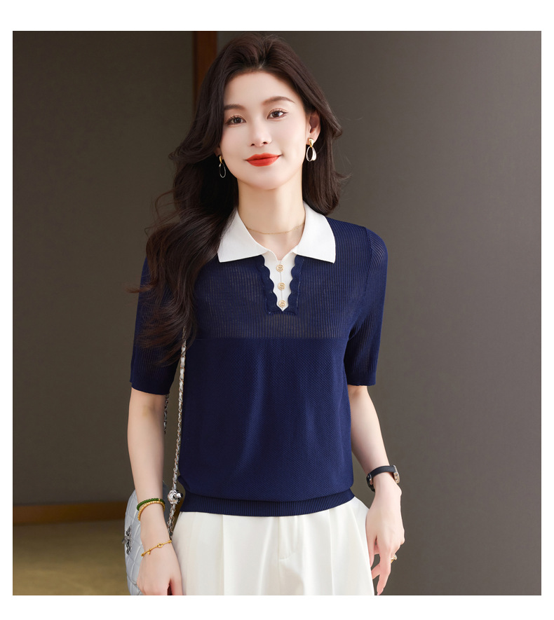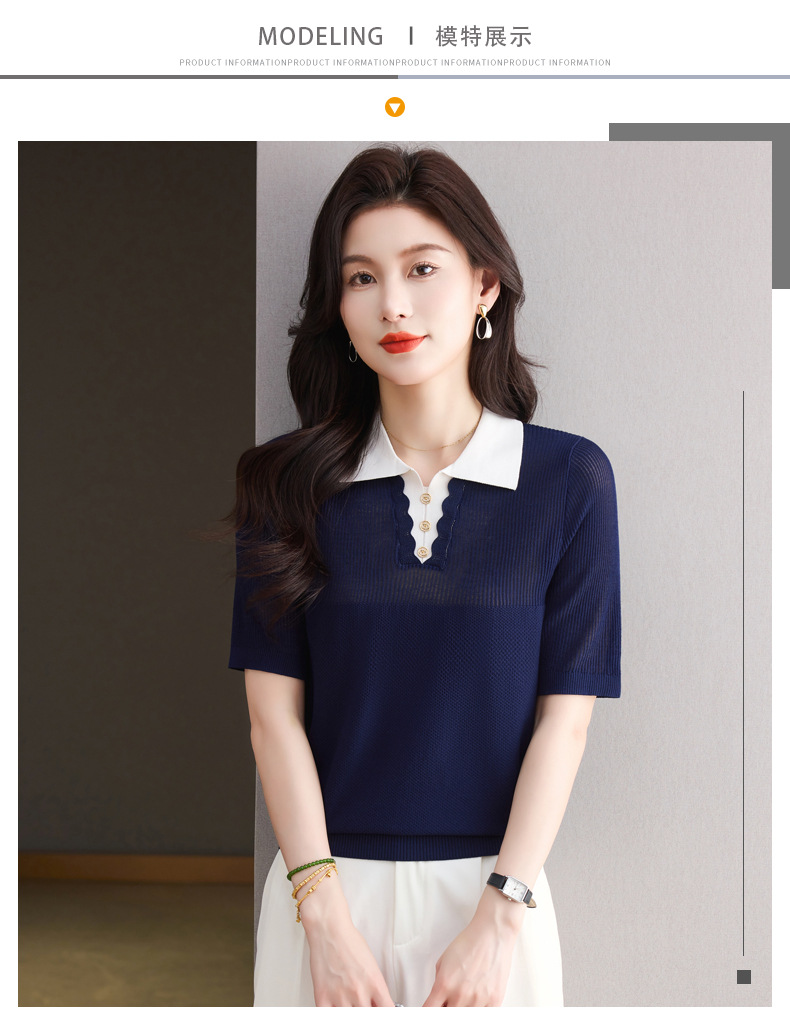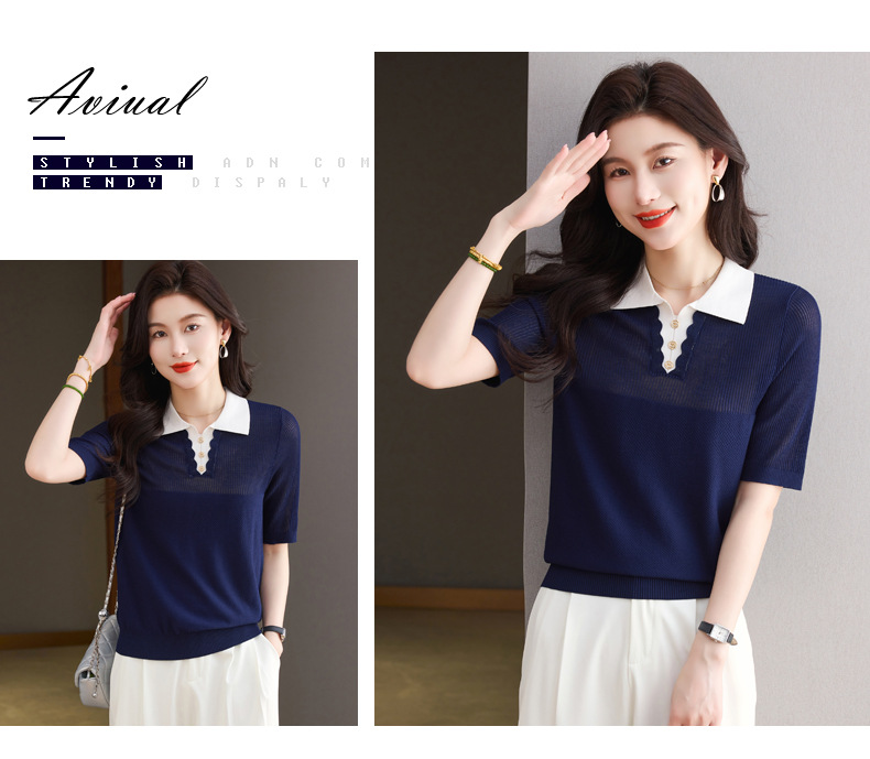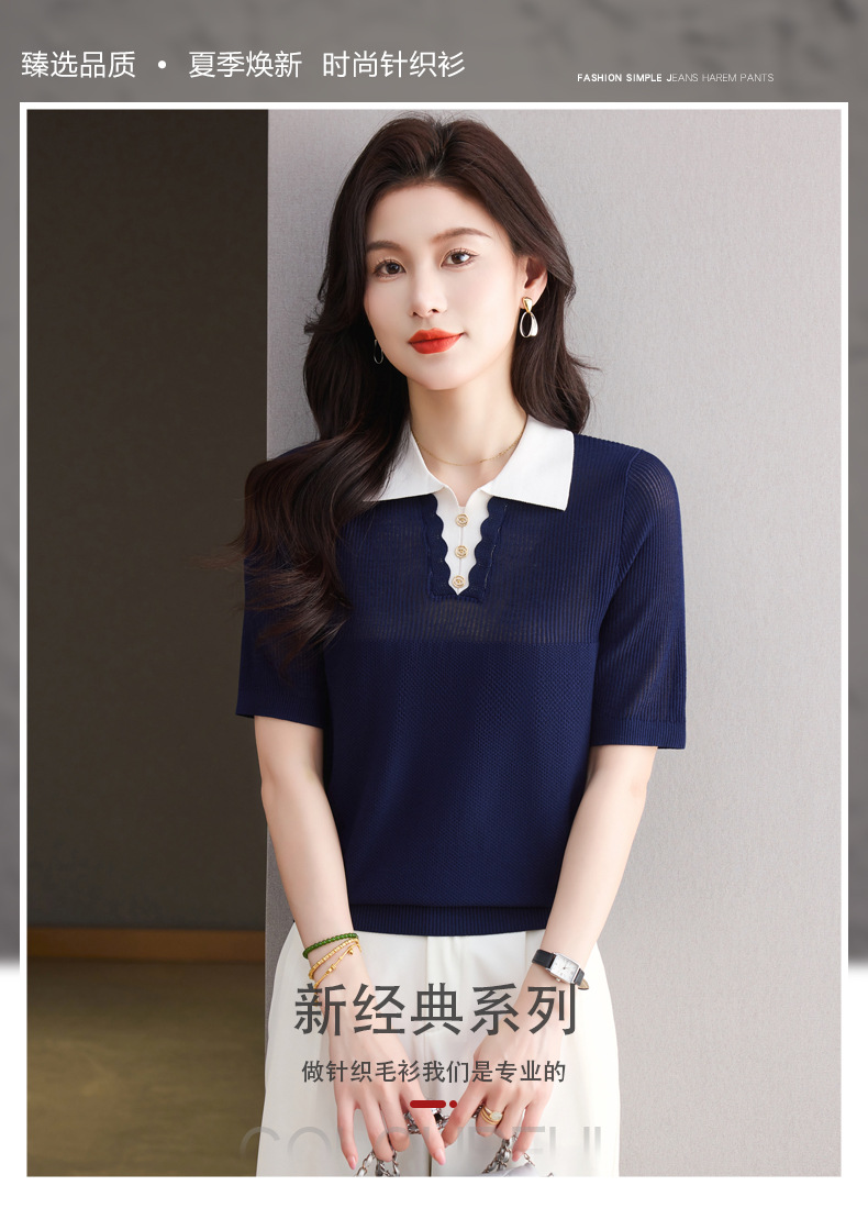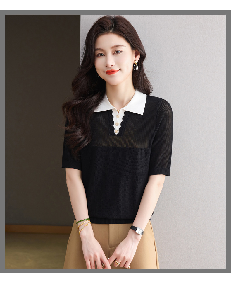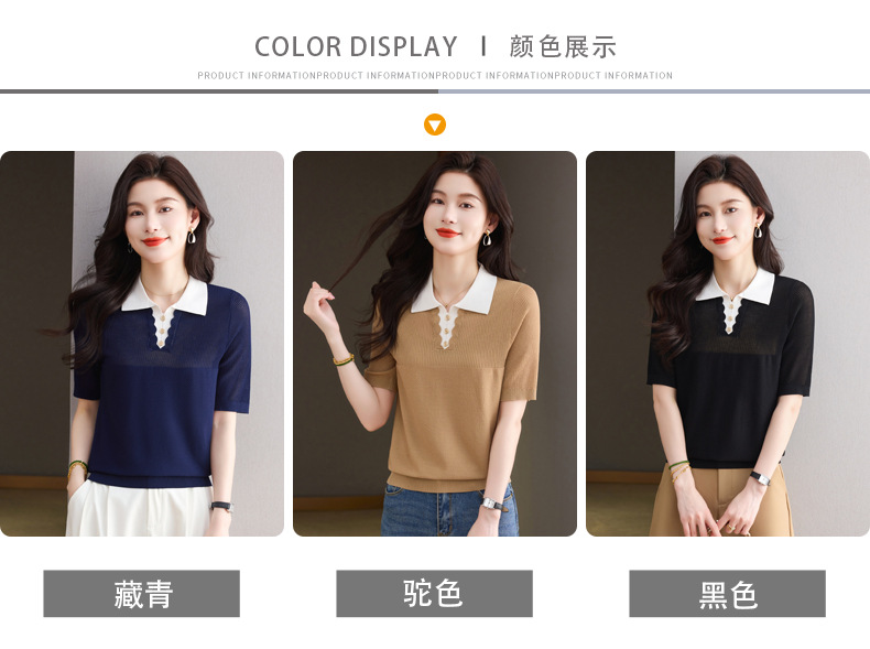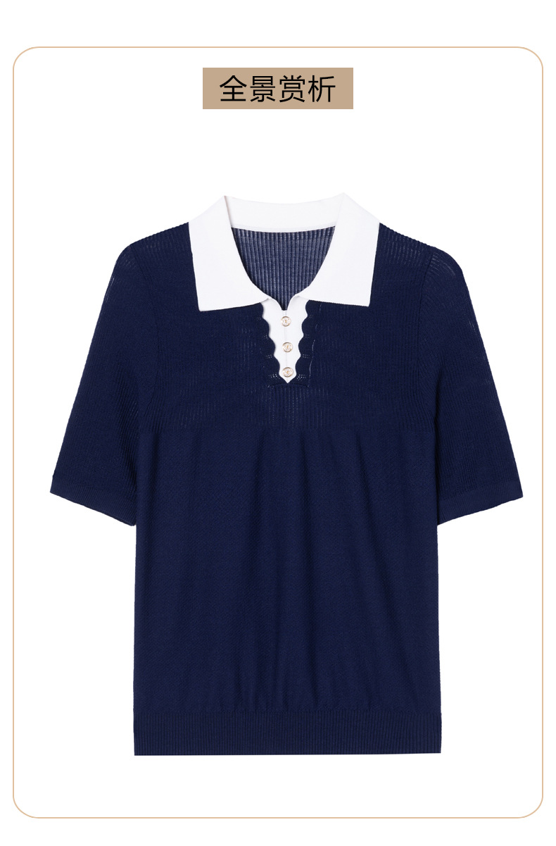 CC-翻领撞色上衣夏季气质轻奢漂亮小衫2025新款女士冰丝短袖t恤洋气