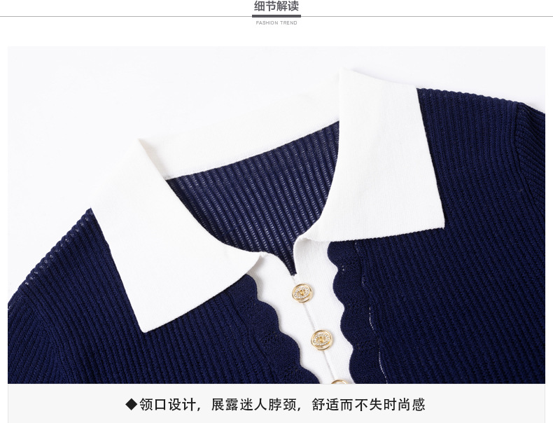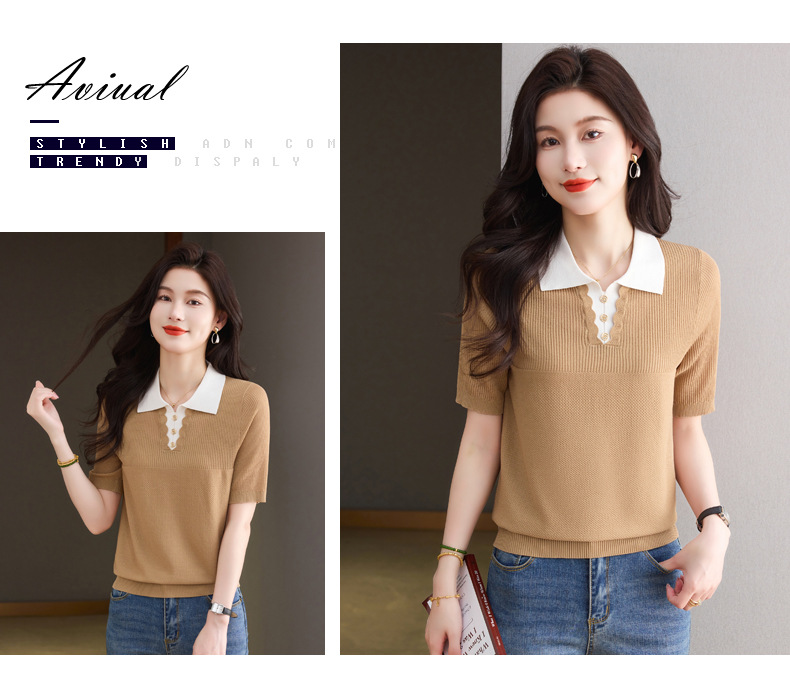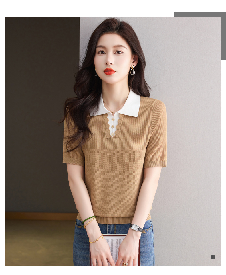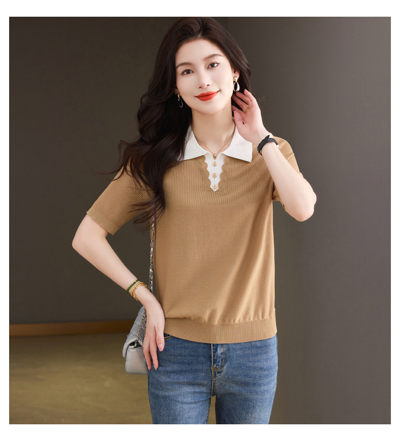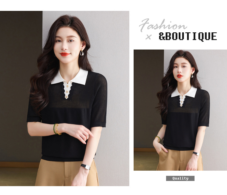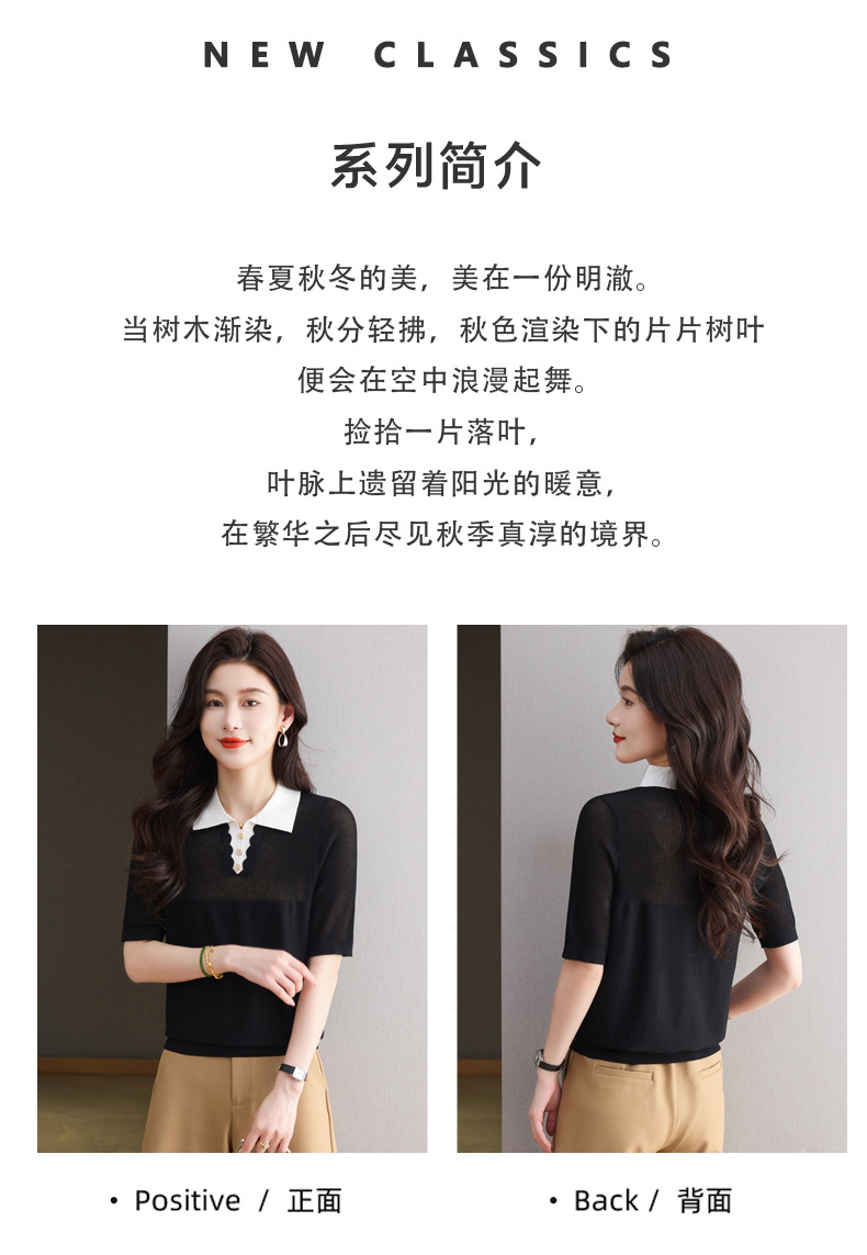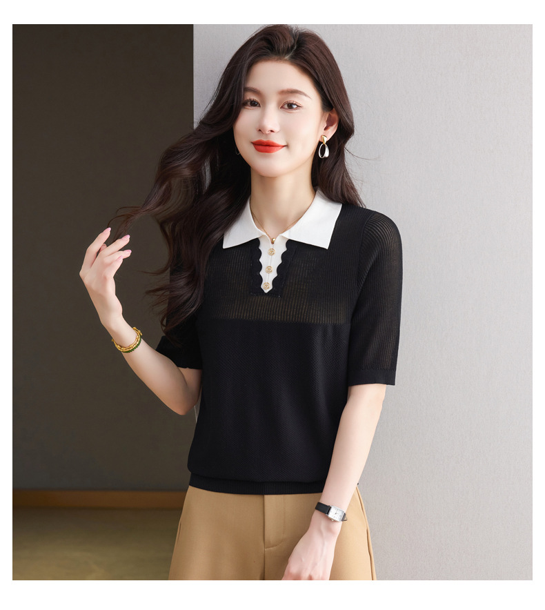 CC-翻领撞色上衣夏季气质轻奢漂亮小衫2025新款女士冰丝短袖t恤洋气