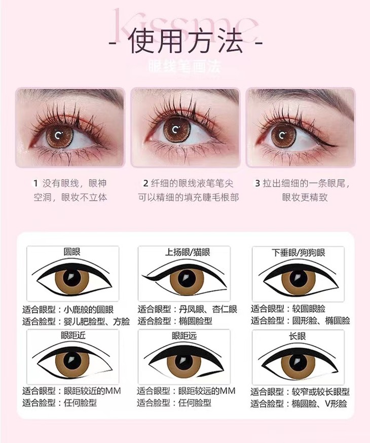 👑KISSME花漾美姬 超持久极细抗晕眼线笔 👍眼线全天—不掉线 👀0.1mm极细笔尖,帮你描绘灵动双眸,眼线粗细易掌握 ✨含有:防凝结滚珠,有力防止卡顿 💎流畅出水,顺滑不NG,轻柔不扎眼 💕快速干、顺滑显色、温水可卸,同时含有呵护肌肤营养成分