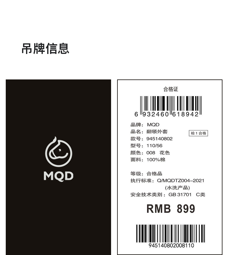 【MQD】【三防】马骑顿儿童羽绒服男童新款冬装连帽外套大童