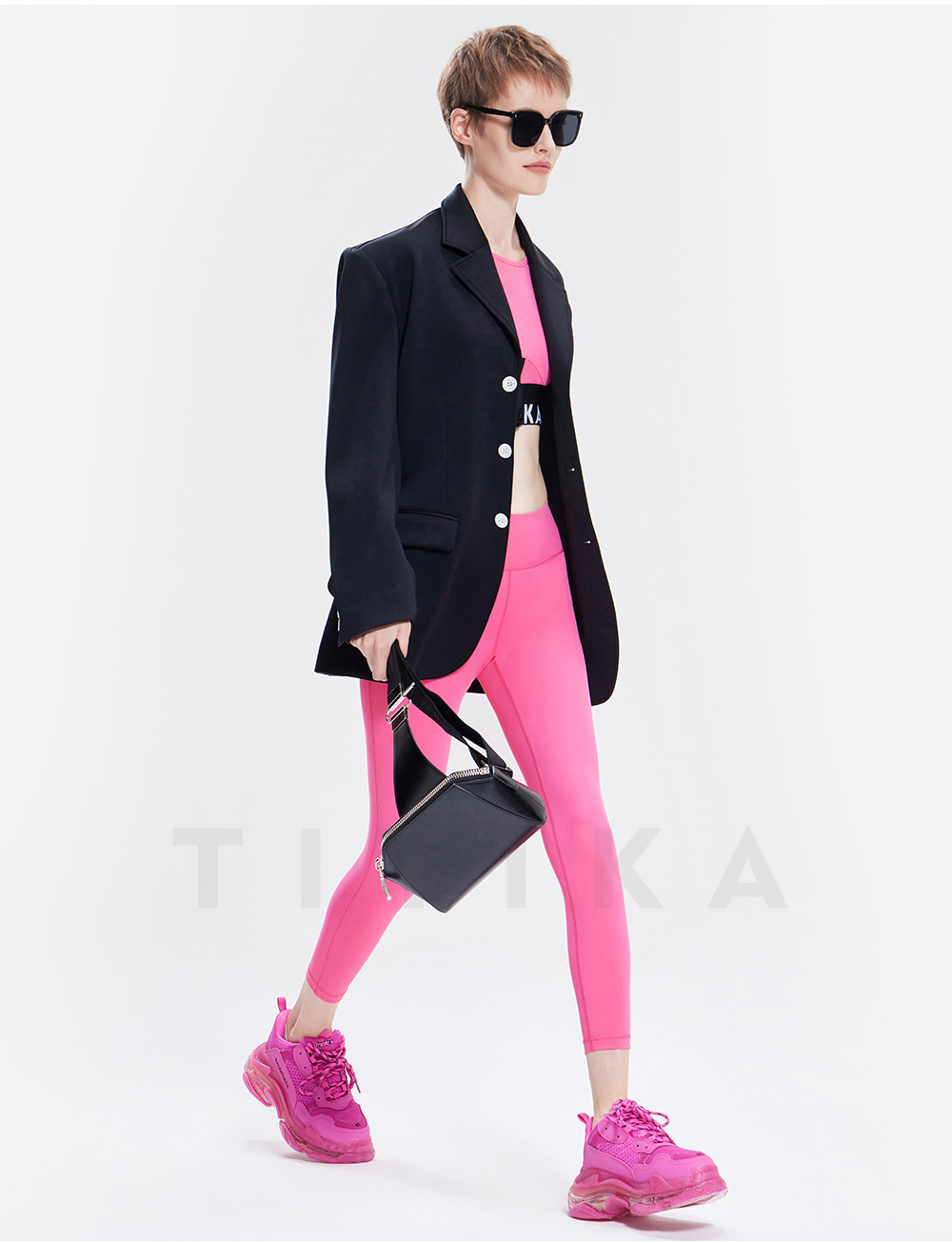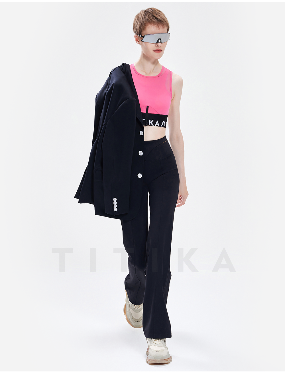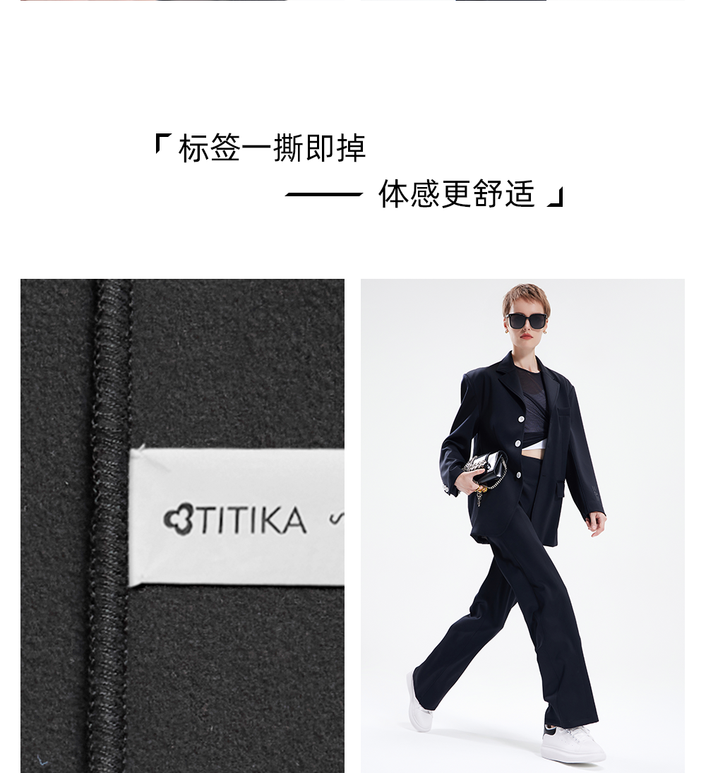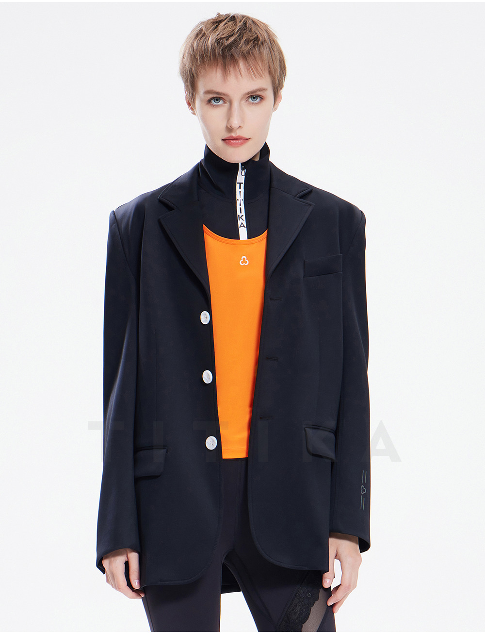 TITIKA ACTIVE瑜伽服秋季纯黑运动西装女休闲空气感免烫外套oversized 38J71100