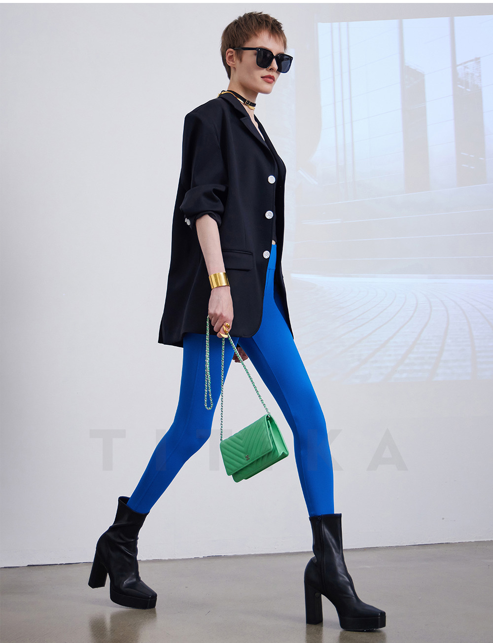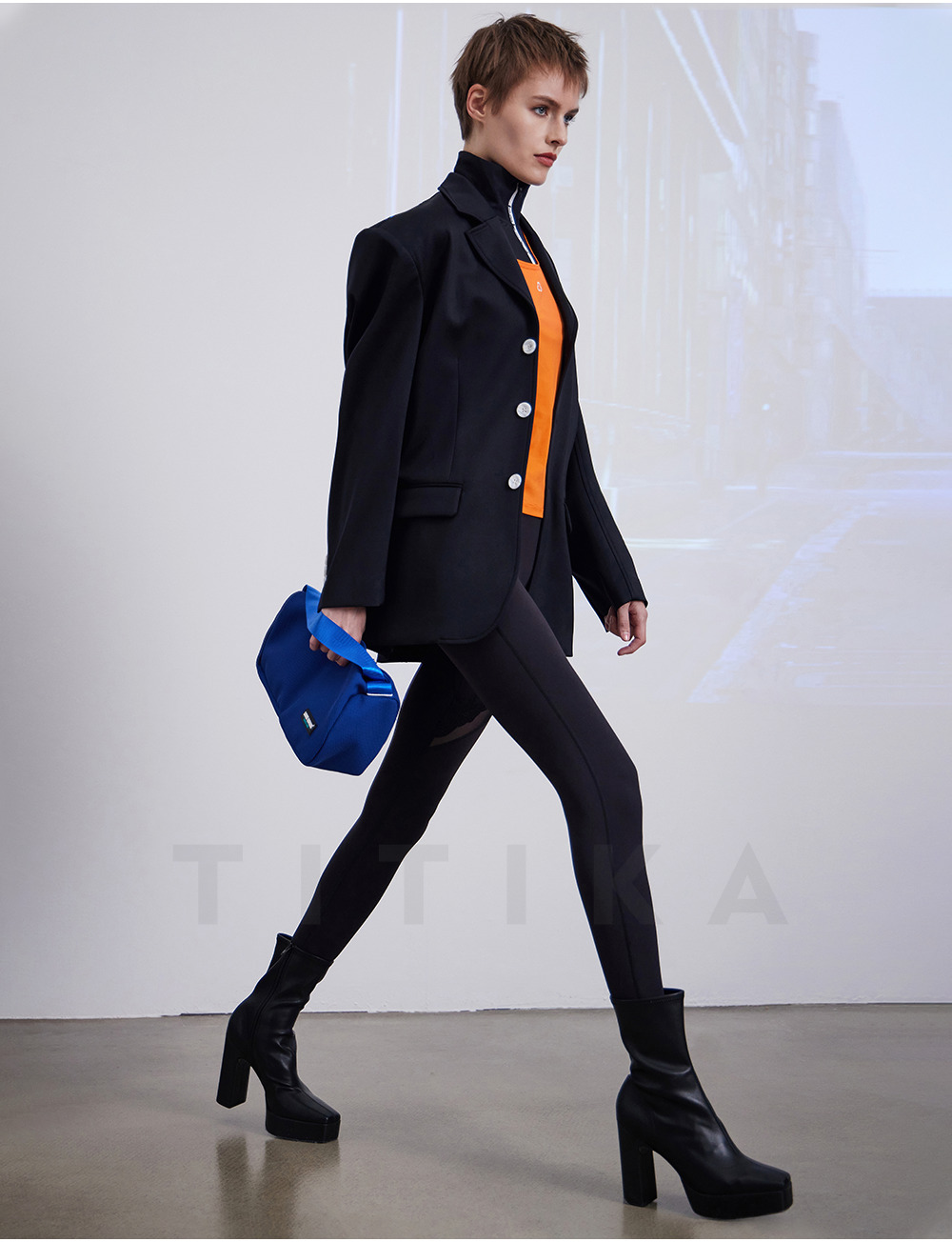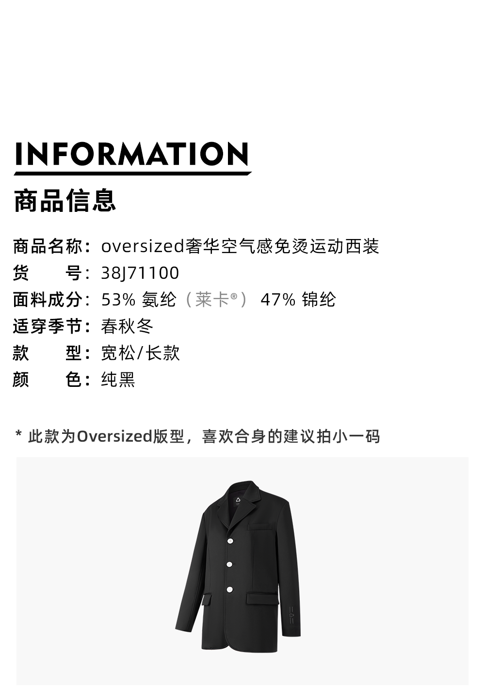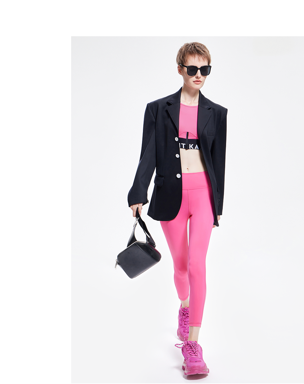 TITIKA ACTIVE瑜伽服秋季纯黑运动西装女休闲空气感免烫外套oversized 38J71100