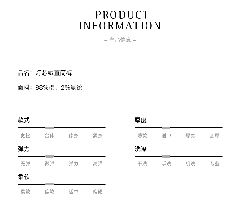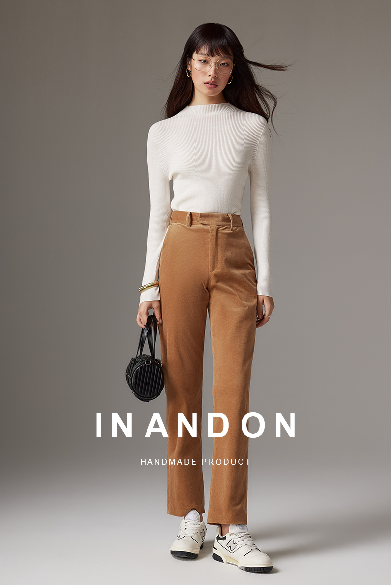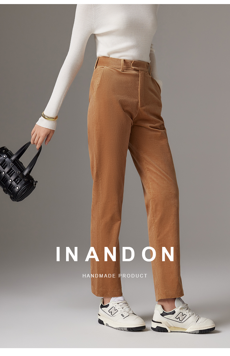 IN AND ON 灯芯绒显瘦休闲直筒裤 52610