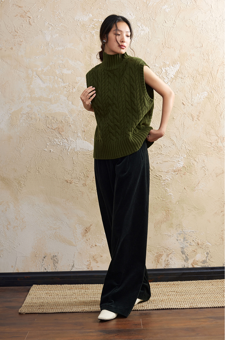 IN AND ON 秋冬保暖加厚雪尼尔休闲褶裥宽腿裤53565