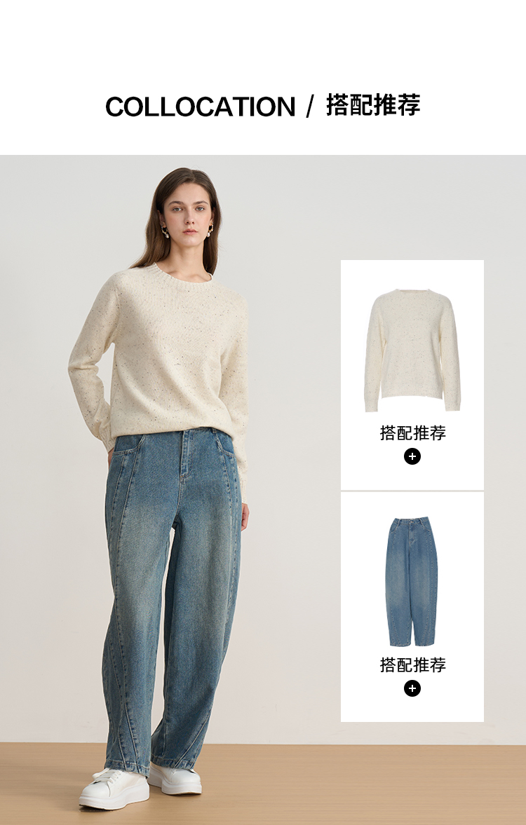 【羊毛针织衫】EITIE爱特爱时尚圆领宽松显瘦百搭2025秋季新款针织衫D2501903