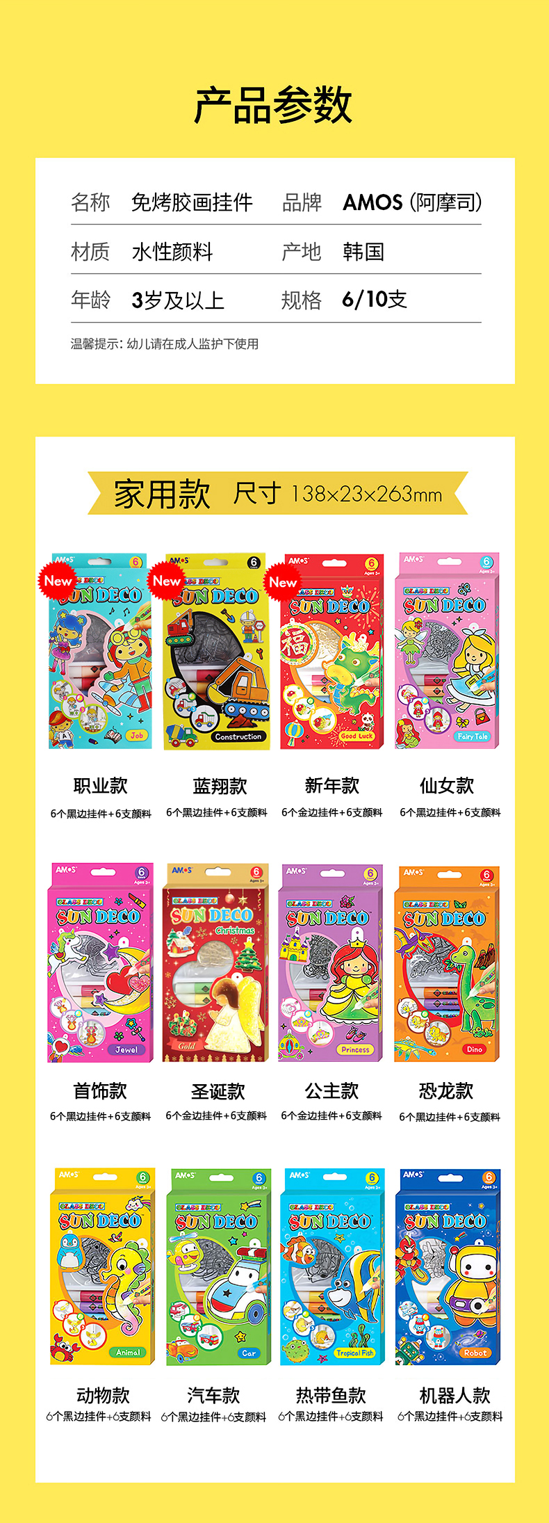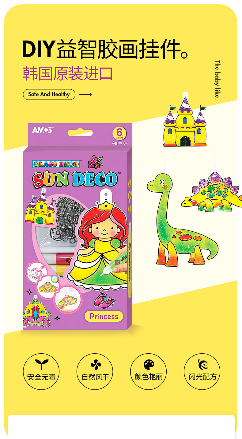 韩国AMOS免烤玻璃胶画圣诞DIY儿童益智手工制作女玩具礼物颜料