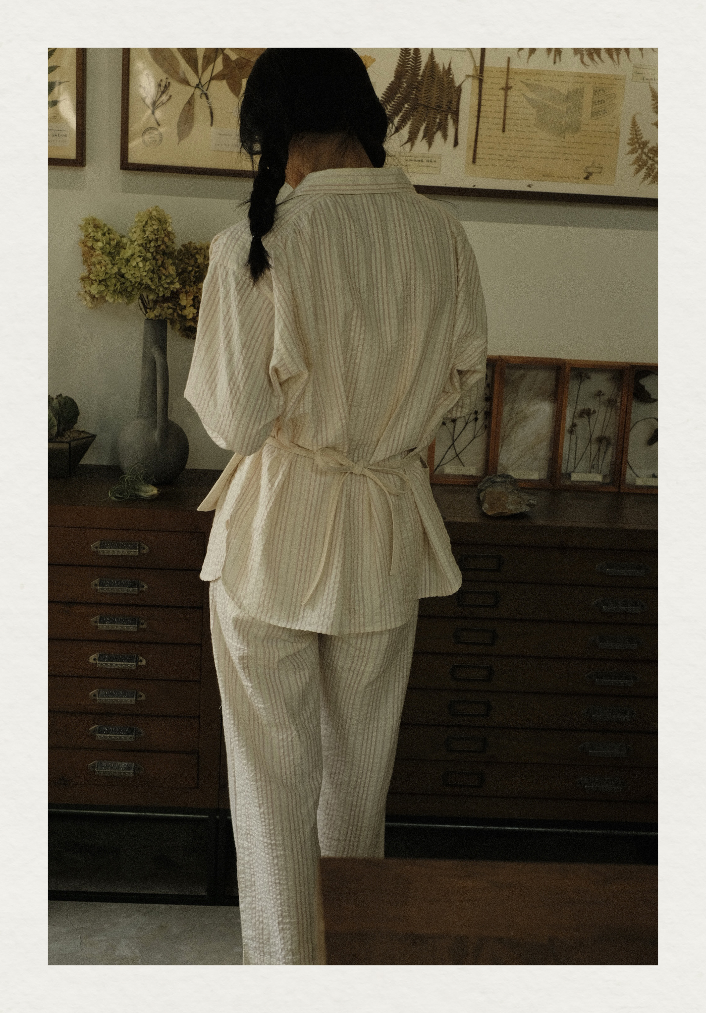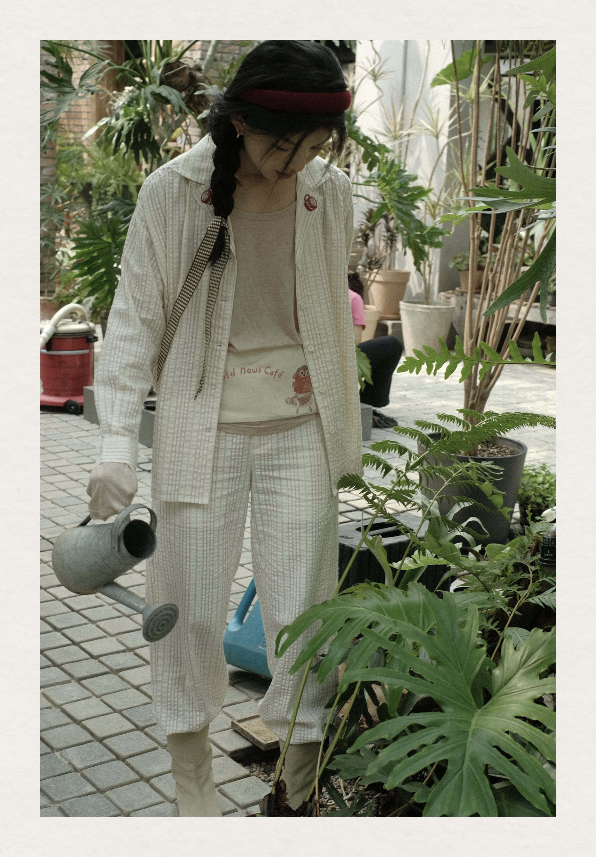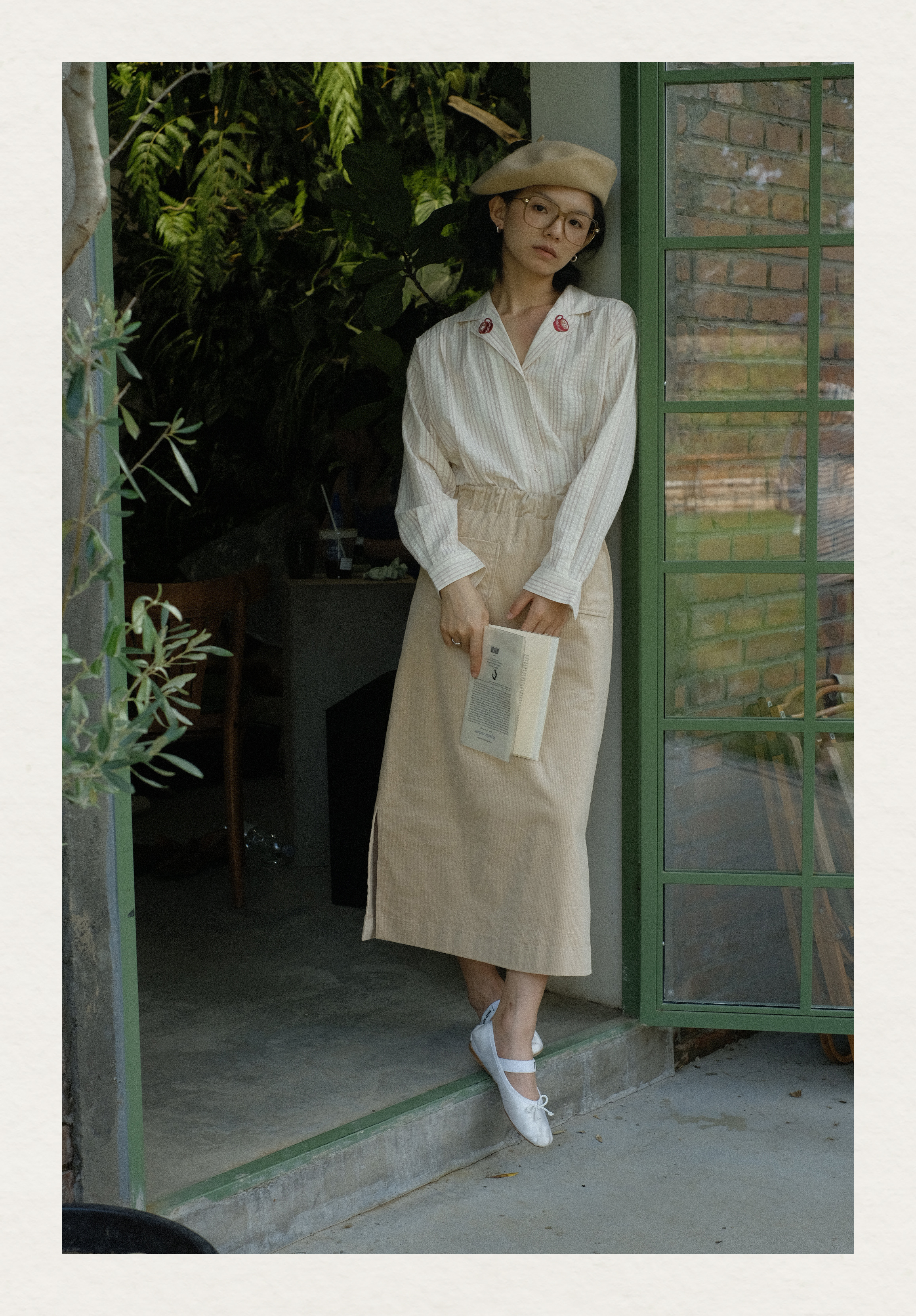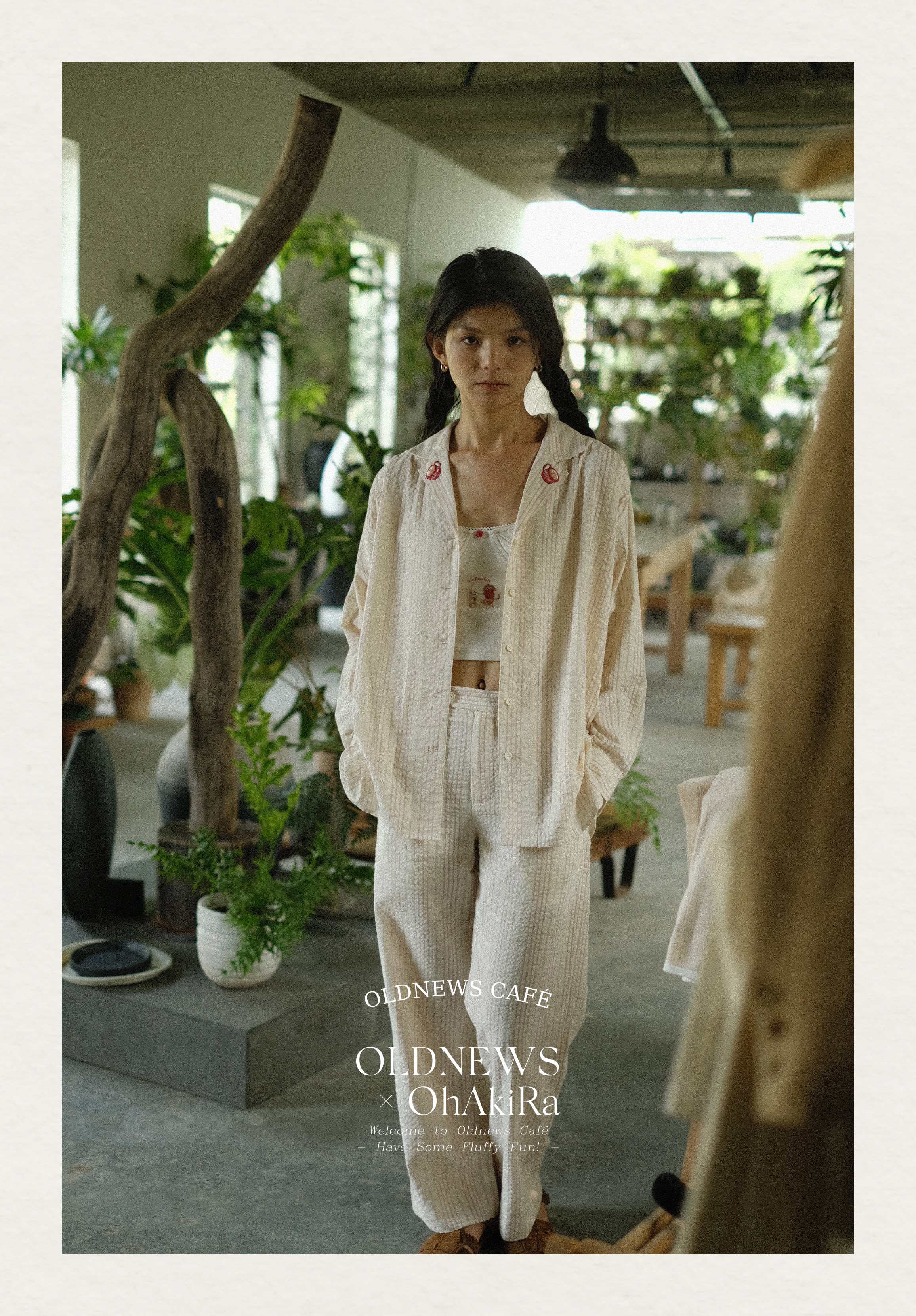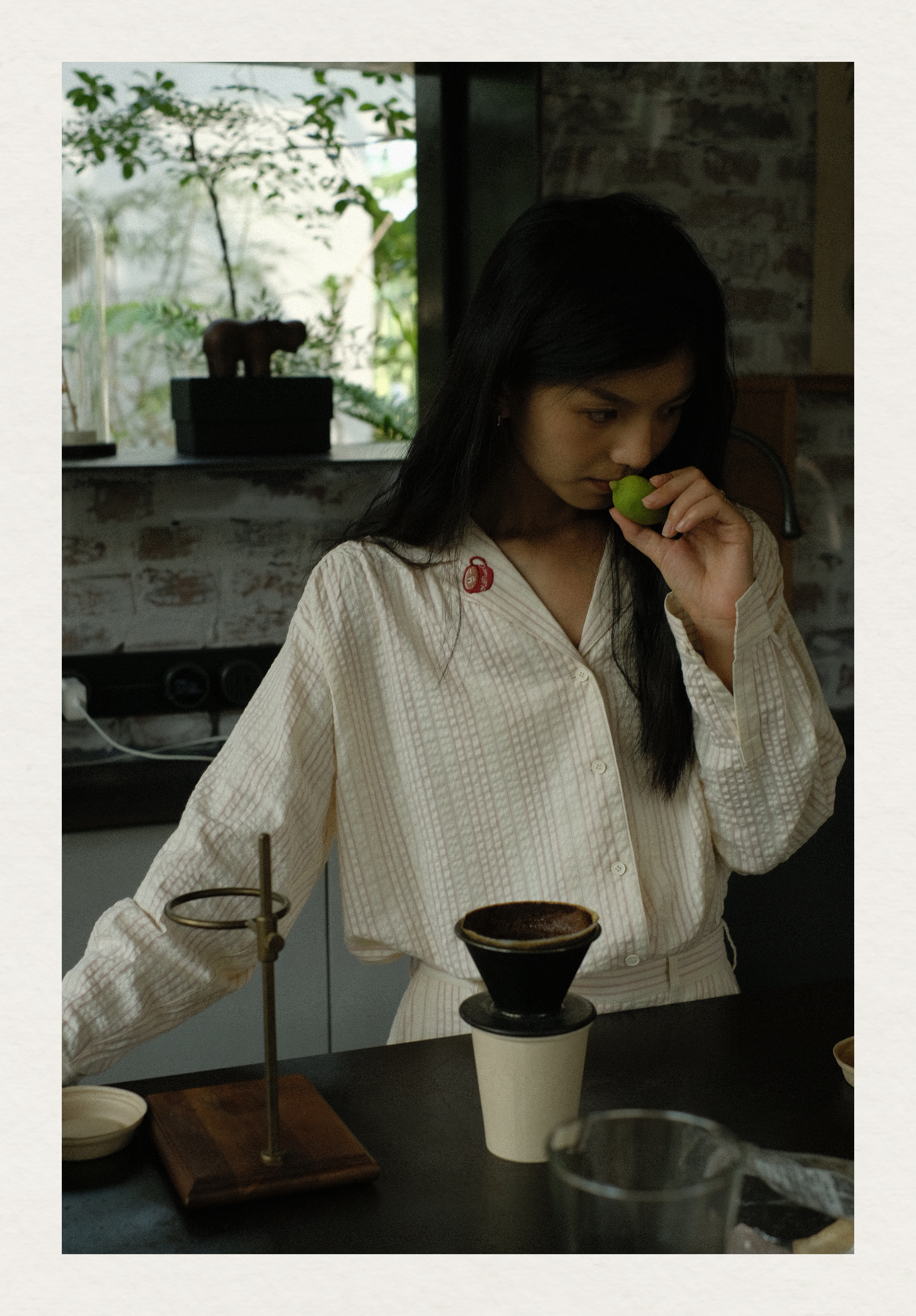 「Bunny Café」粉色条纹小兔咖啡杯刺绣衬衫套装