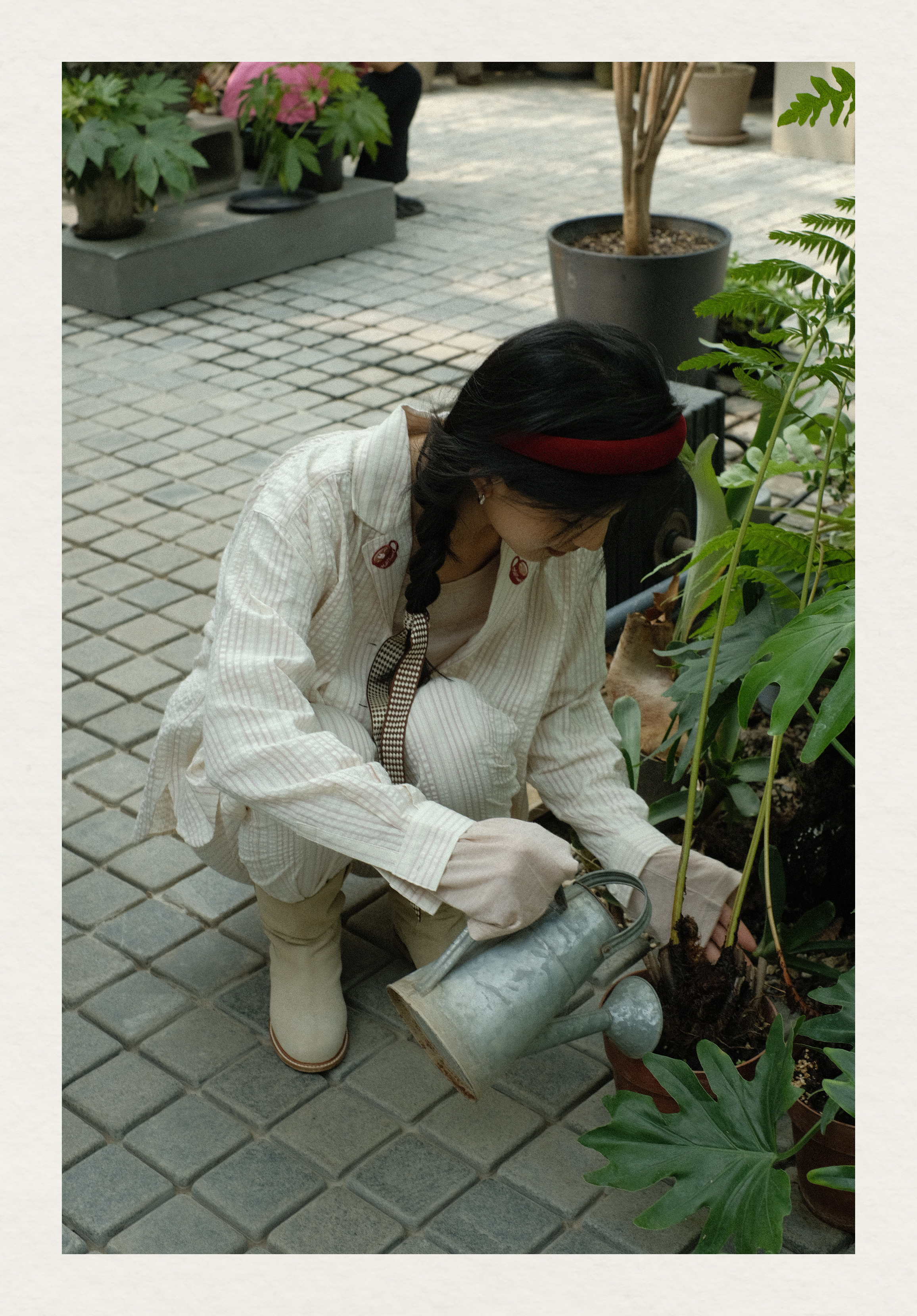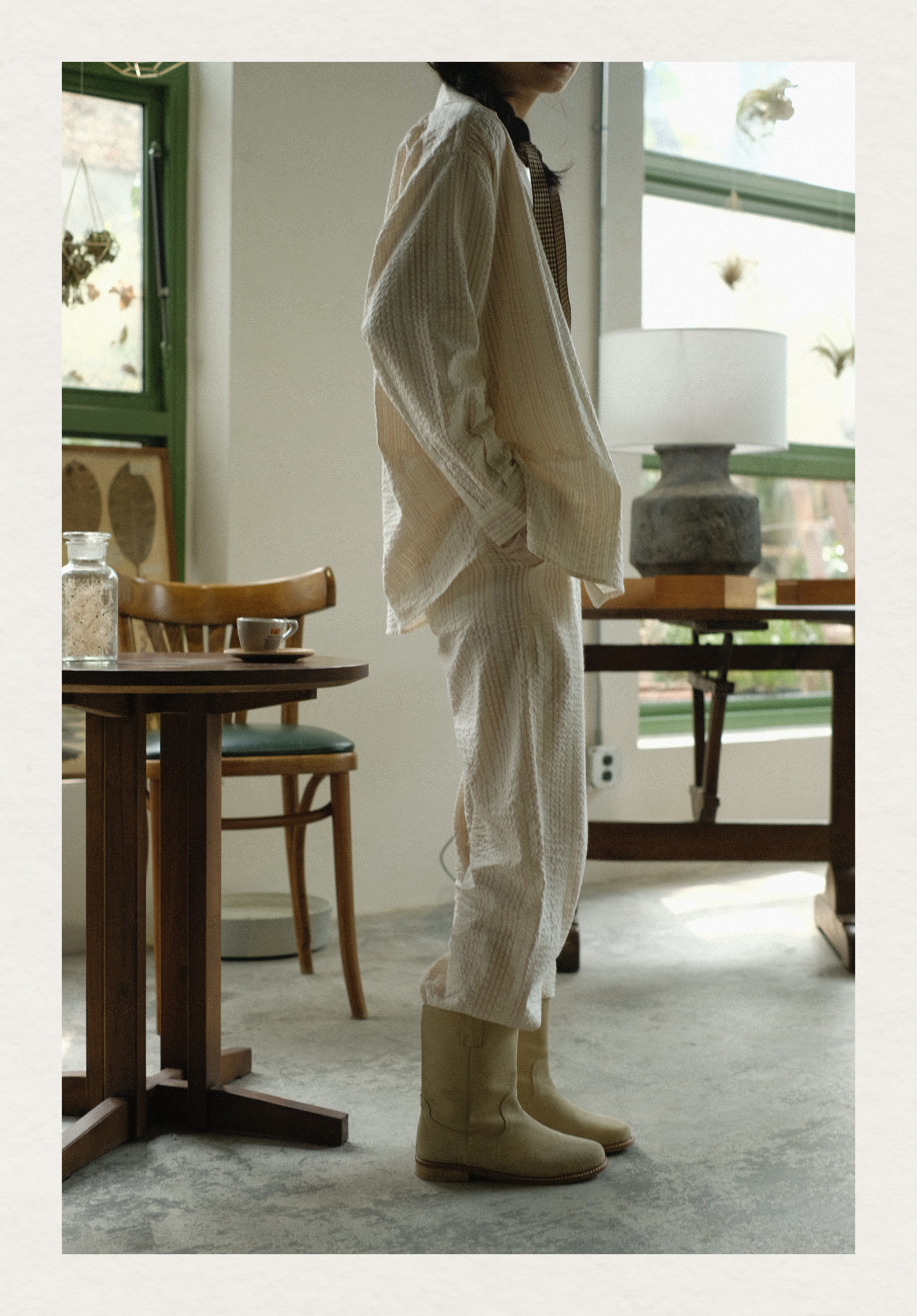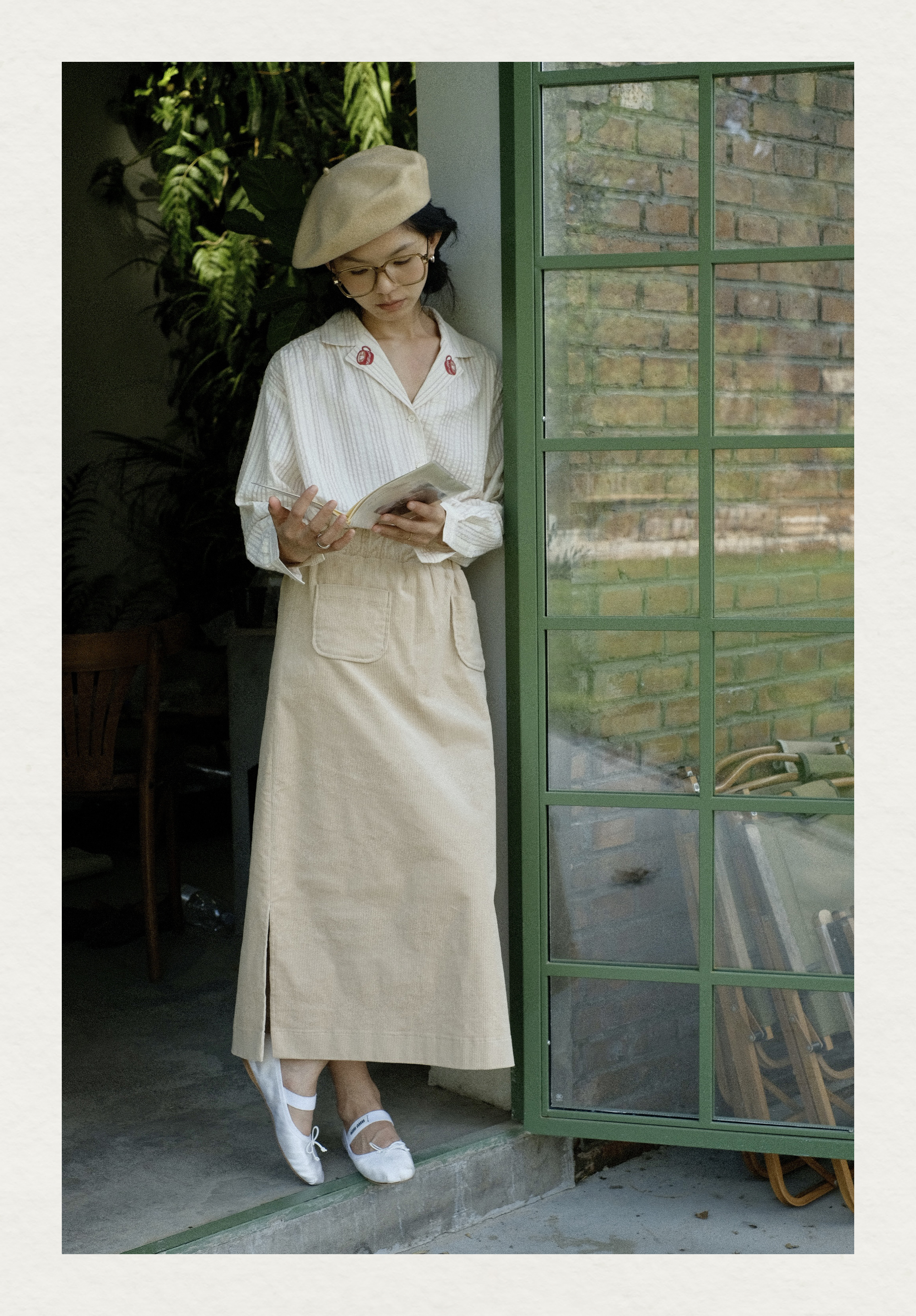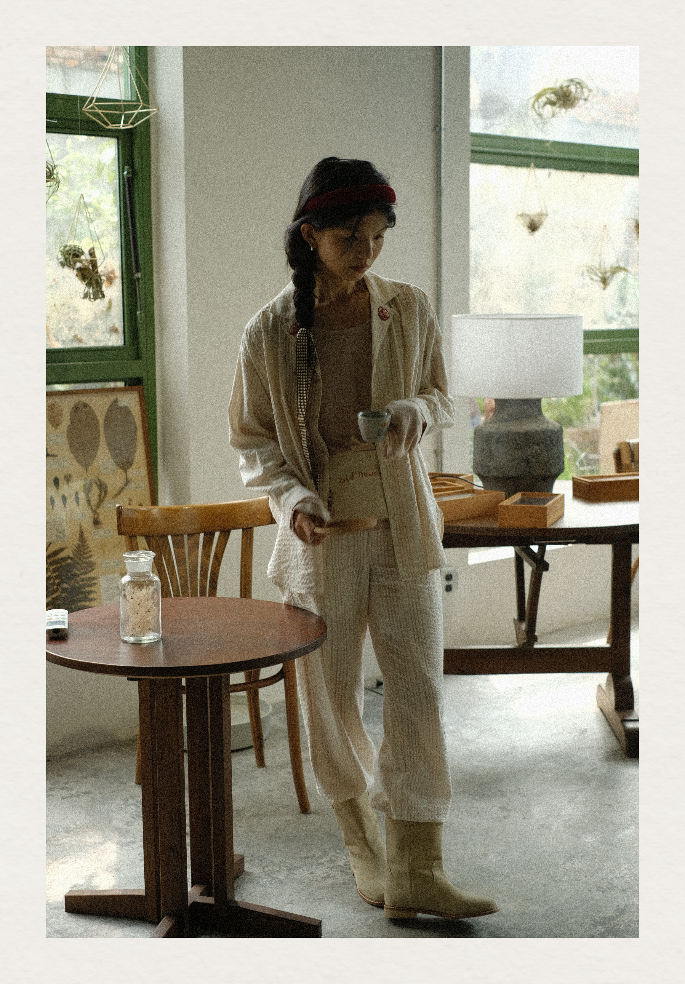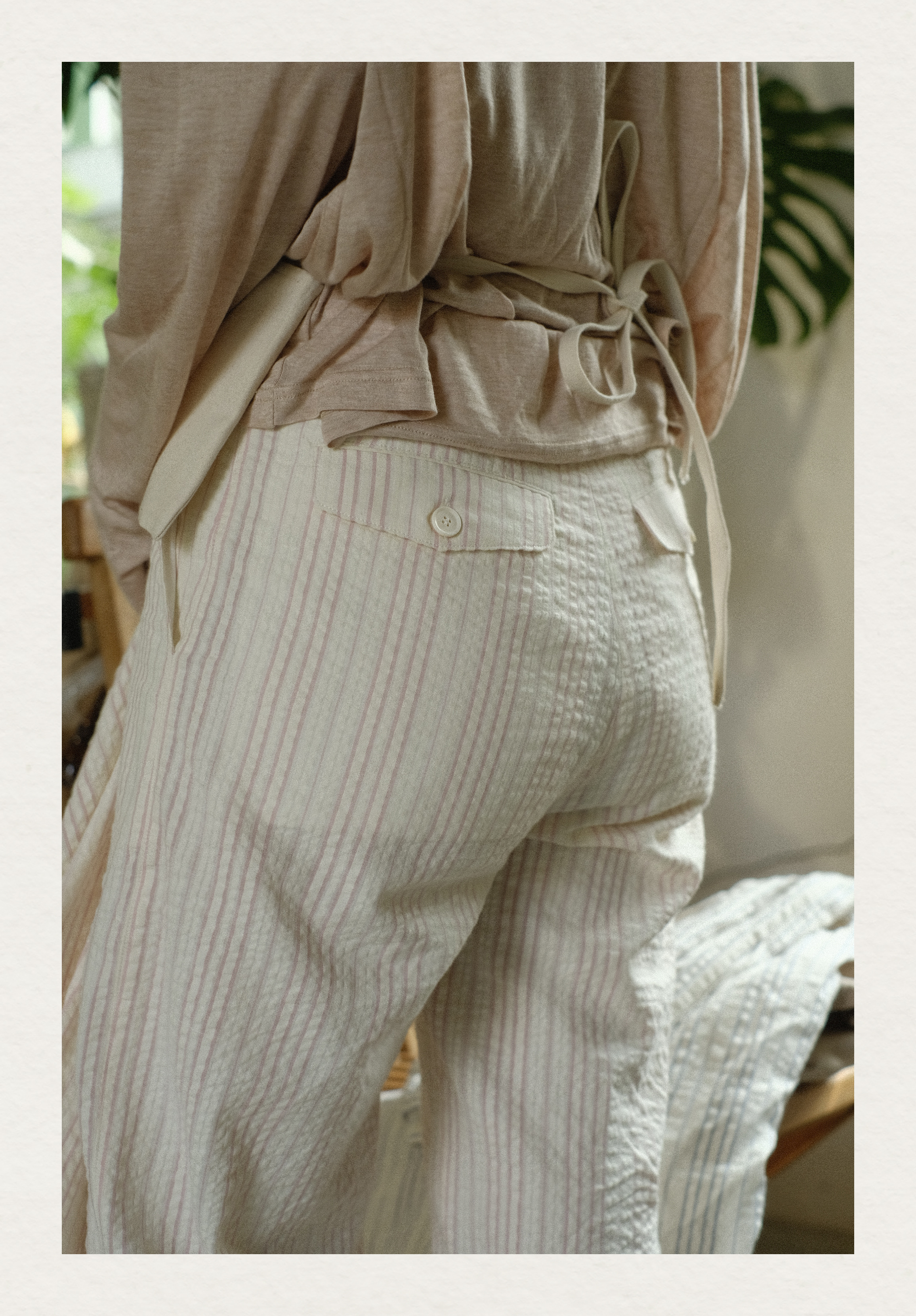 「Bunny Café」粉色条纹小兔咖啡杯刺绣衬衫套装