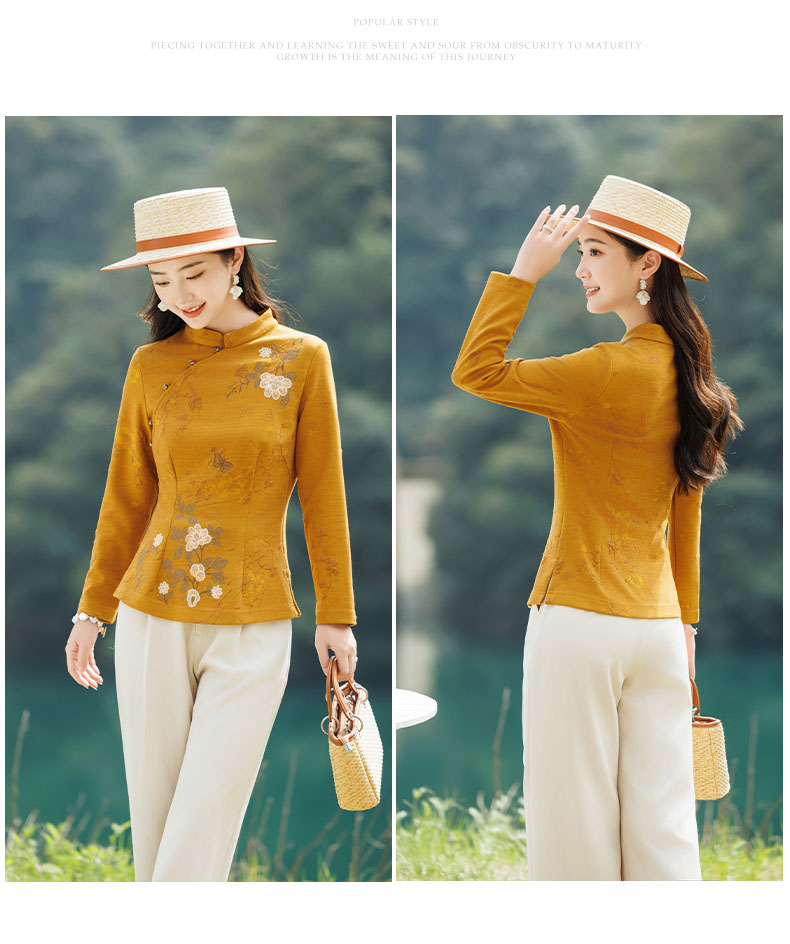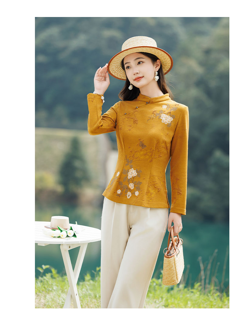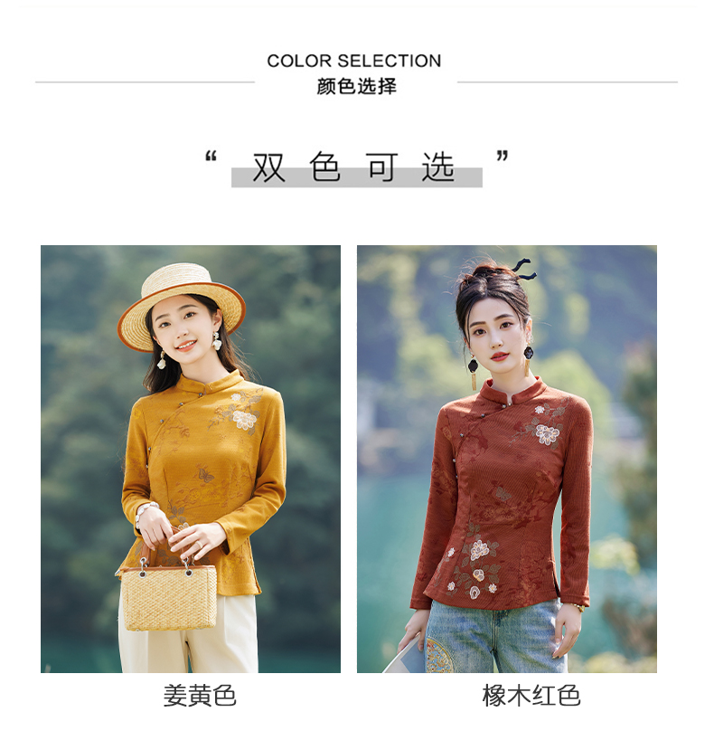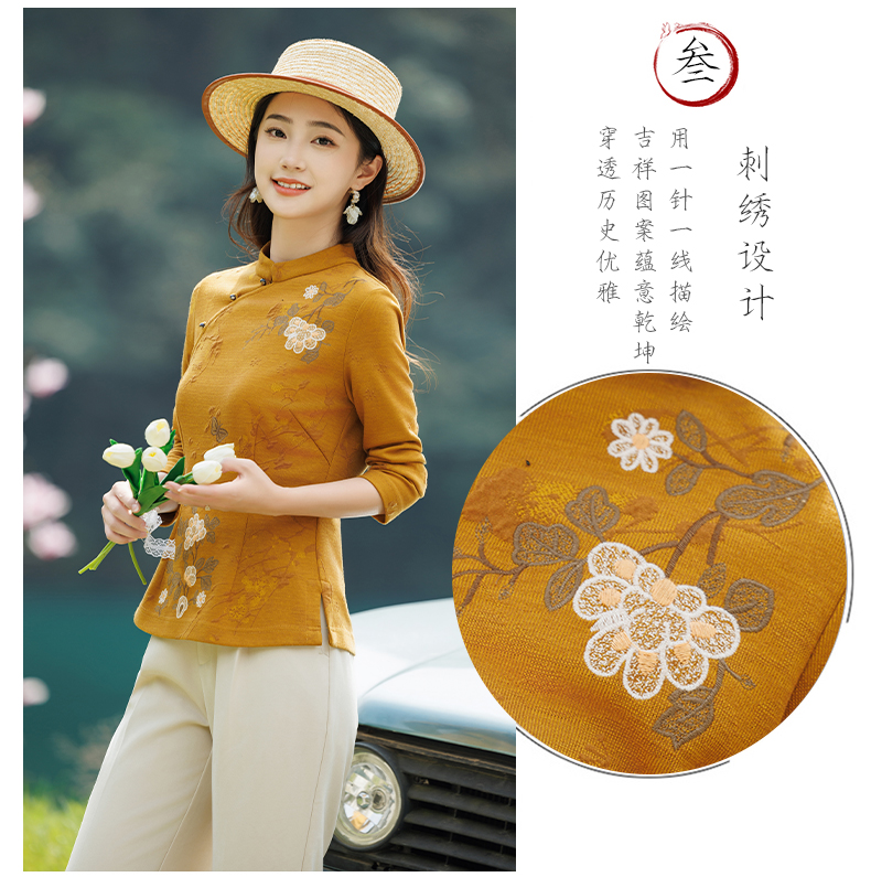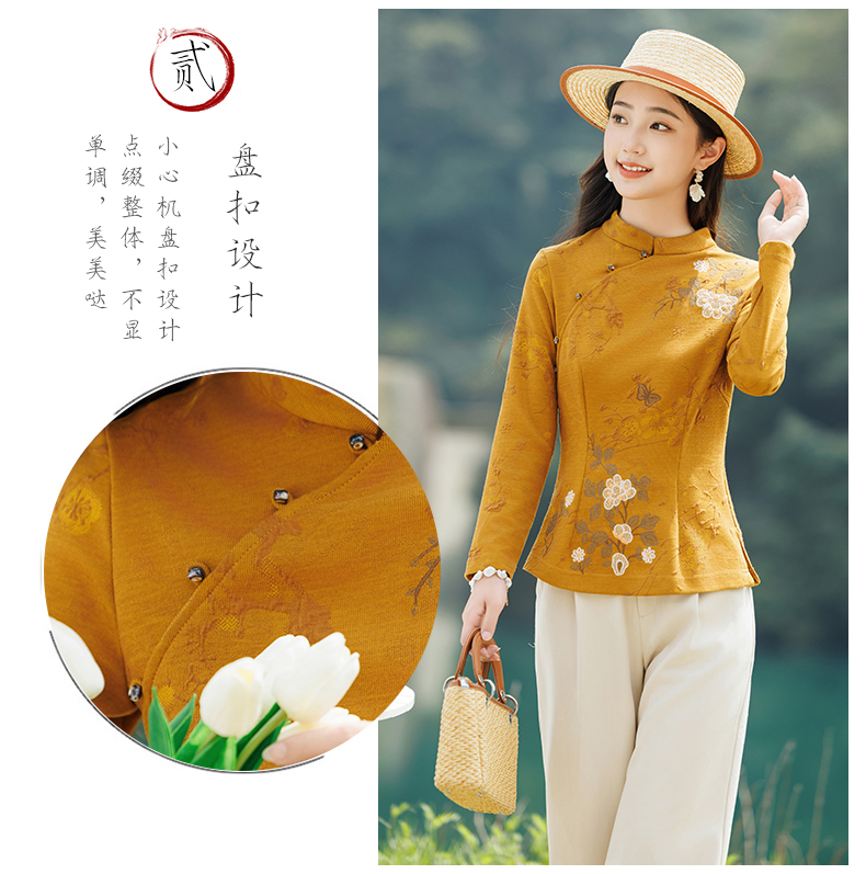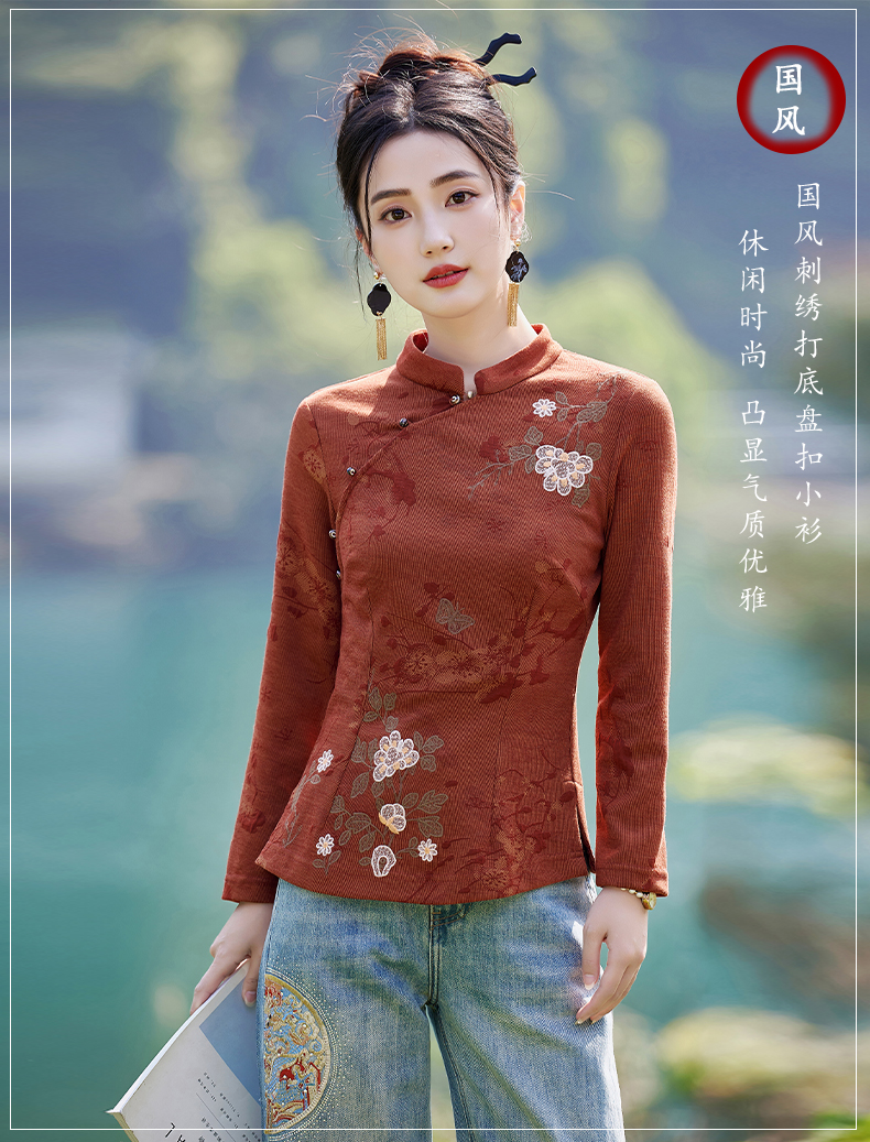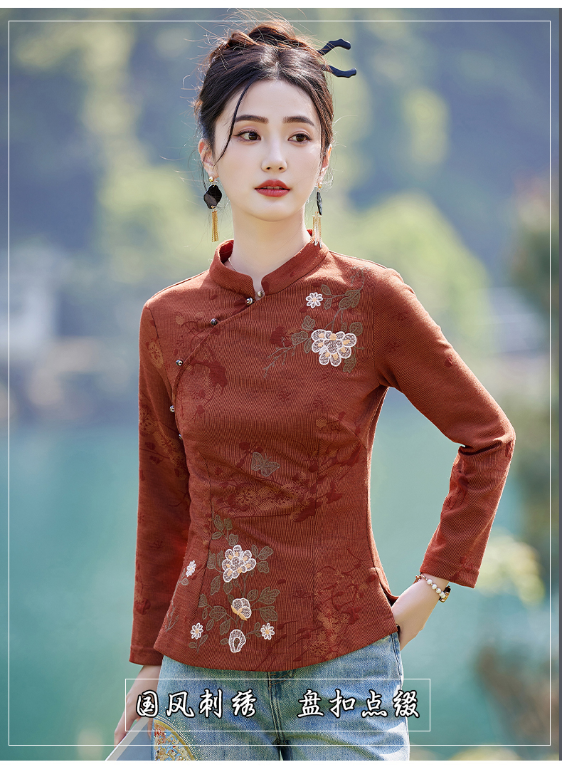 新中式国风修身打底衫,刺绣洋气减龄显瘦长袖上衣斜襟HR-SYY2570-3