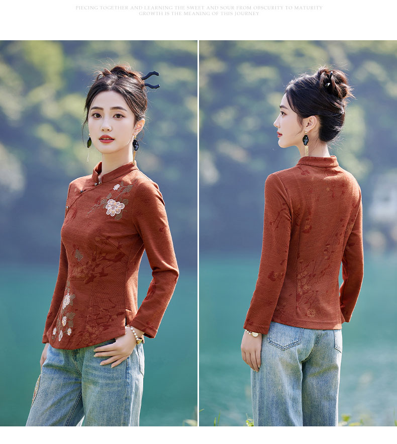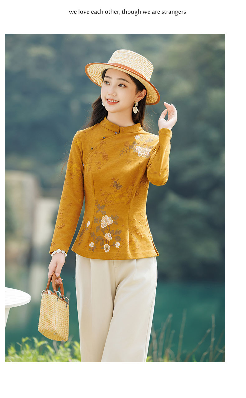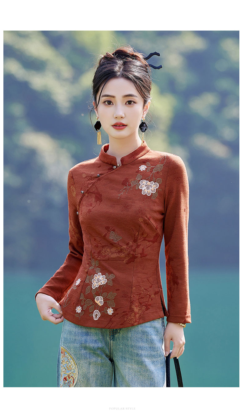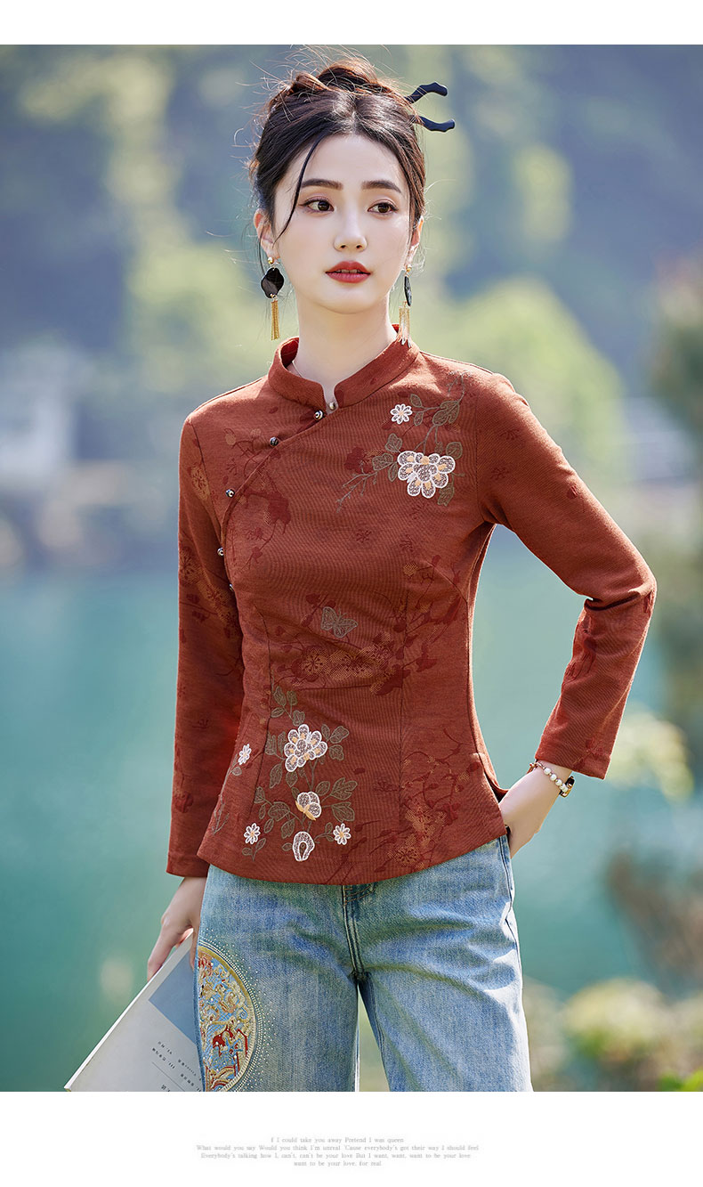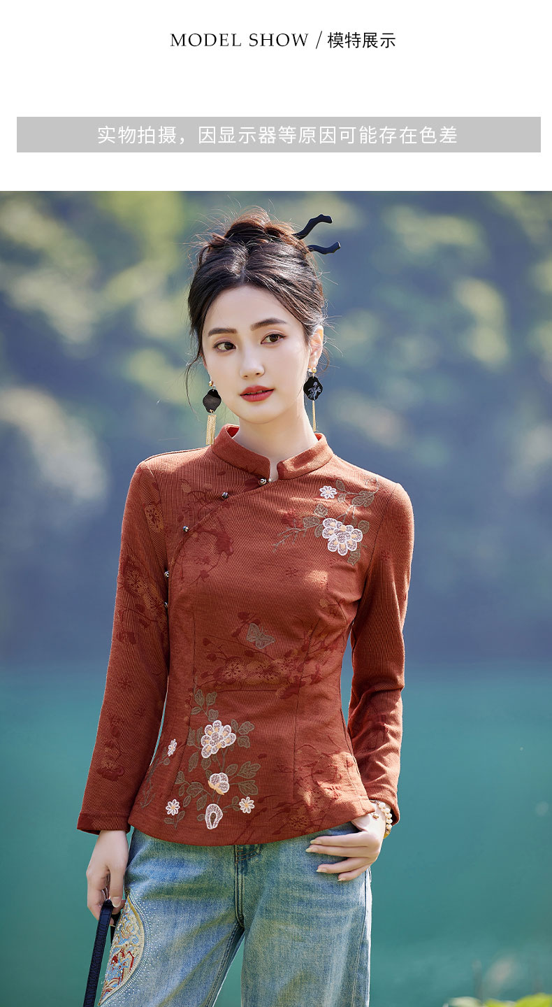 新中式国风修身打底衫,刺绣洋气减龄显瘦长袖上衣斜襟HR-SYY2570-3