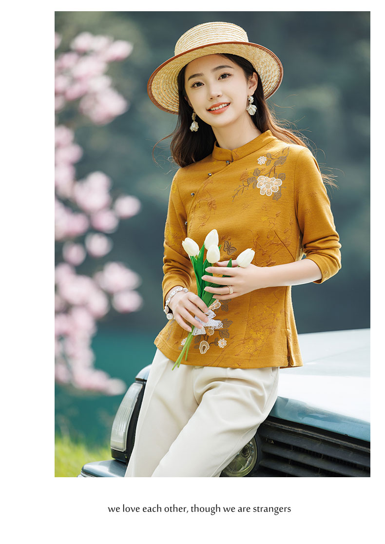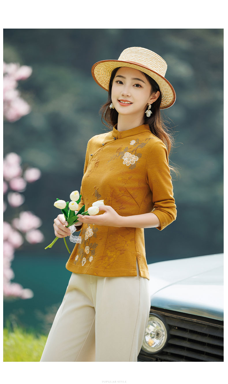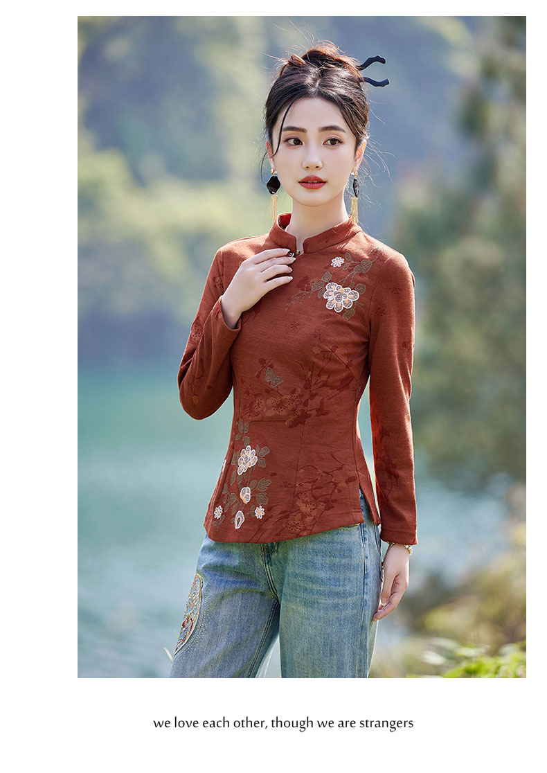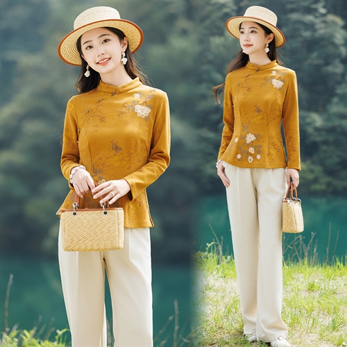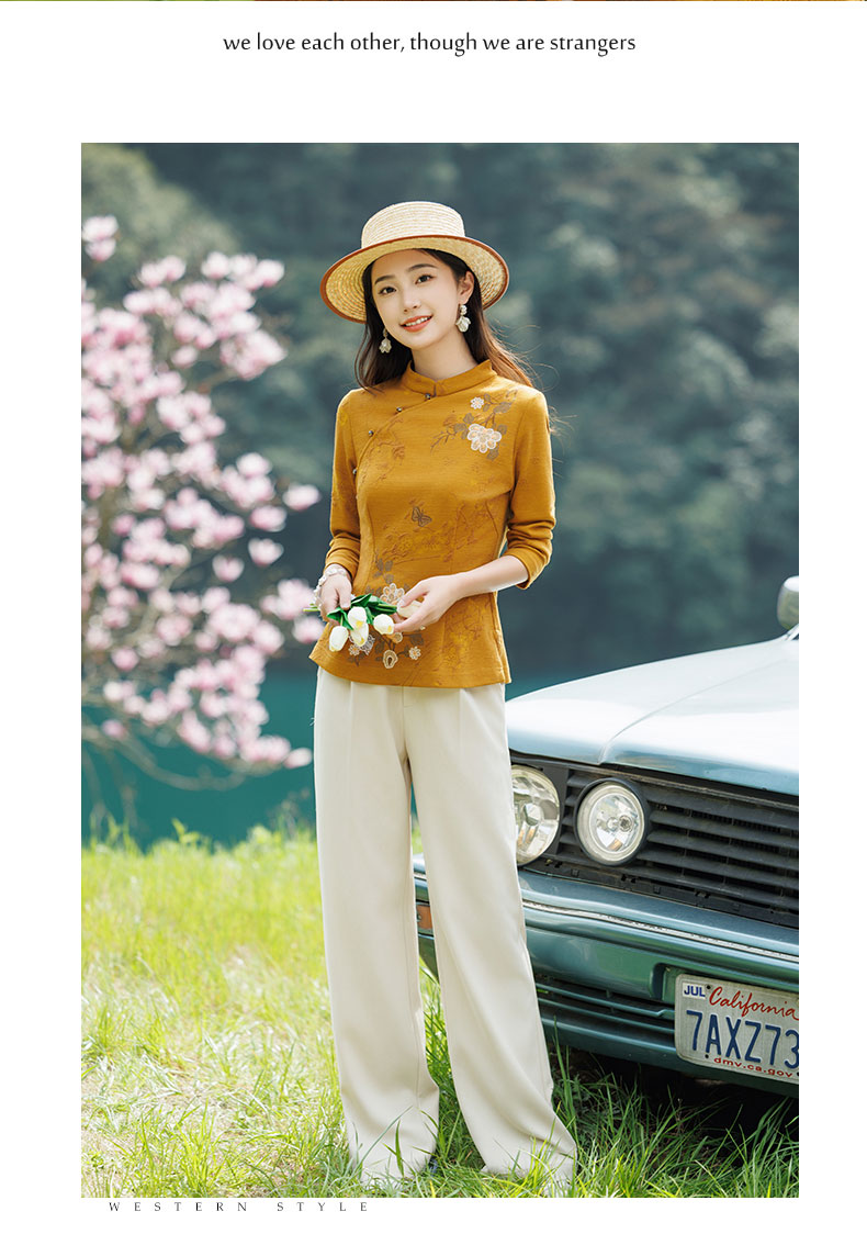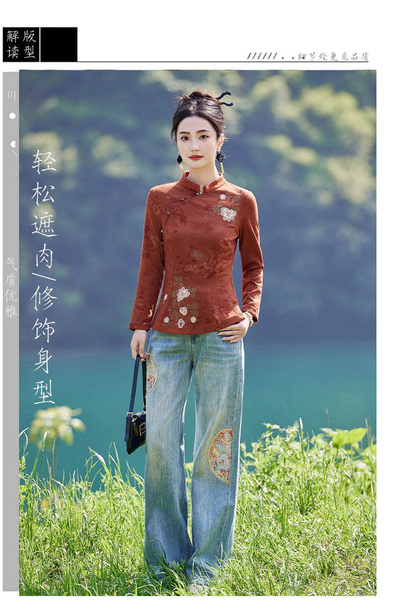 新中式国风修身打底衫,刺绣洋气减龄显瘦长袖上衣斜襟HR-SYY2570-3
