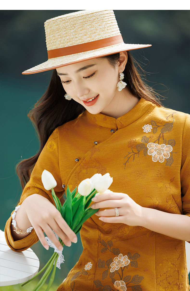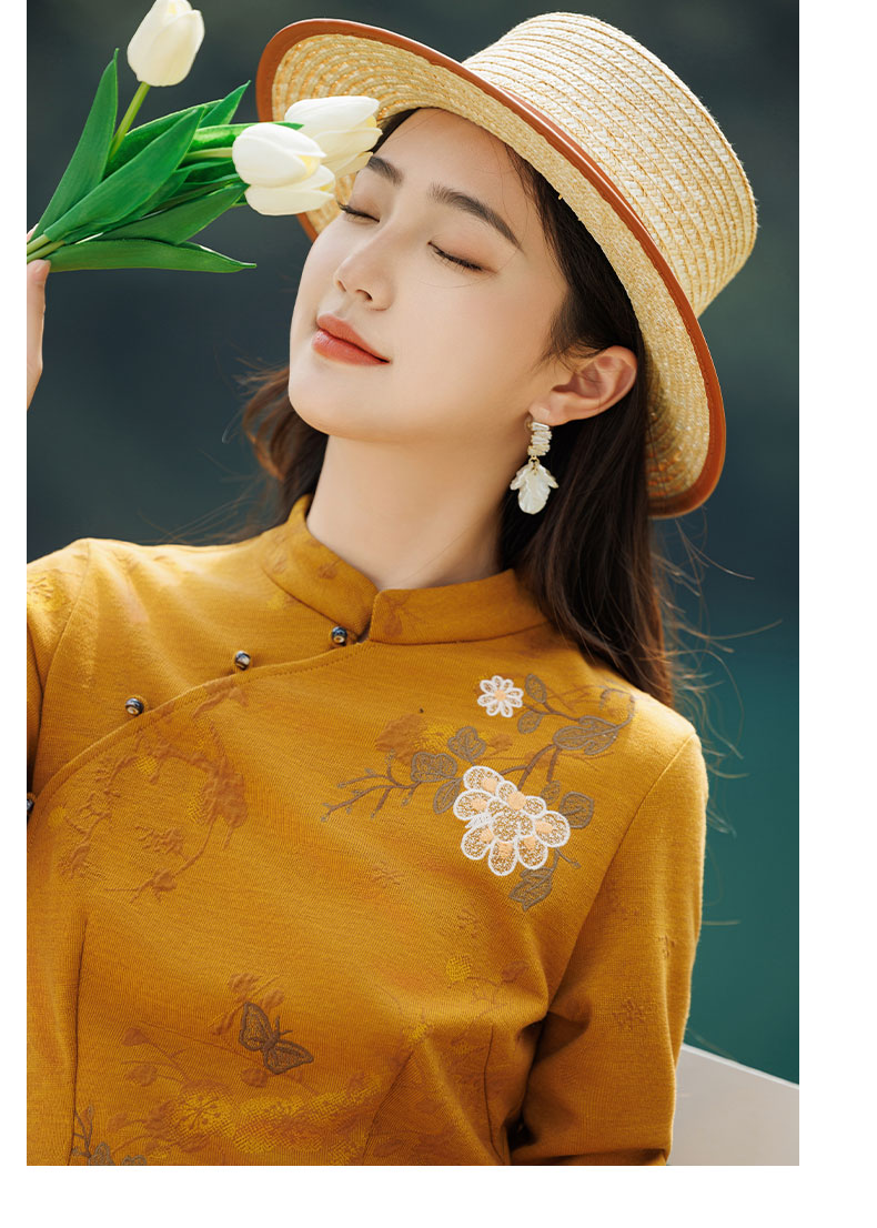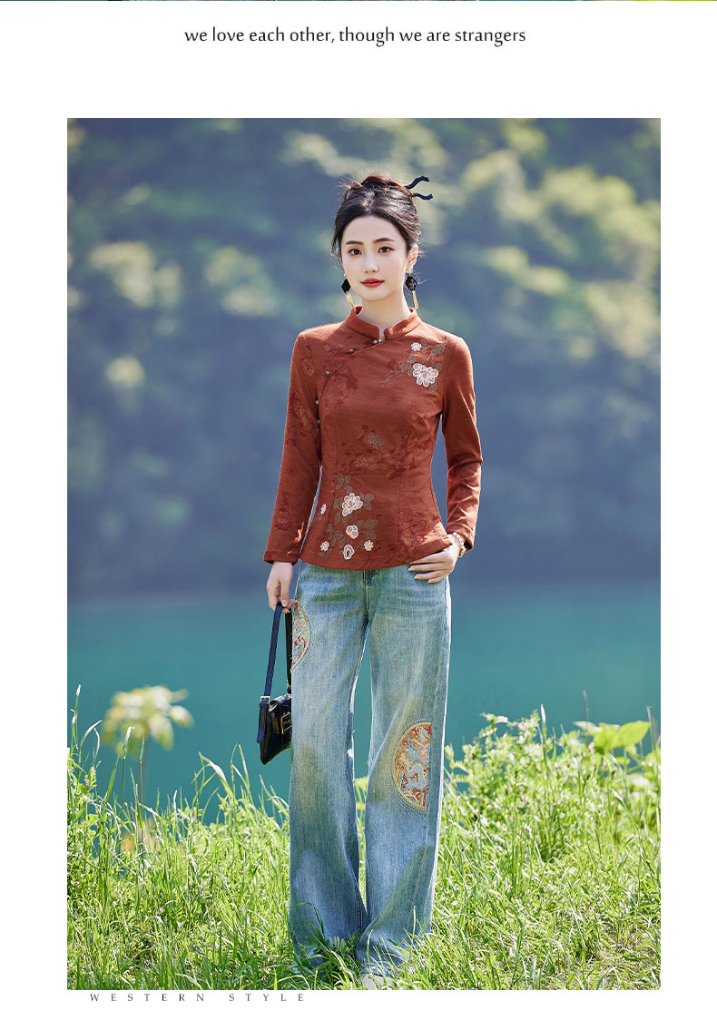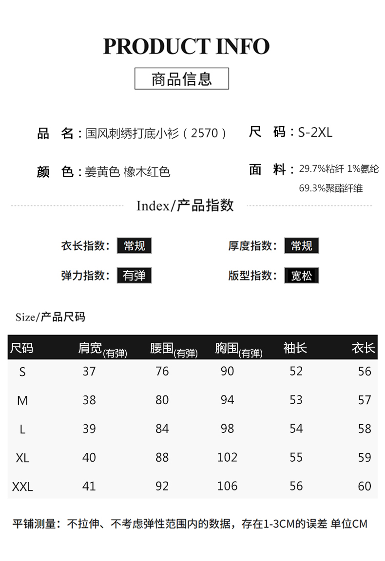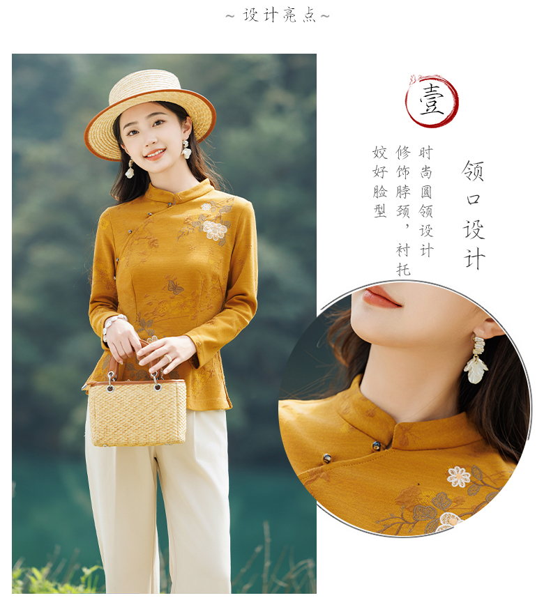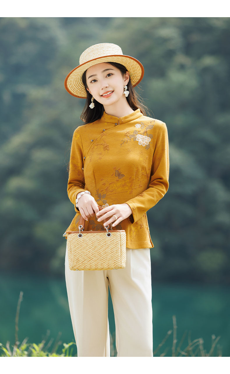 新中式国风修身打底衫,刺绣洋气减龄显瘦长袖上衣斜襟HR-SYY2570-3