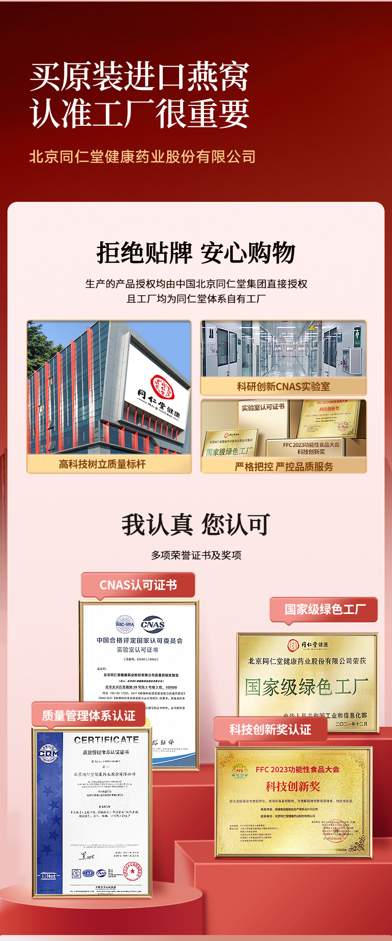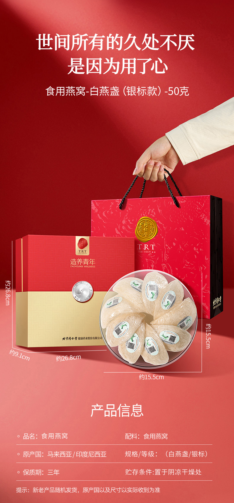 【正宗同仁堂品牌】北京同仁堂 造养青年 马来燕窝(银标款)-50克 用心成就 易泡发SY