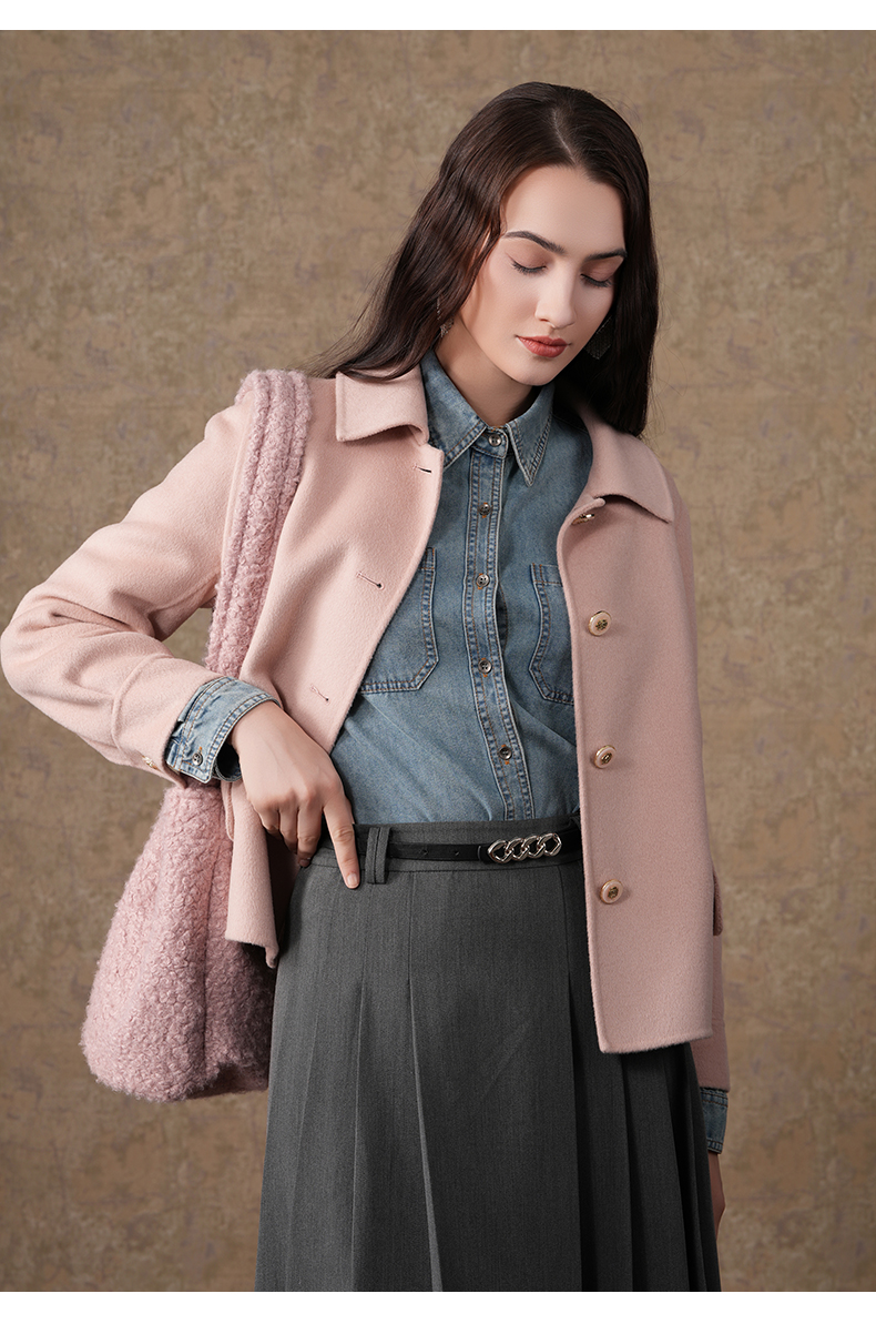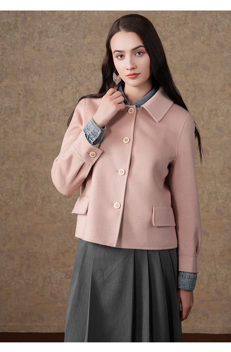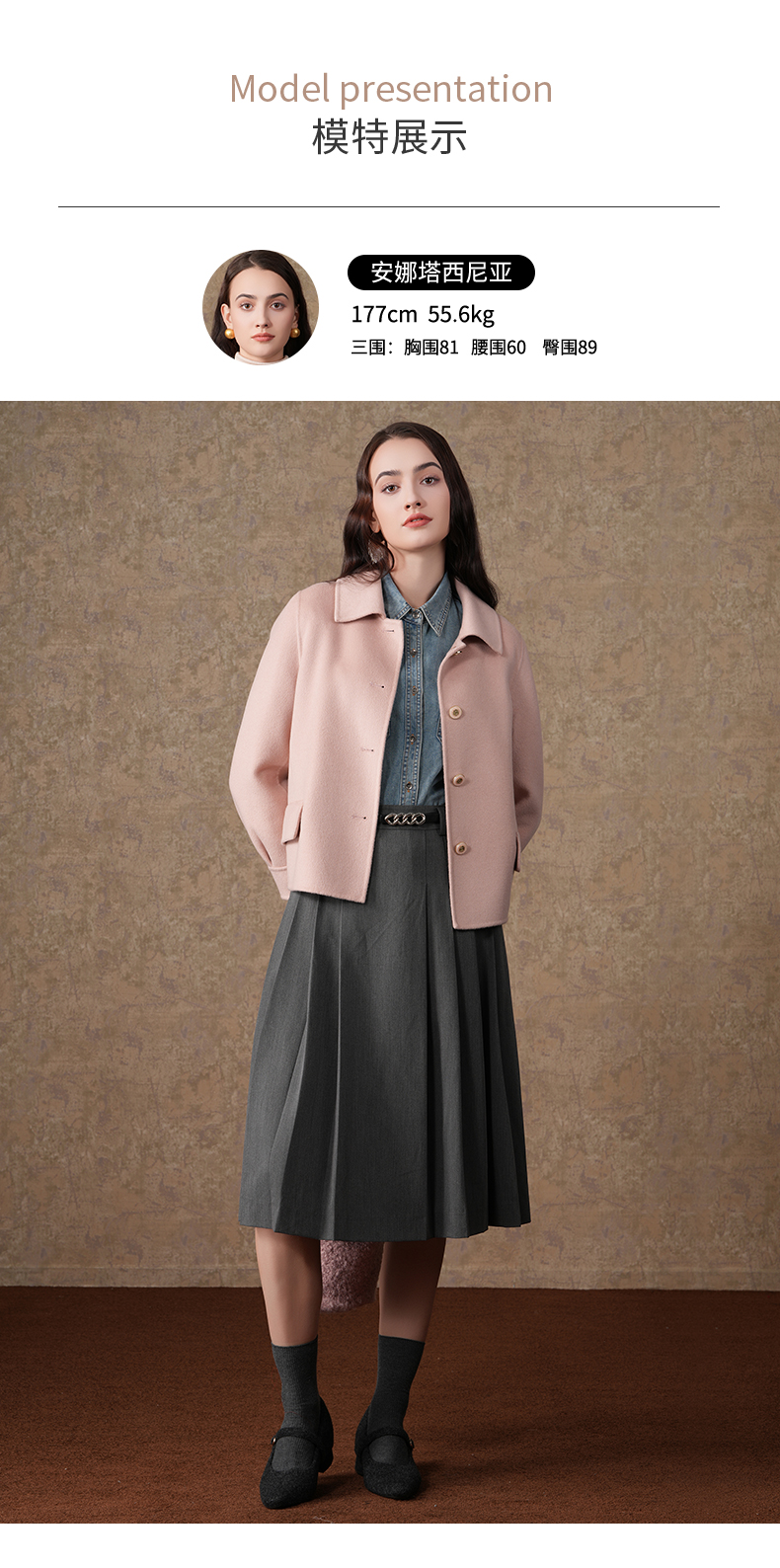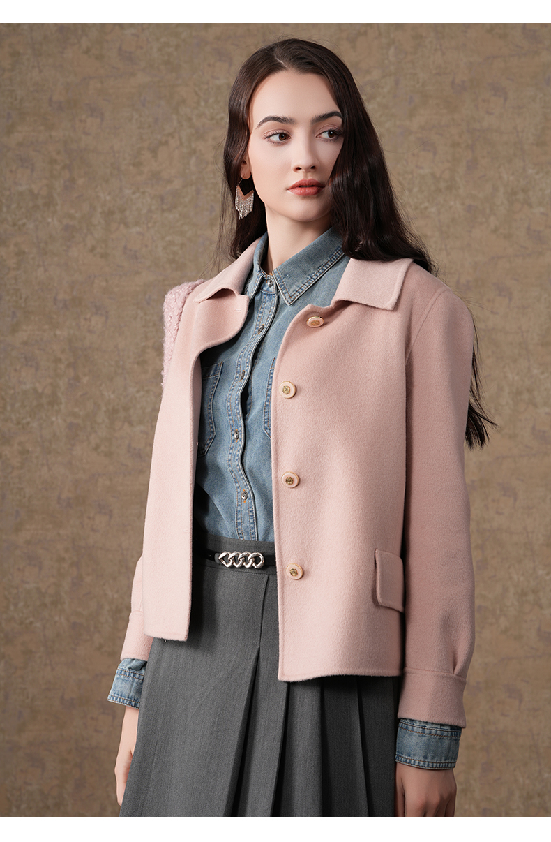 乔万尼新款羊毛羊绒大衣减龄设计毛呢短外套ET4B899