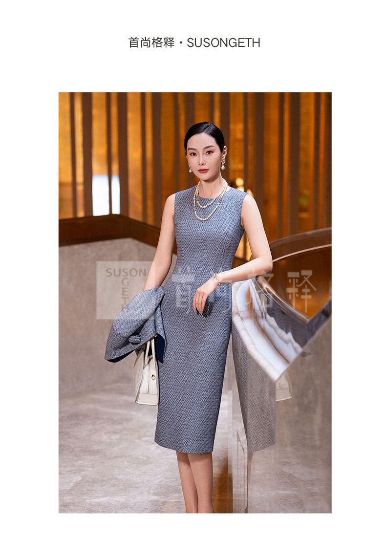 YBY 533H86毛呢小香风连衣裙高级感羊毛背心裙两件套