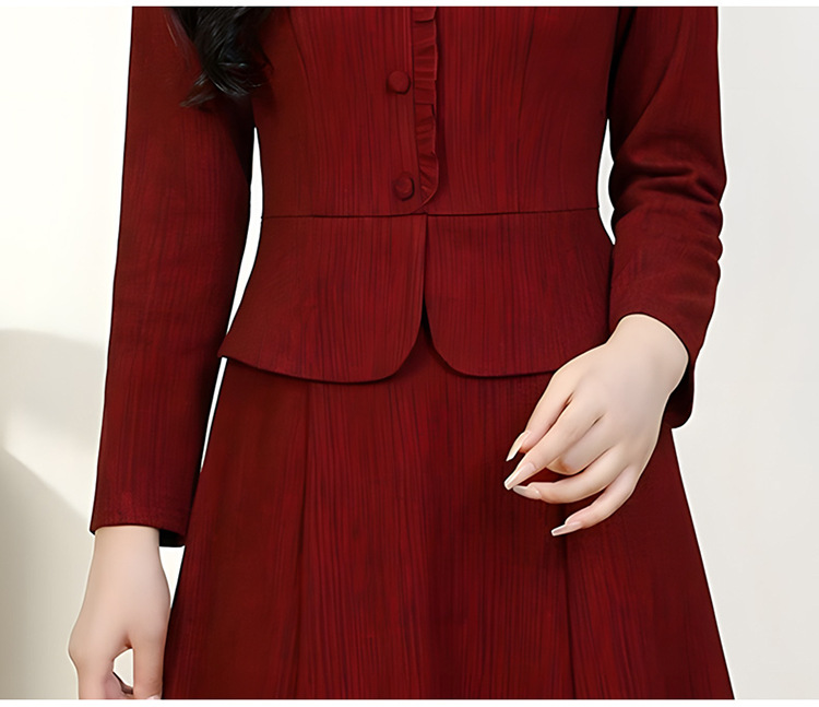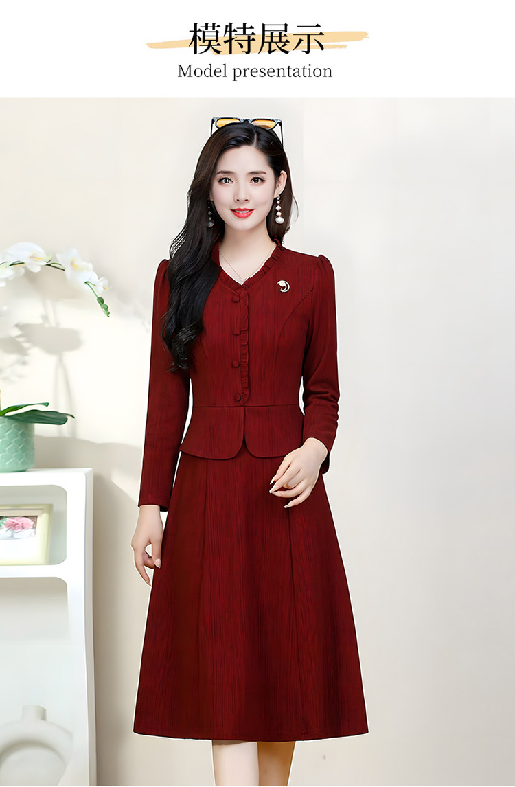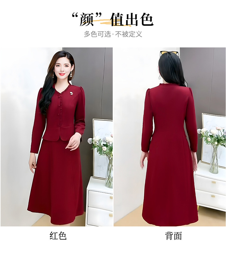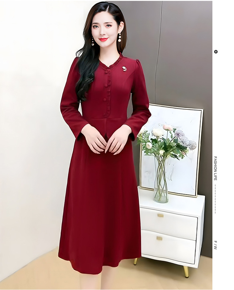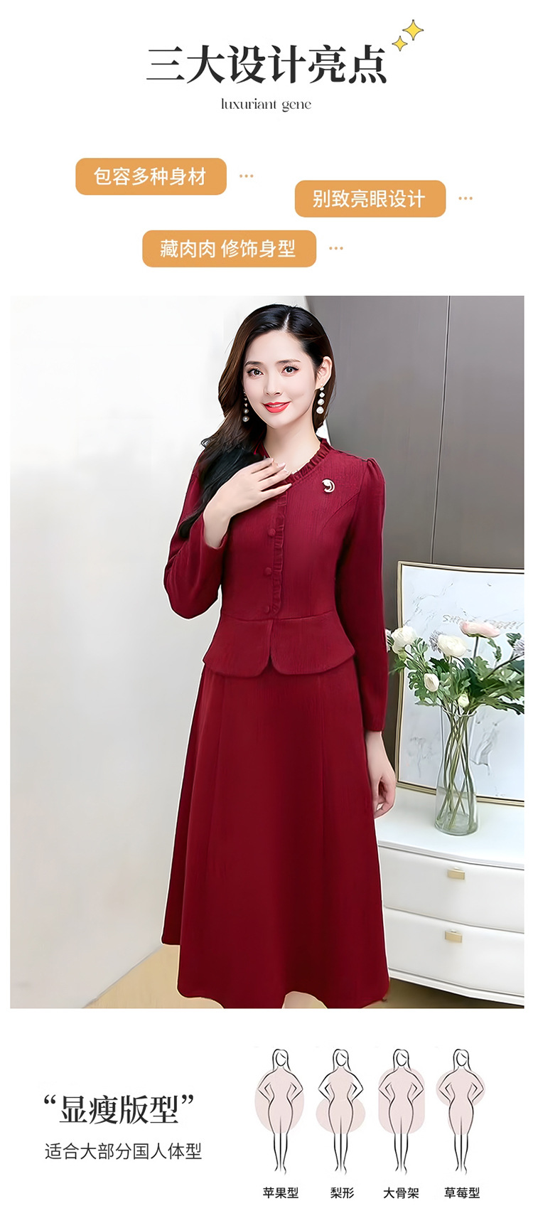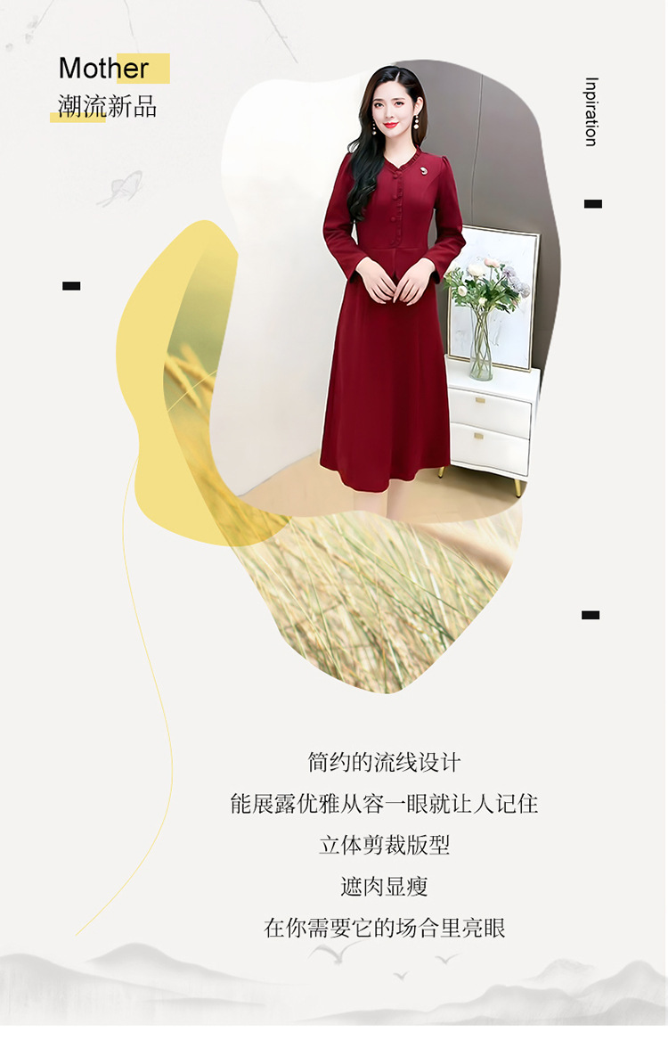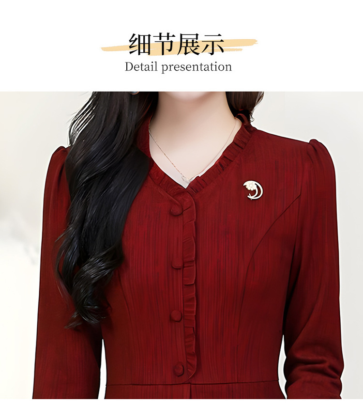 QYM 25AS18连衣裙假两件套木耳边v领气质收腰洋气遮肚显瘦裙