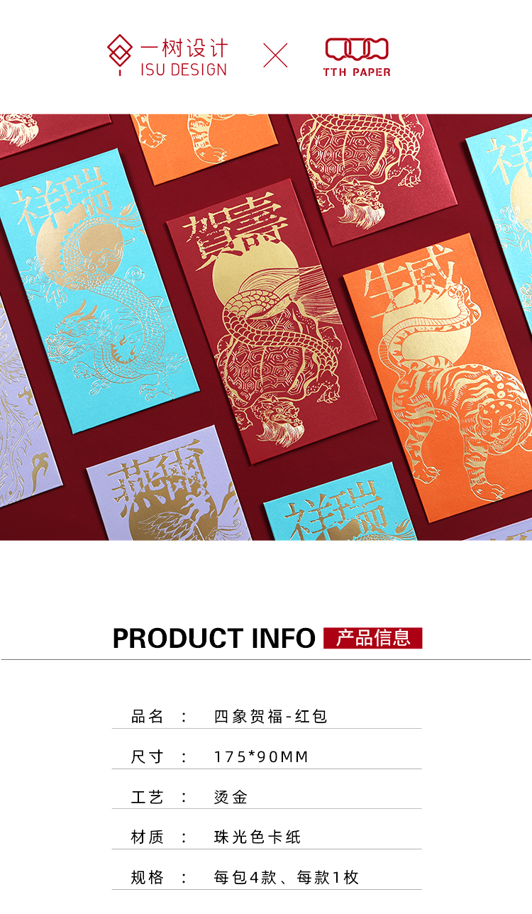 一树设计红包 2022新年春节红包四象贺福压岁钱利是封高档中国风文创