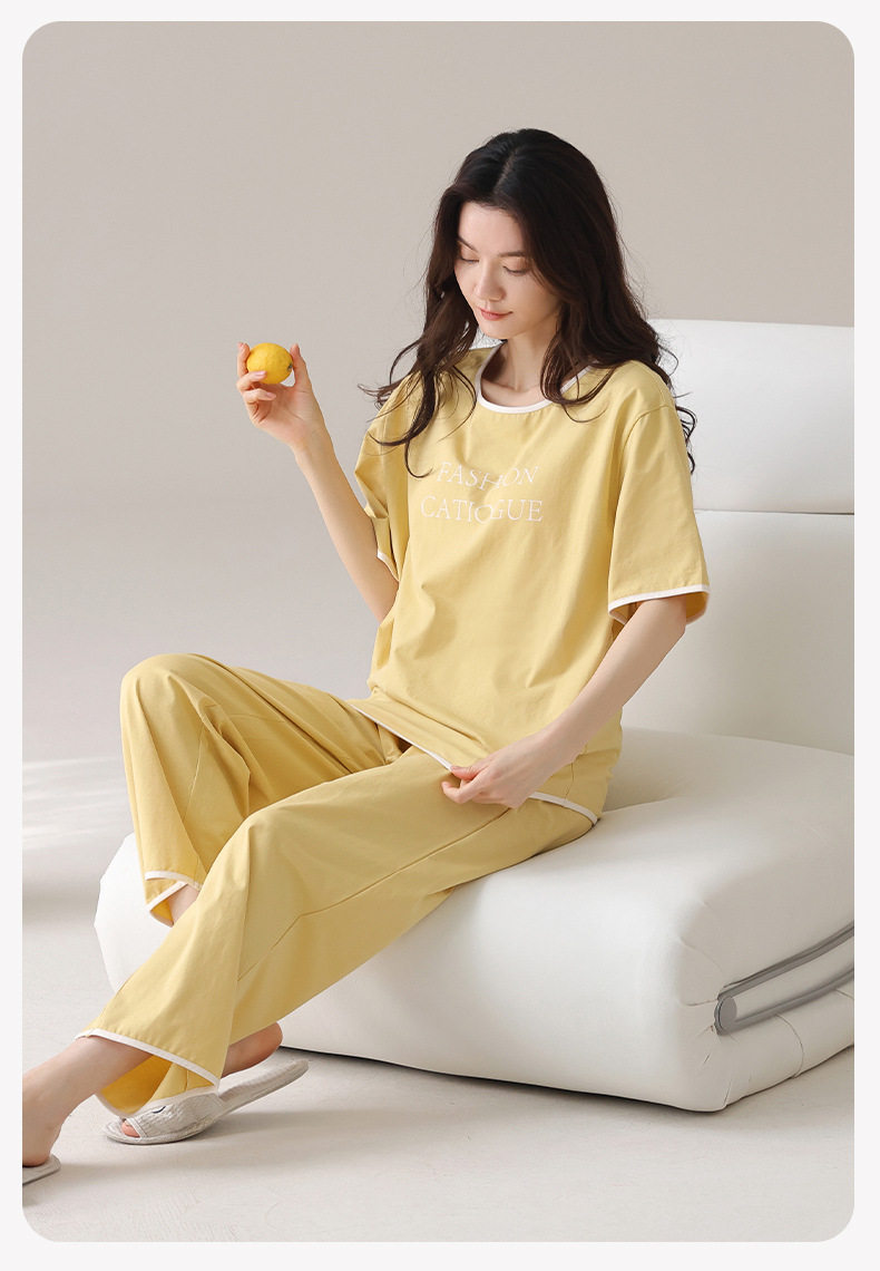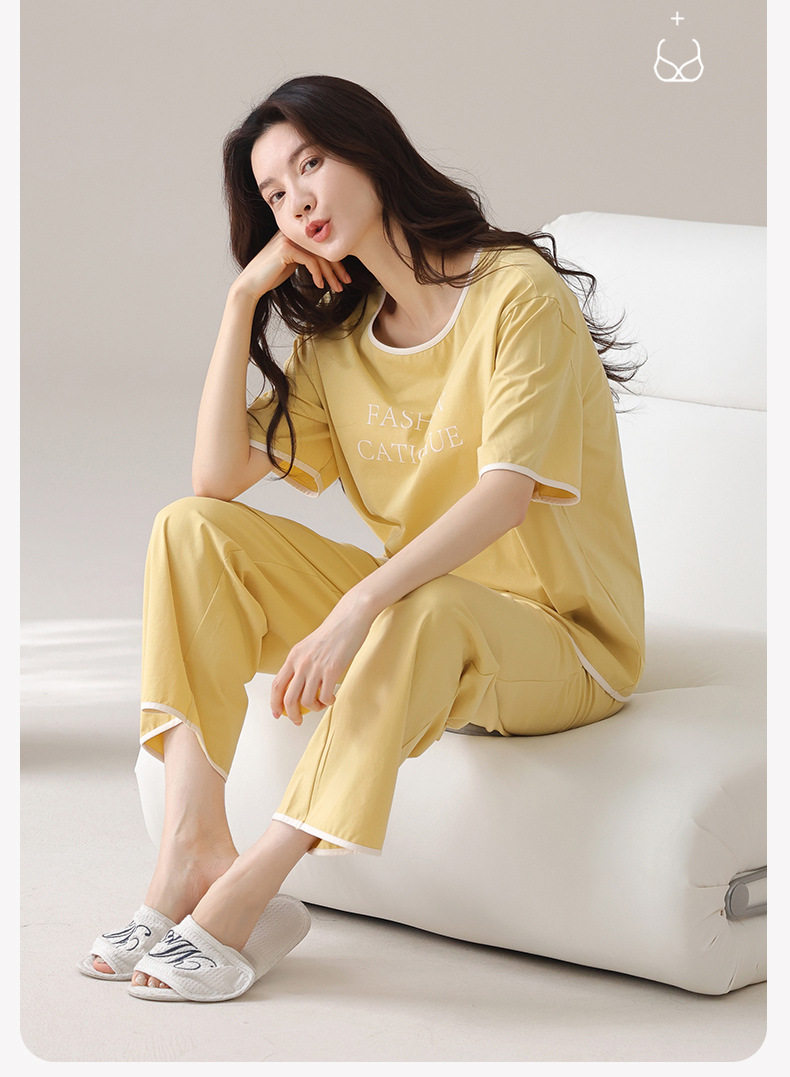夏季莫代尔睡衣女士短袖长裤带胸垫家居服字母印花凉爽休闲套装 JL-LGM6019/LGM6022