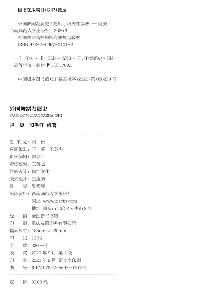书名:外国舞蹈发展史 | ISBN:978-7-5697-0101-2 |