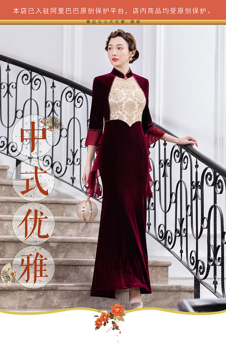DLQ-A3132复古改良旗袍丝绒秋冬宴会礼服修身显瘦连衣裙女