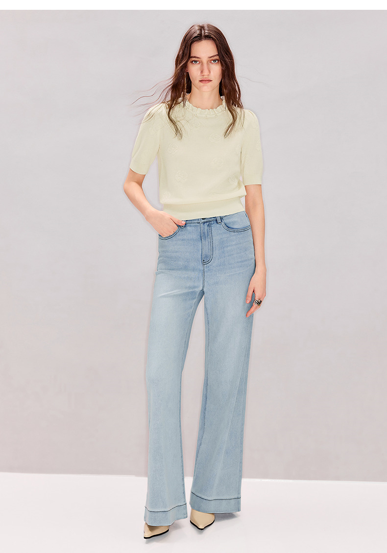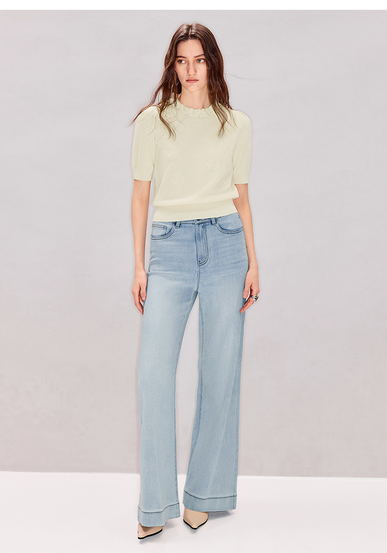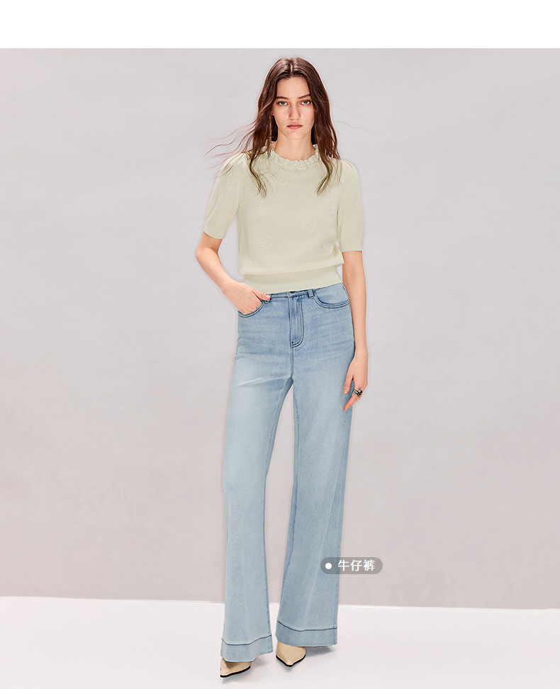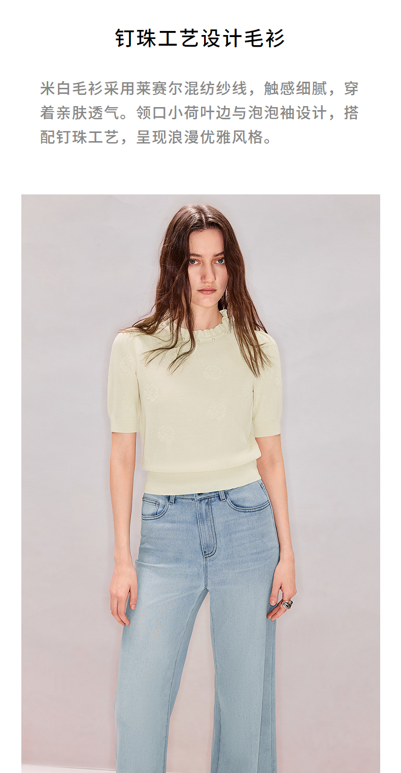 MAXRIENY宫廷风玫瑰提花针织衫26春季新款套头仿珍珠圆领短袖针织(货号:MF80SW007)