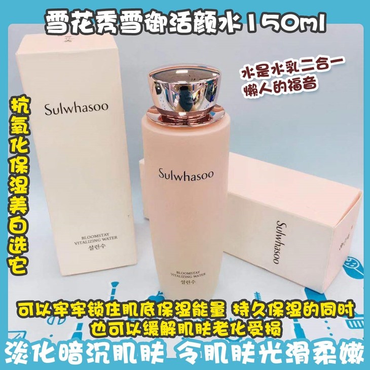 雪花秀雪御活颜水150ml👍水是水乳二合一,懒人的福音🤩!淡淡的梅花香气🌸,质地清爽顺滑🍃。香橙果成分🍊可以牢牢锁住肌底保湿能量💦,持久保湿的同时,也可以缓解肌肤老化受损💆,让基础护理变得简单又高效⬆。梅花萃取物,提升肌肤透亮光泽✨,淡化暗沉肌肤,令肌肤光滑柔嫩☁。抗皱要趁早❗延迟年龄要从年轻是护肤做起哦👅,抗氧化保湿美白选它!