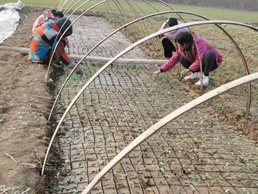在土地上画出方格子,创造出一个个泥土版的育苗盆。