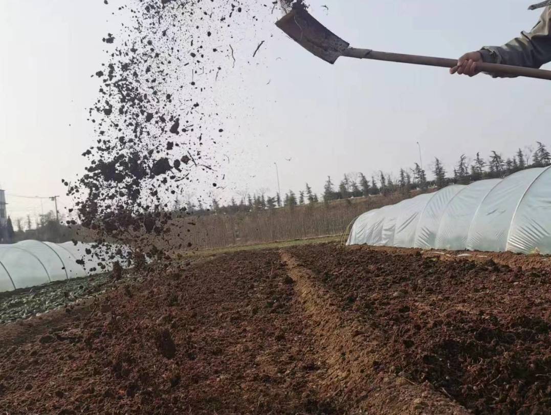 土地平整后,施用充分发酵后的羊粪,作为蔬菜种植的底肥。