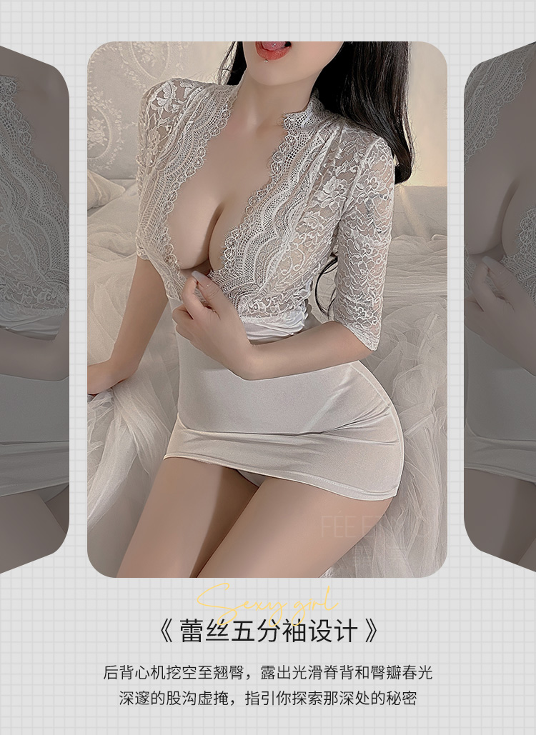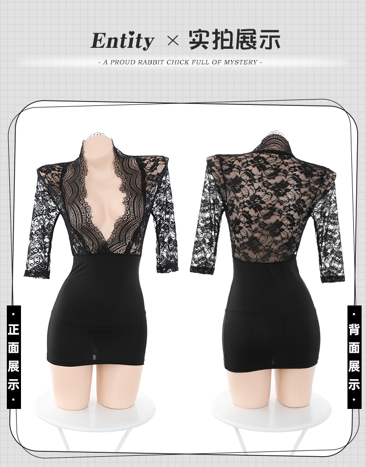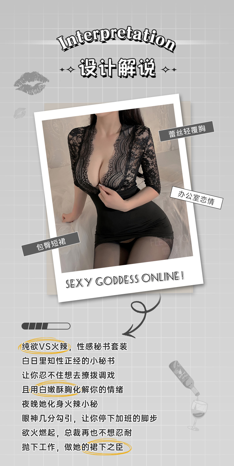 【风情小秘】霏慕 深V蕾丝性感包臀秘书裙6757
