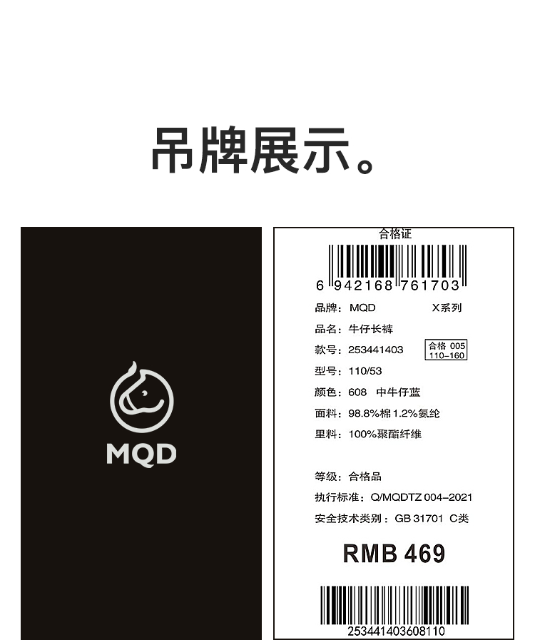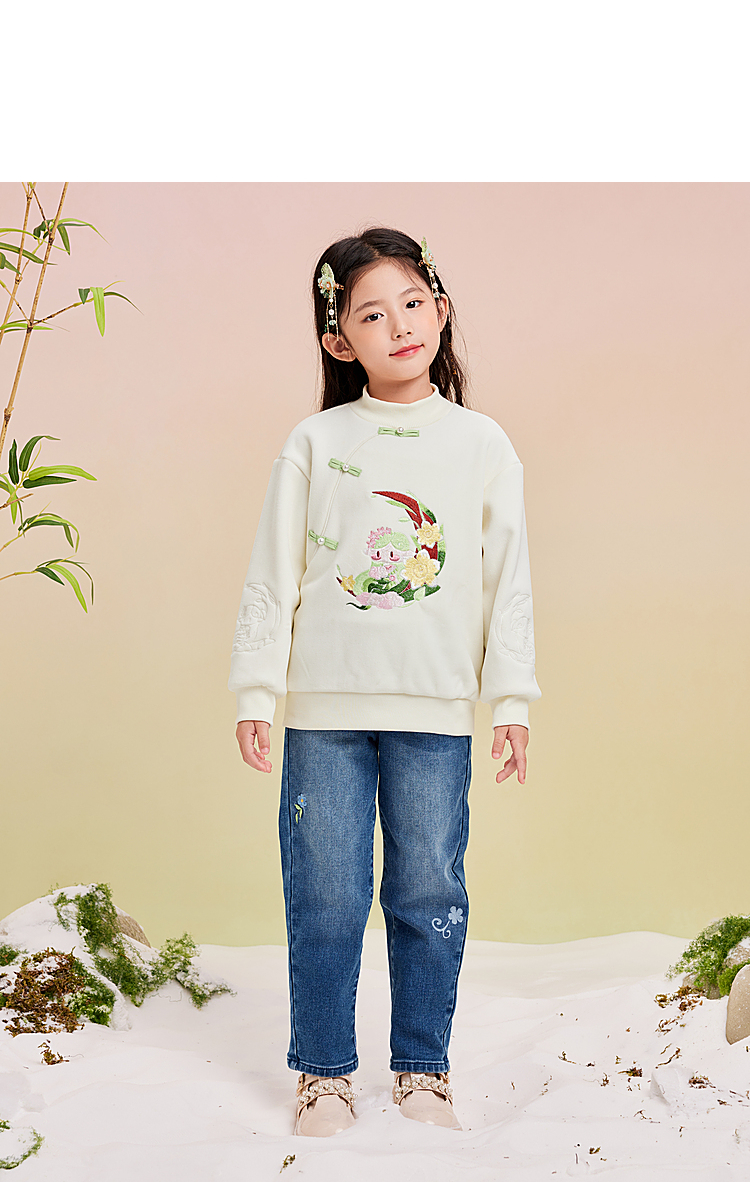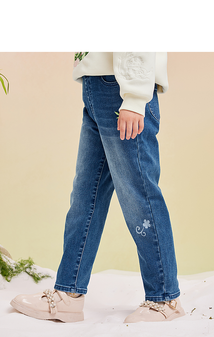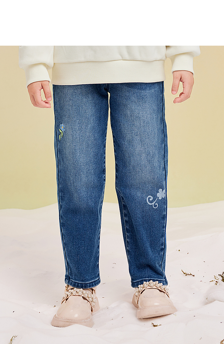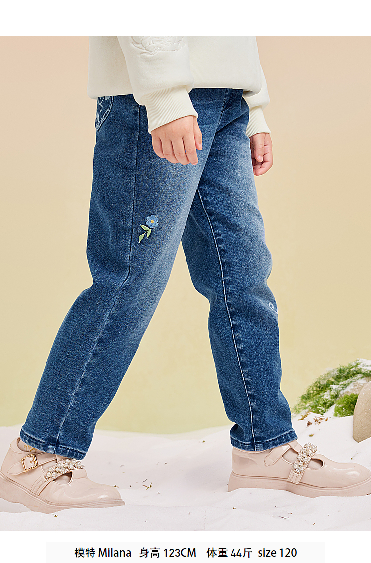 【秒】【专柜同款】MQD马骑顿童装女童加绒牛仔长裤中大儿童保暖裤子潮