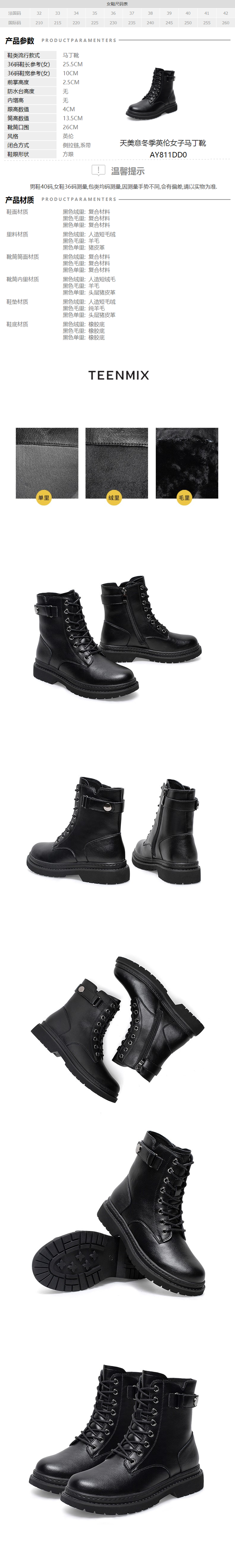 天美意复合材料女皮靴/酷帅八孔马丁靴