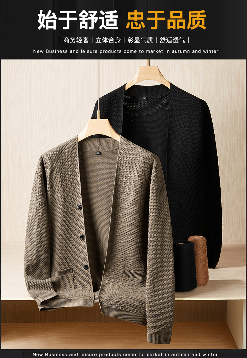 【新款DPF】大依优型大码男装休闲开衫毛衣针织衫夹克外套舒适加肥加大男士上衣